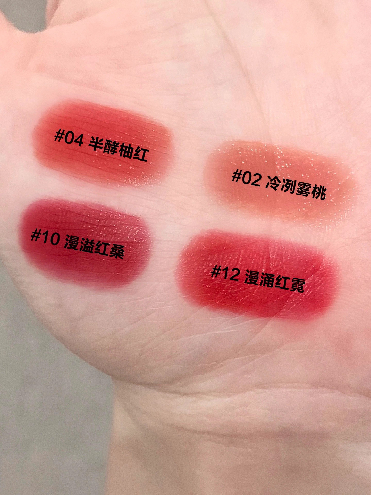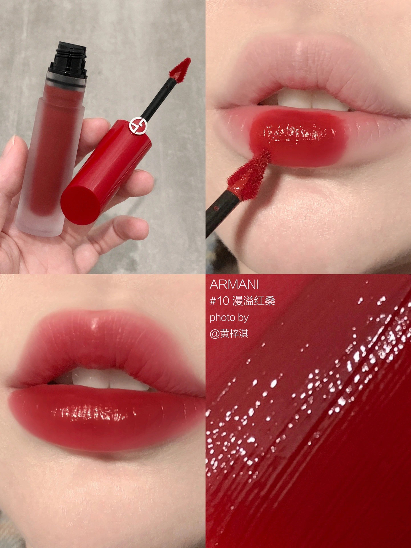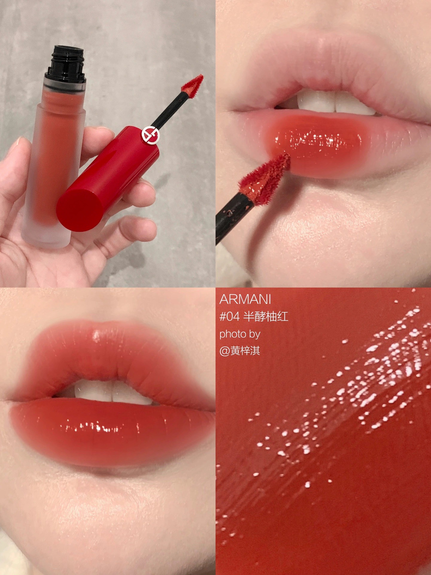 阿玛尼出手了!全新阿玛尼红管水唇釉! 全新轻水质地贼水灵,调色也奶呼呼的,我好爱~ ♥️#04半酵柚红 ,成膜后的红茶色巨清透,又仙又美妥妥的千金色,显白不荧光,春日仙贵感很浓! ♥️#02冷冽雾桃 ,白桃乌龙奶茶色,低饱和度巨嗲,显甜显乖,日常超好涂! ♥️#10漫溢红桑 ,清透牛血红茶色,调色大方又时髦,浓郁高级很有美艳感! ♥️#12漫涌红霓 ,橘调洋红色,明媚洋气巨显白,财阀千金感拿捏的很...