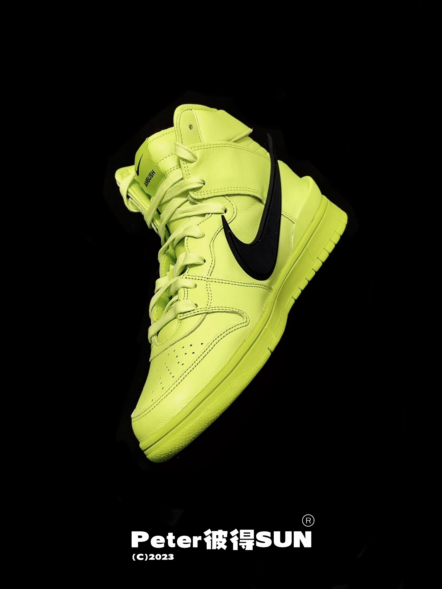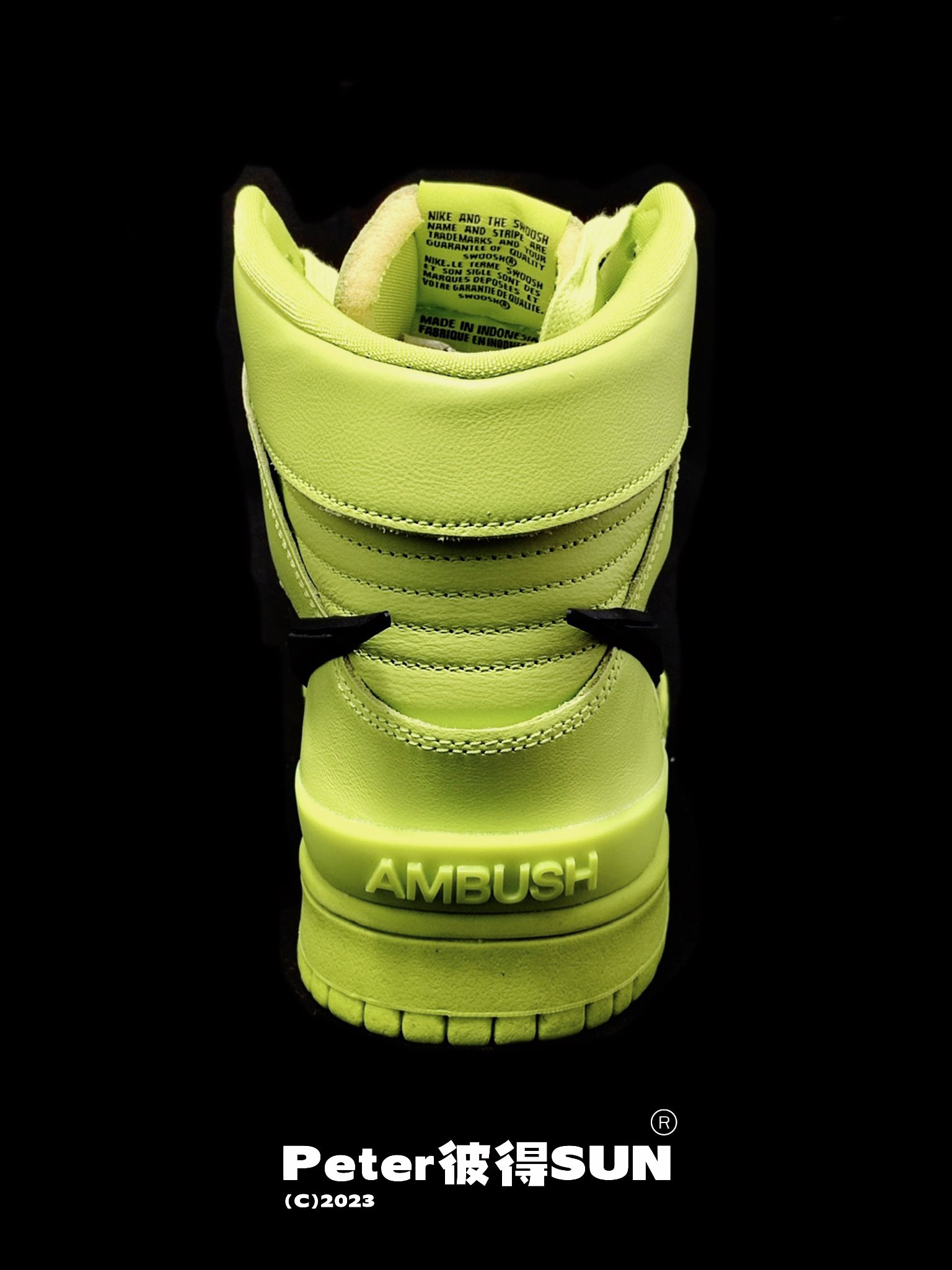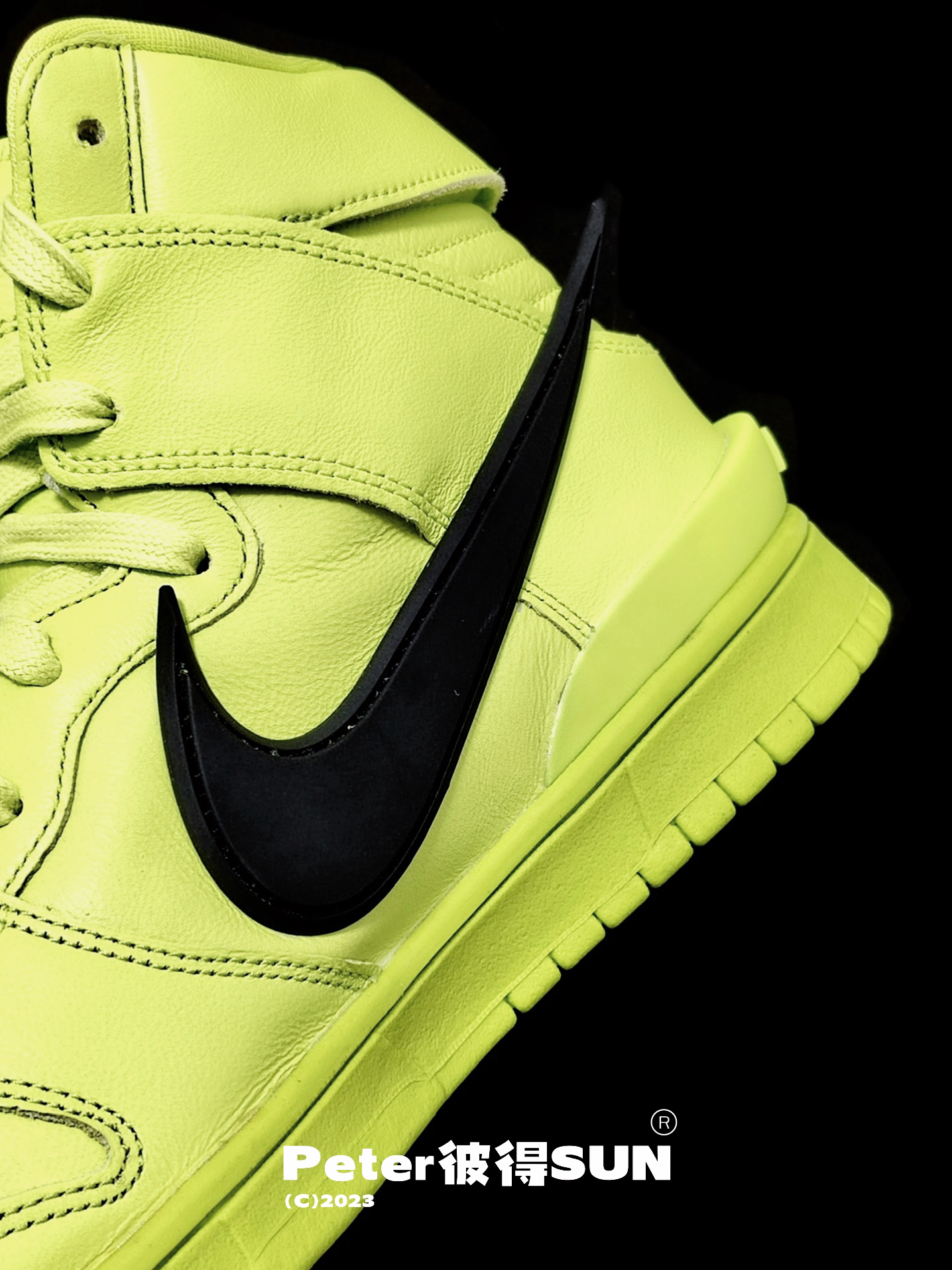 Ambush x Nike Dunk 柠檬黄太春天 作为联名版 在整鞋的皮质用料也属用心的使用了皱纹皮 最喜欢那个超脱的Swoosh 既亮眼又不是很夸张 鞋后跟立体雕刻Ambush 字样 彰显联名身份