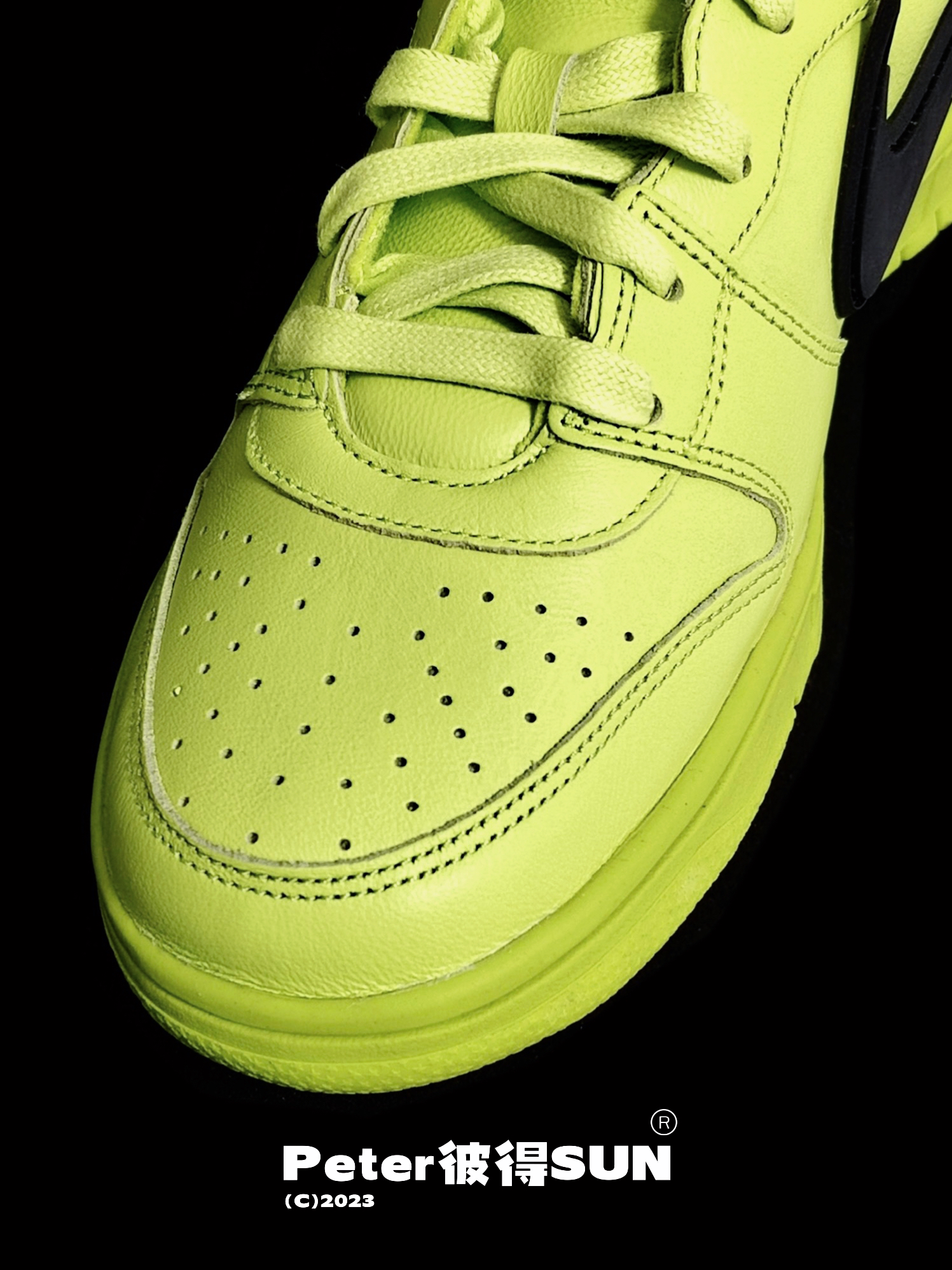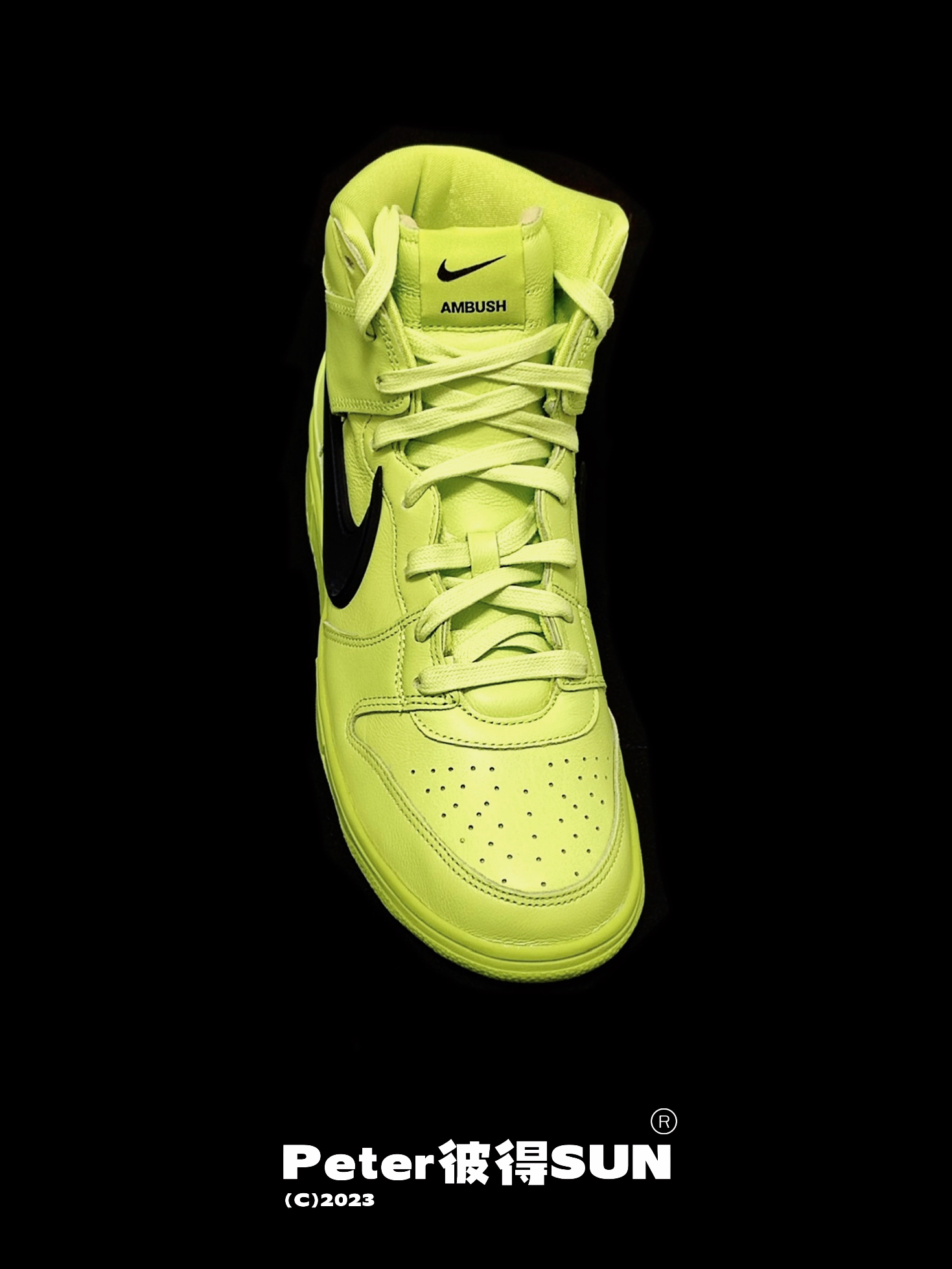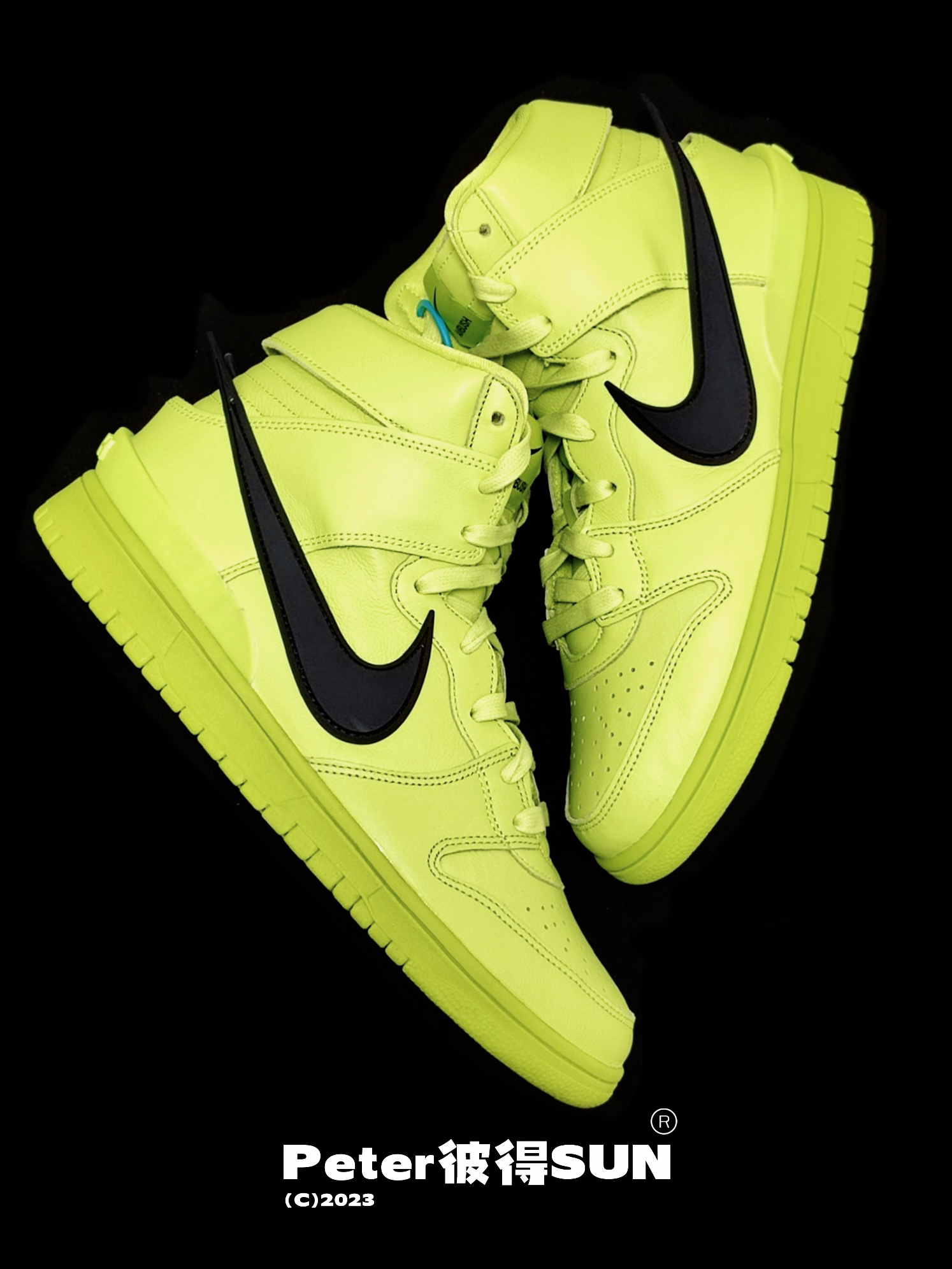 Ambush x Nike Dunk 柠檬黄太春天 作为联名版 在整鞋的皮质用料也属用心的使用了皱纹皮 最喜欢那个超脱的Swoosh 既亮眼又不是很夸张 鞋后跟立体雕刻Ambush 字样 彰显联名身份
