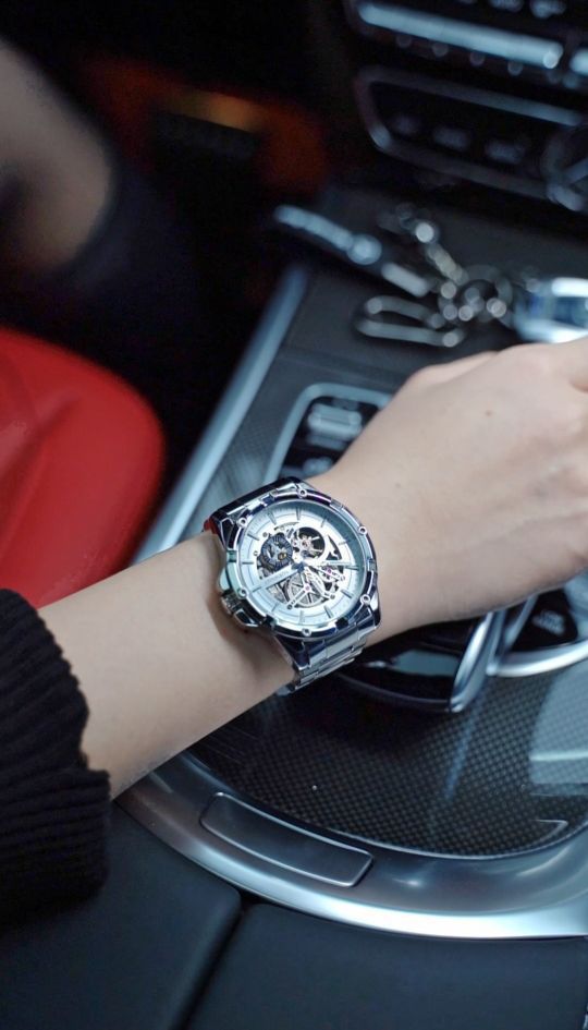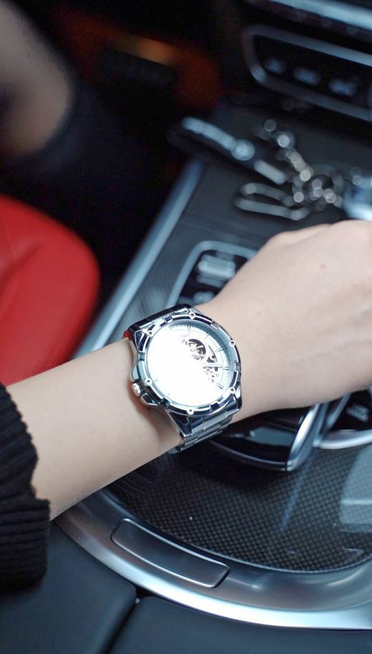 划重点!帅到飞起 今天的搭配不错 镂空机械腕表 轮毂表盘锻造