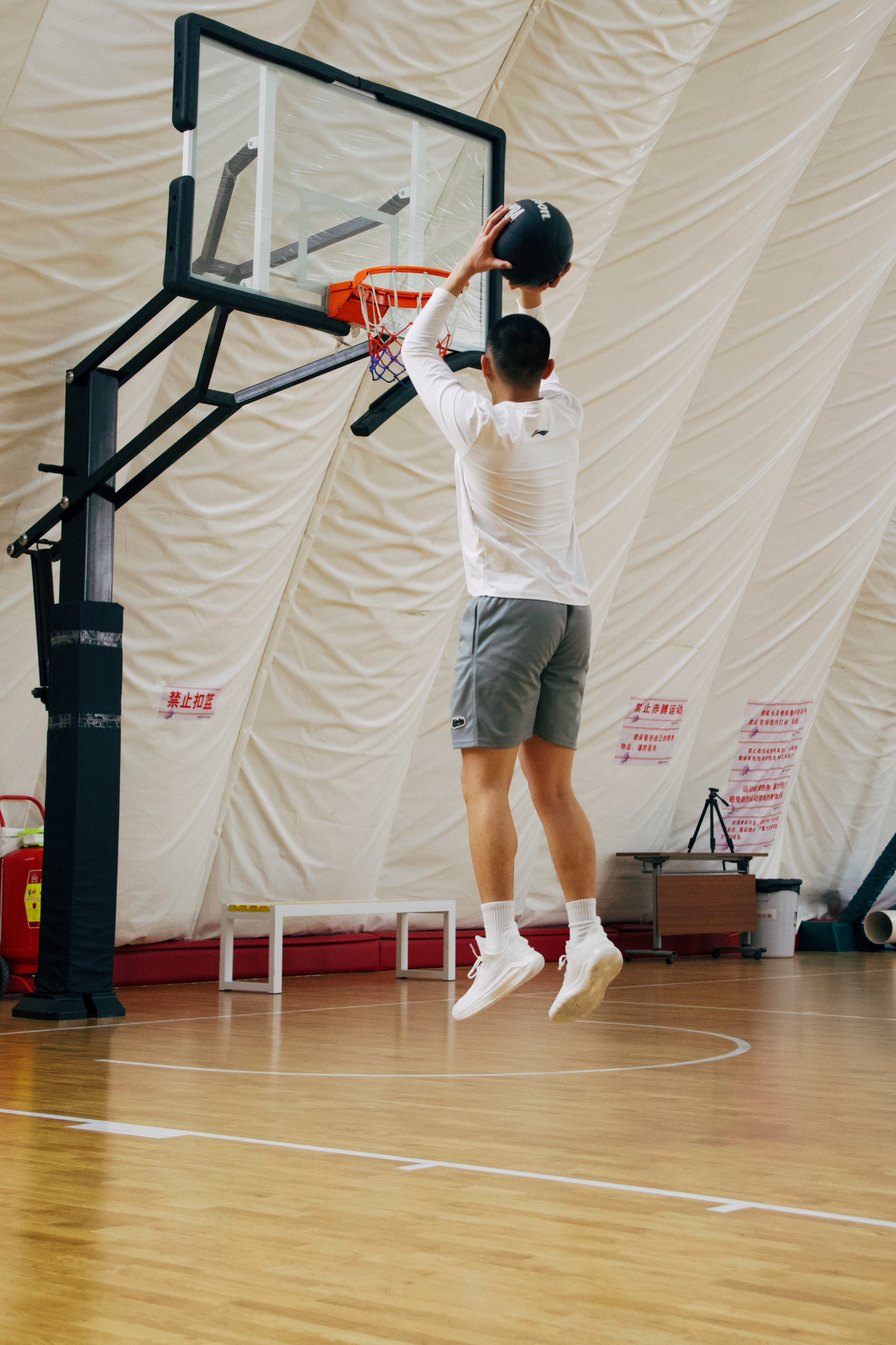 缓震方面:全掌的 䨻 缓震科技加全掌的超临界鞋垫,带来了出色的回弹效果,前掌启动时不仅有助力还有弹的感受!后掌落地时我 160 斤有富裕,不震脑仁和前掌相比起来后掌更厚也更弹,缓震极限较高,大体重钢炮类型的后卫可以放心穿!