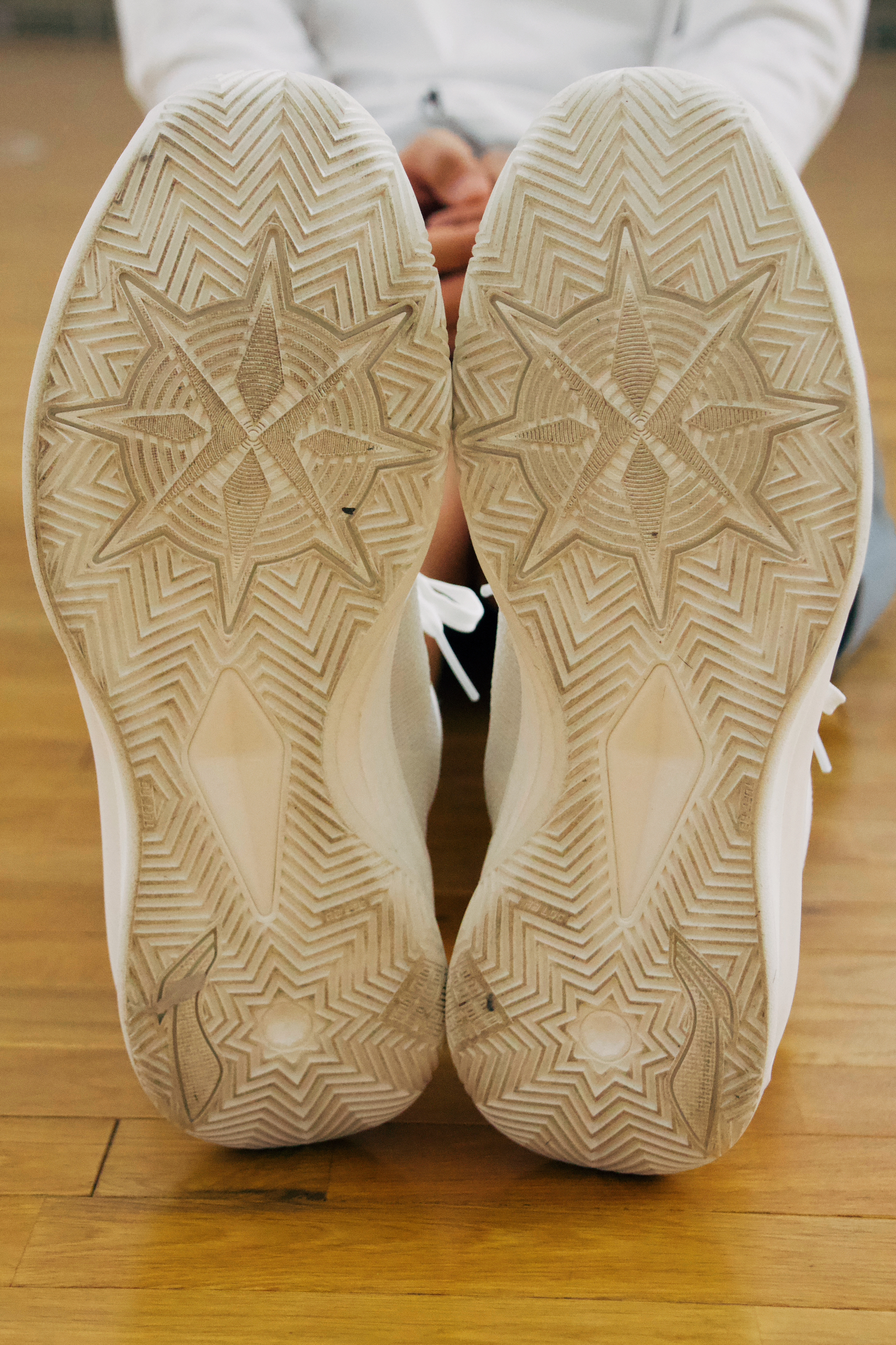 配色方面我选择了这双珍珠白,通体干净纯白的颜色更适合春夏季节的球场。配置方面:全身采用了 䨻 丝科技,透气性和强度自不必多说。中底外侧贯穿式的 TPU 延续了下来。中底采用了全掌的 䨻 缓震科技,其厚度肉眼可见。大底还是一样的纹路一样的 Tuff RB 高耐磨橡胶大底。