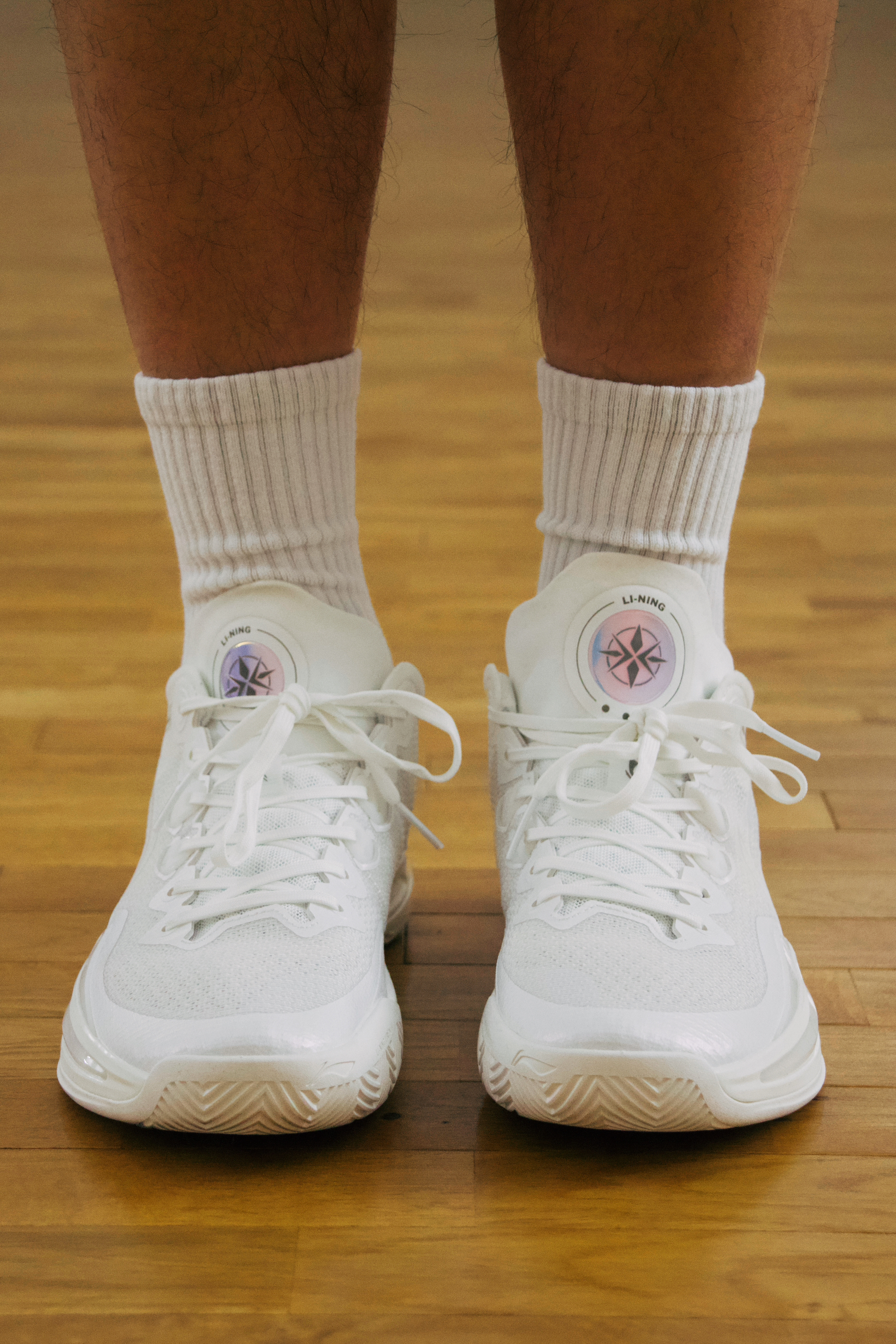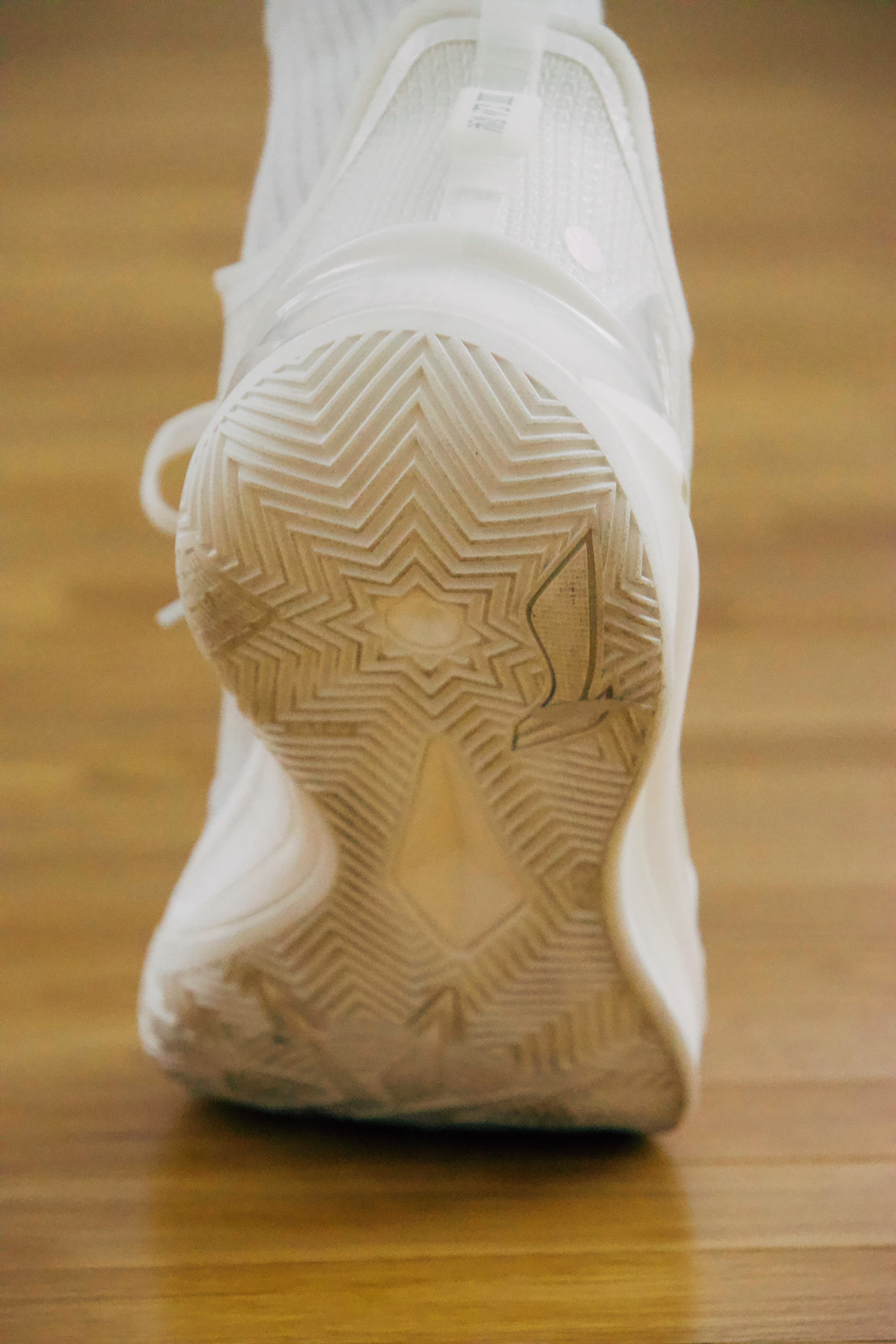 直接说结果吧!这双 李宁利刃3v2 缓震突出,包裹过关,防侧翻优秀,透气性完美,抓地和耐磨出色,重点是极致的鞋脚一体性!要说缺点嘛那就是纯白的鞋身特别爱脏。