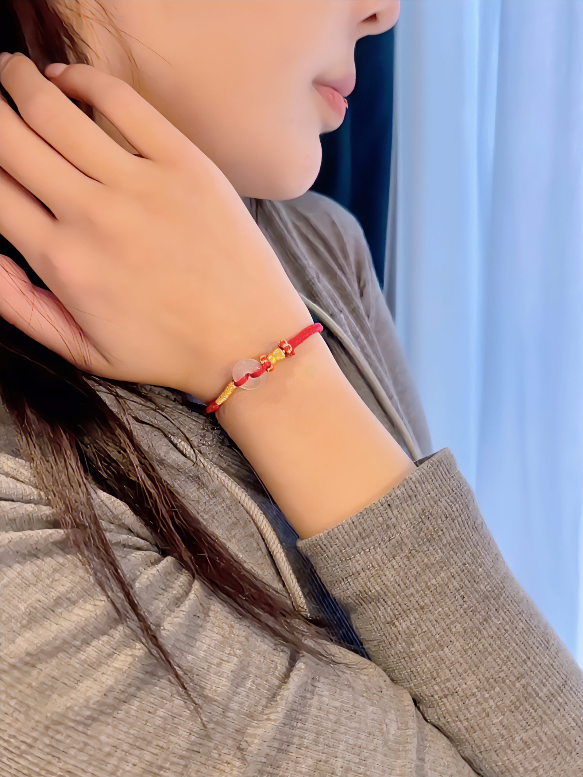 👋:LOVE&LOVE珠宝 兔子平安扣手链 足金999黄金兔子 ⭐️来分享一下今日份的穿搭吧,穿了一件灰色的紧身包臀连衣裙,下身搭配了丝袜和球鞋,非常活力的女生穿搭,配饰带了小红绳,简约大方,女孩子就都应该拥有一条~ ⭐️寓意着平安幸福的平安扣手链,今年还是兔年哦,超级可爱的小兔子,精致又细节,情人节快到了,还不给你的女孩安排一条吗?象征幸福平安的手链,颜值高又百搭~
