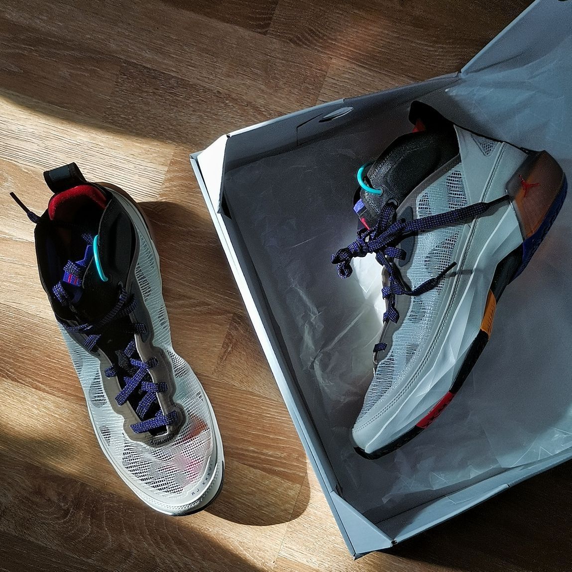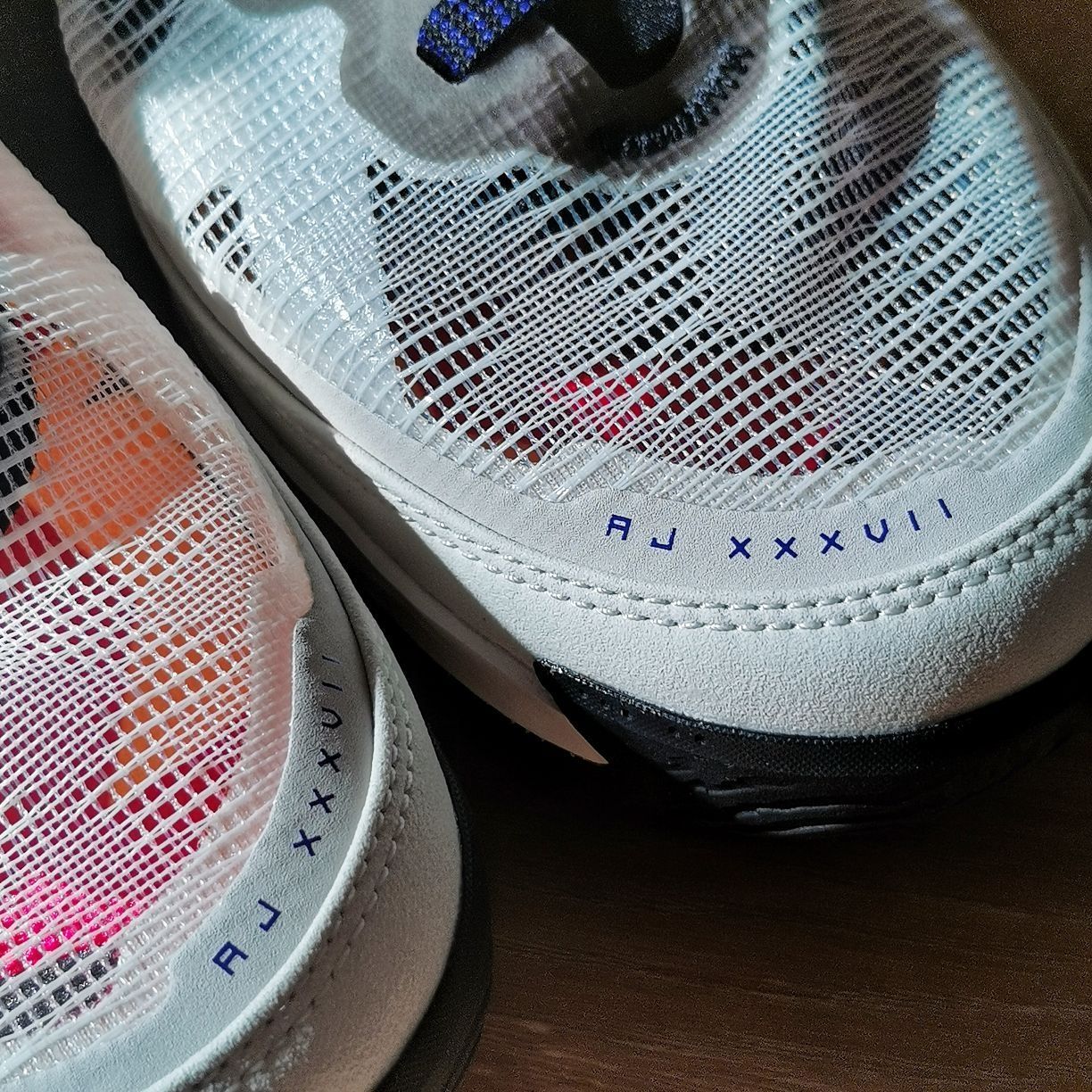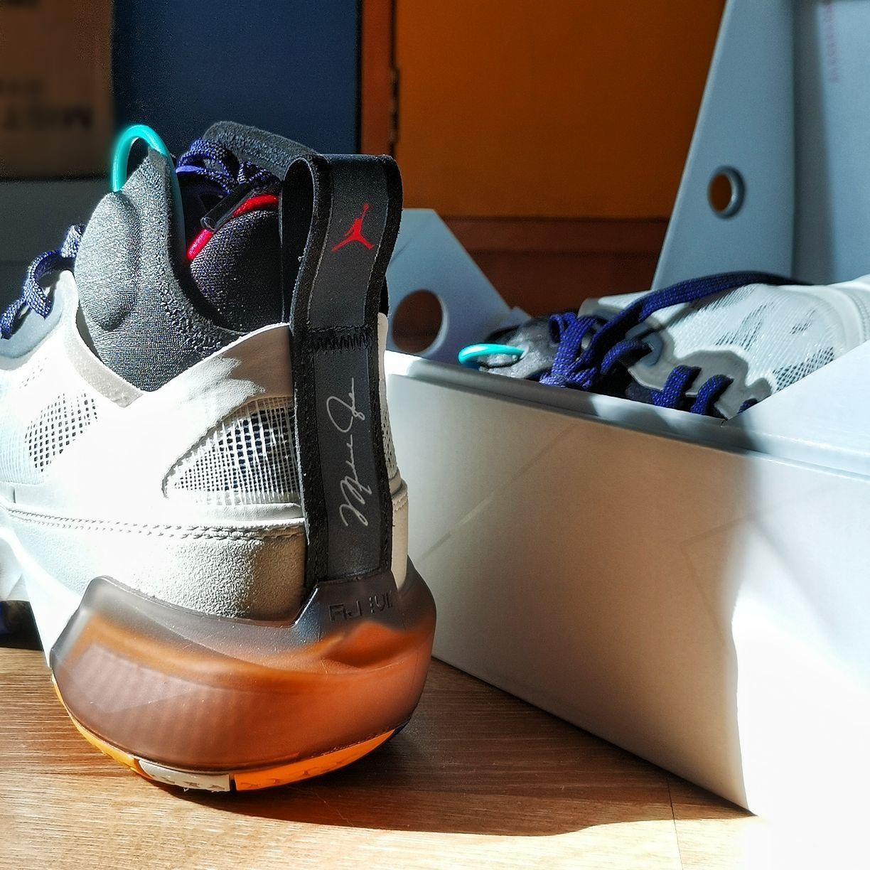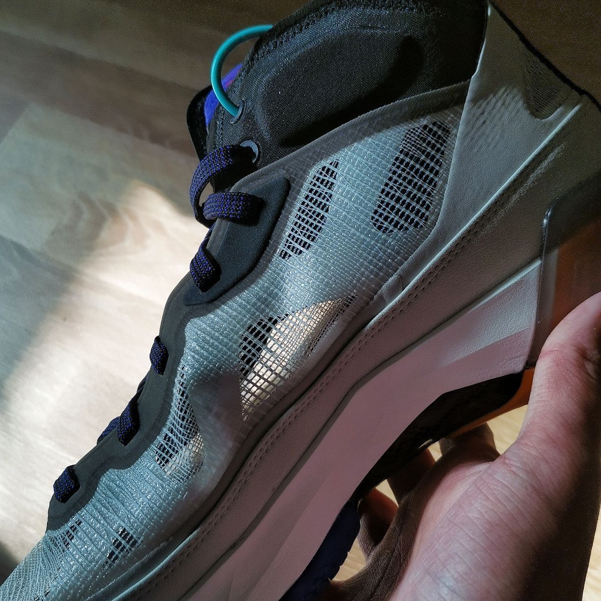 自aj37上市以来,就是一双备受争议的鞋款。首先,这个颜值是见仁见智的,我认为中底侧边如钻石切割般的线条,让中底显得简约而不简单。极具速度感。上脚后整体感受良好,前掌气垫感受明显,足弓支持的异形碳板十分到位,后跟软弹,整体过渡感良好,有一种威少鞋的感觉。外底采用xdr大底,直观来看,耐磨和防滑应该都不错。重心稍稍有点高,加上它外底偏收窄,防侧翻的话不算优秀。❗️最后聊一下保受争议的鞋面❗️这个鞋面...