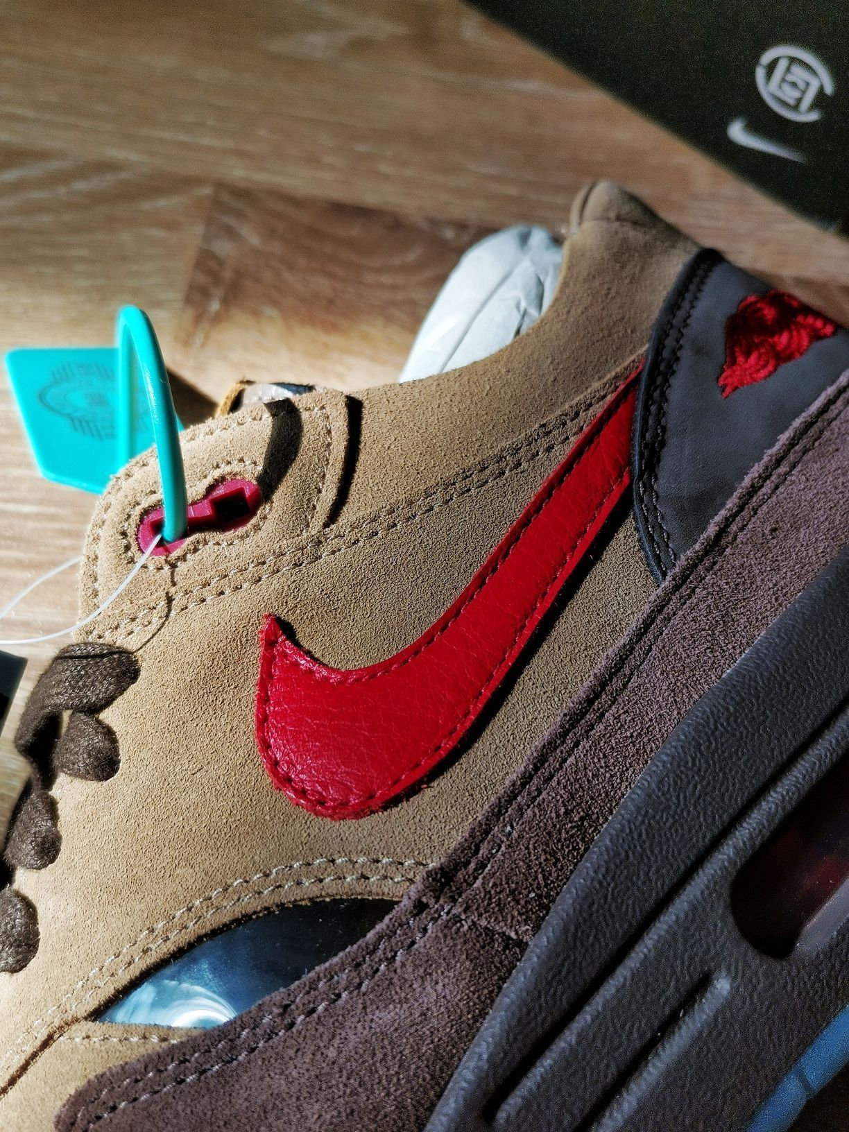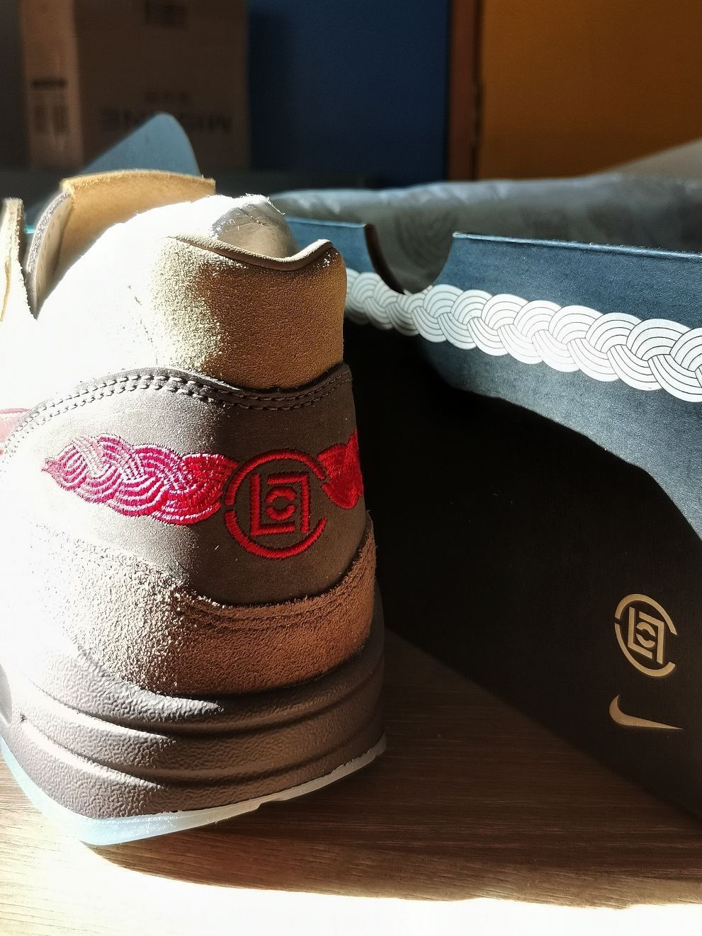 2006年clot与耐克联手,打造了“死亡之吻”主题的air Max1。这双「茶」配色也在当年的企划中,只是停留在sample阶段没有量产。时隔十五年,这双当年的产物终于来了❗️作为冠希哥的粉丝,也是将它收入囊中。颜值方面争议很大,但是以五开的奥莱价可以购入一双很有故事的联名产品,还是很感谢clot的贡献。希望EDC带来更多的好产品,salute❗️