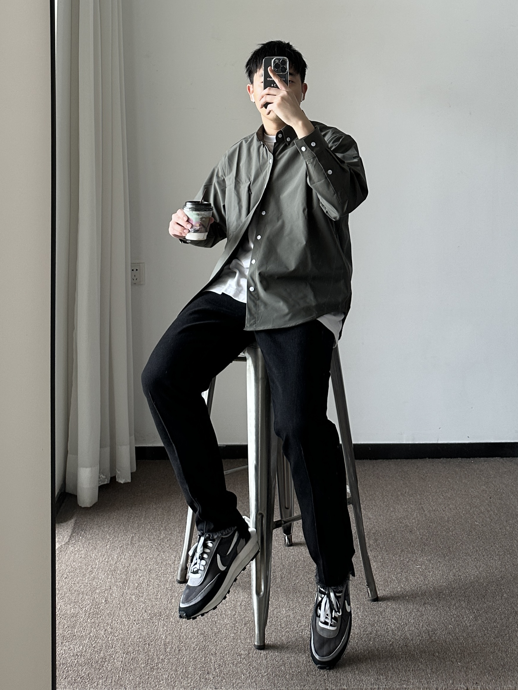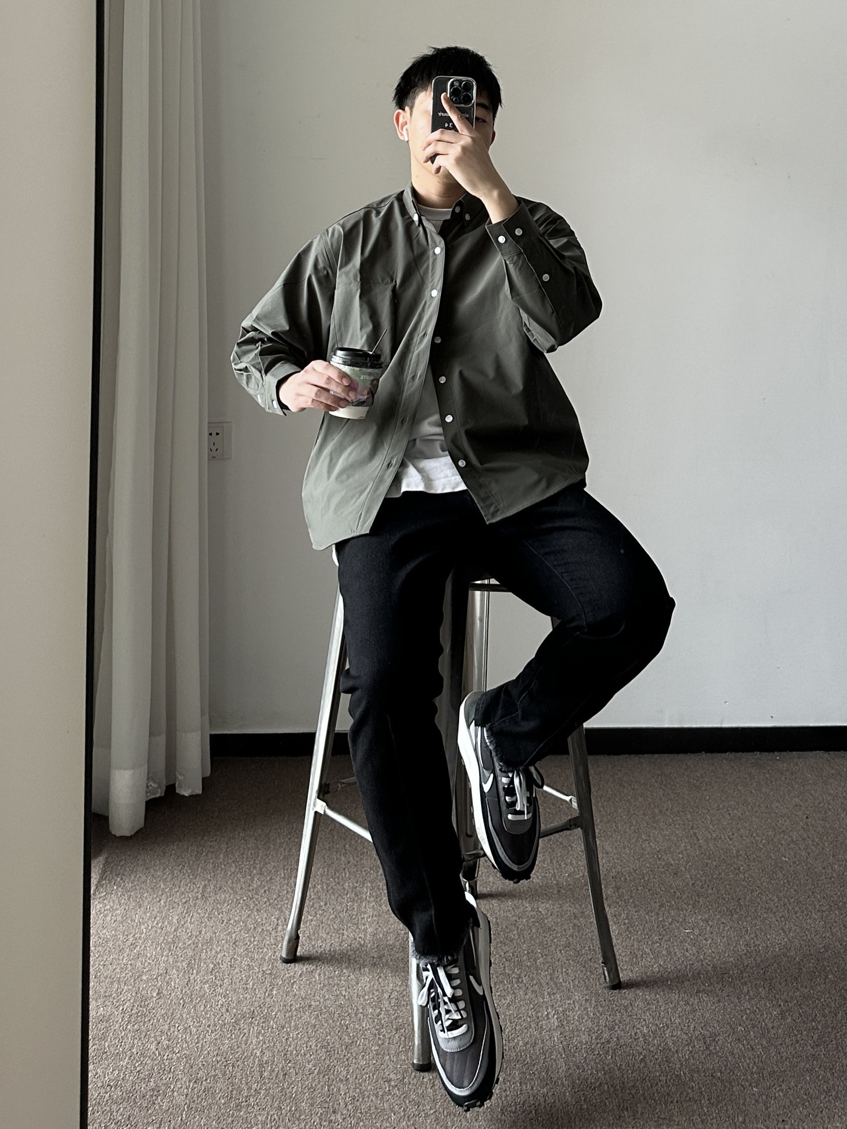 素人也能好看系列~174cm / 65kg 🧥- 低饱和绿色教练夹克,春季做外套,秋冬做内搭。 👖- 修脚直筒长裤 👟- 通勤慢跑鞋