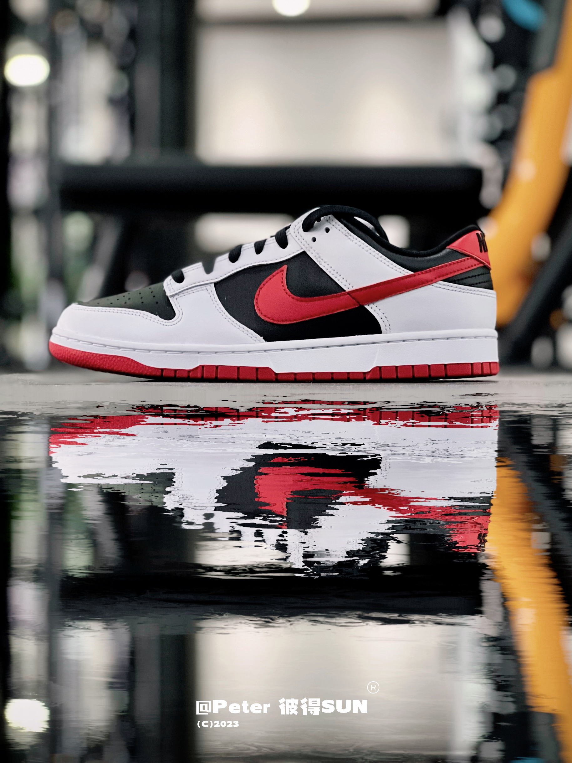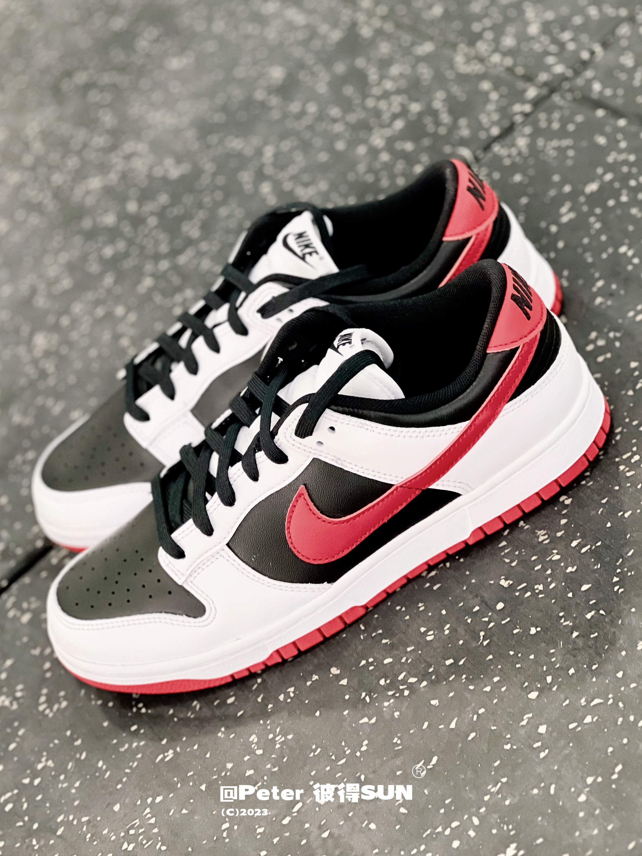 这双Dunk 白黑红汲取了经典的芝加哥配色 全皮质的鞋面看起来很OG 反转撞色更亮眼了 搭配衣服很好看