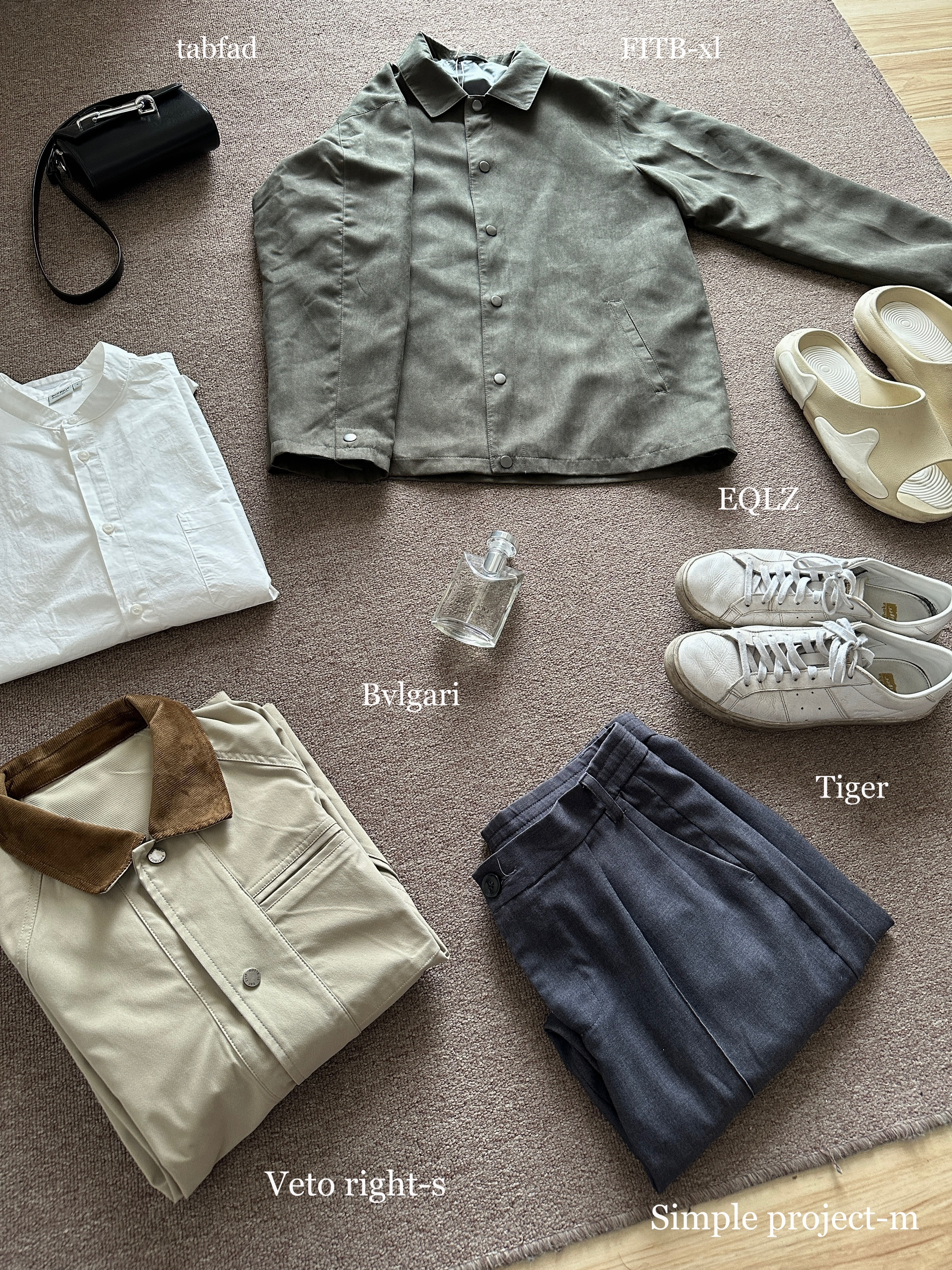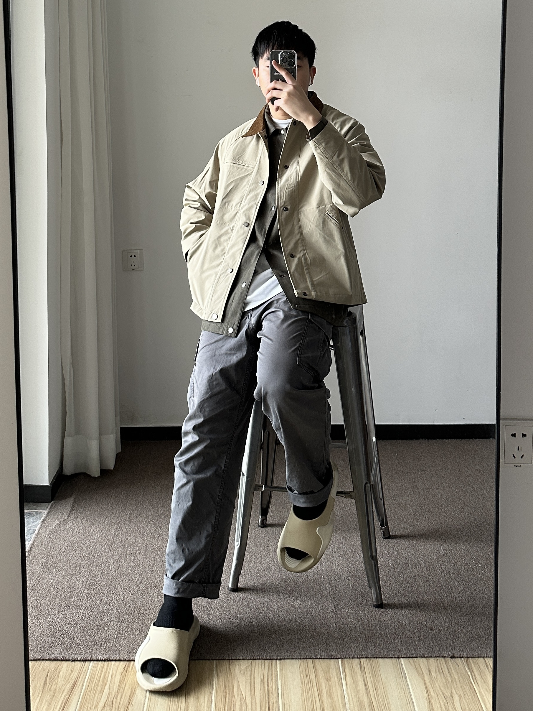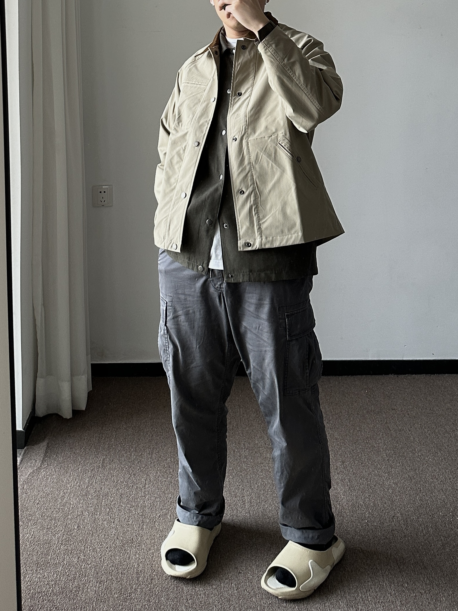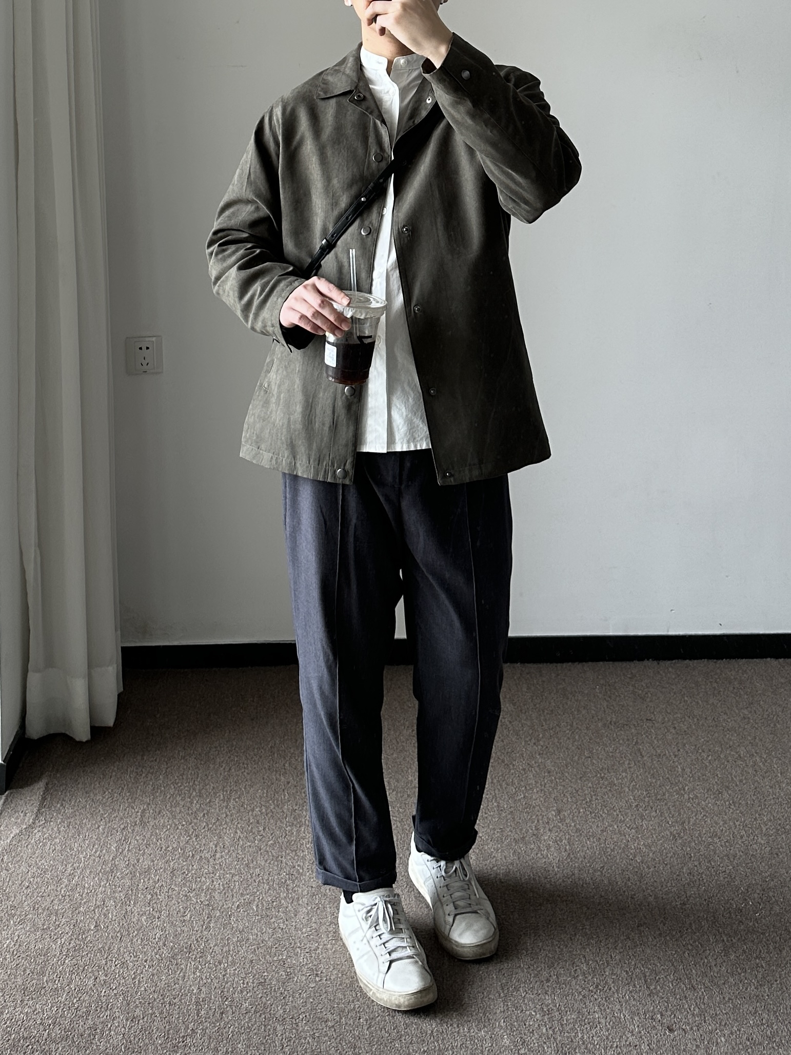 素人也能好看系列~174cm / 65kg 🧥- 麂皮绒的面料好洗不易皱,能单穿也能内搭一套。外搭底特律夹克,clean fit调调就来了。 👖- 西裤和工装裤都要。 👟- 经典的沙色和自制脏脏鞋。