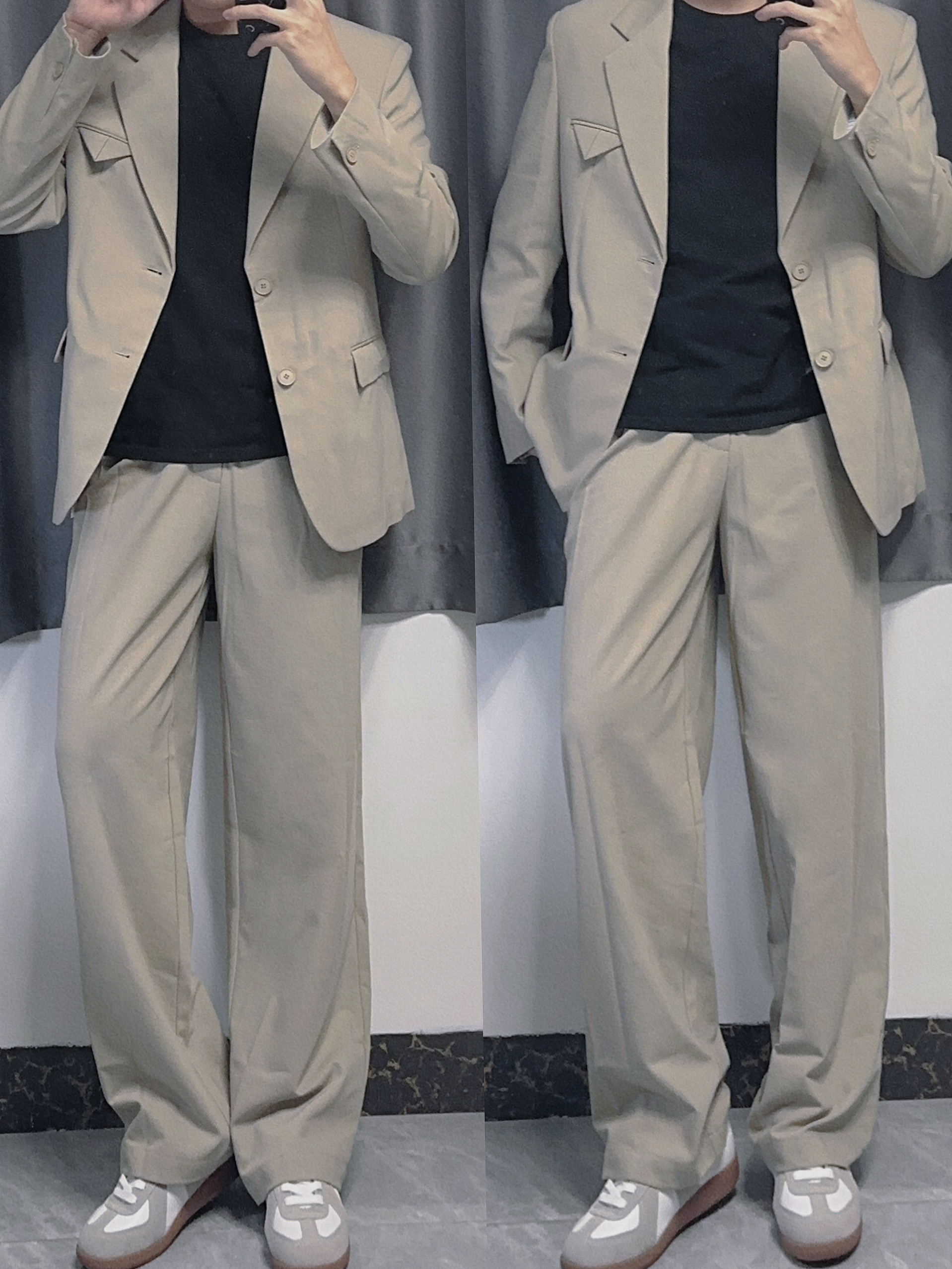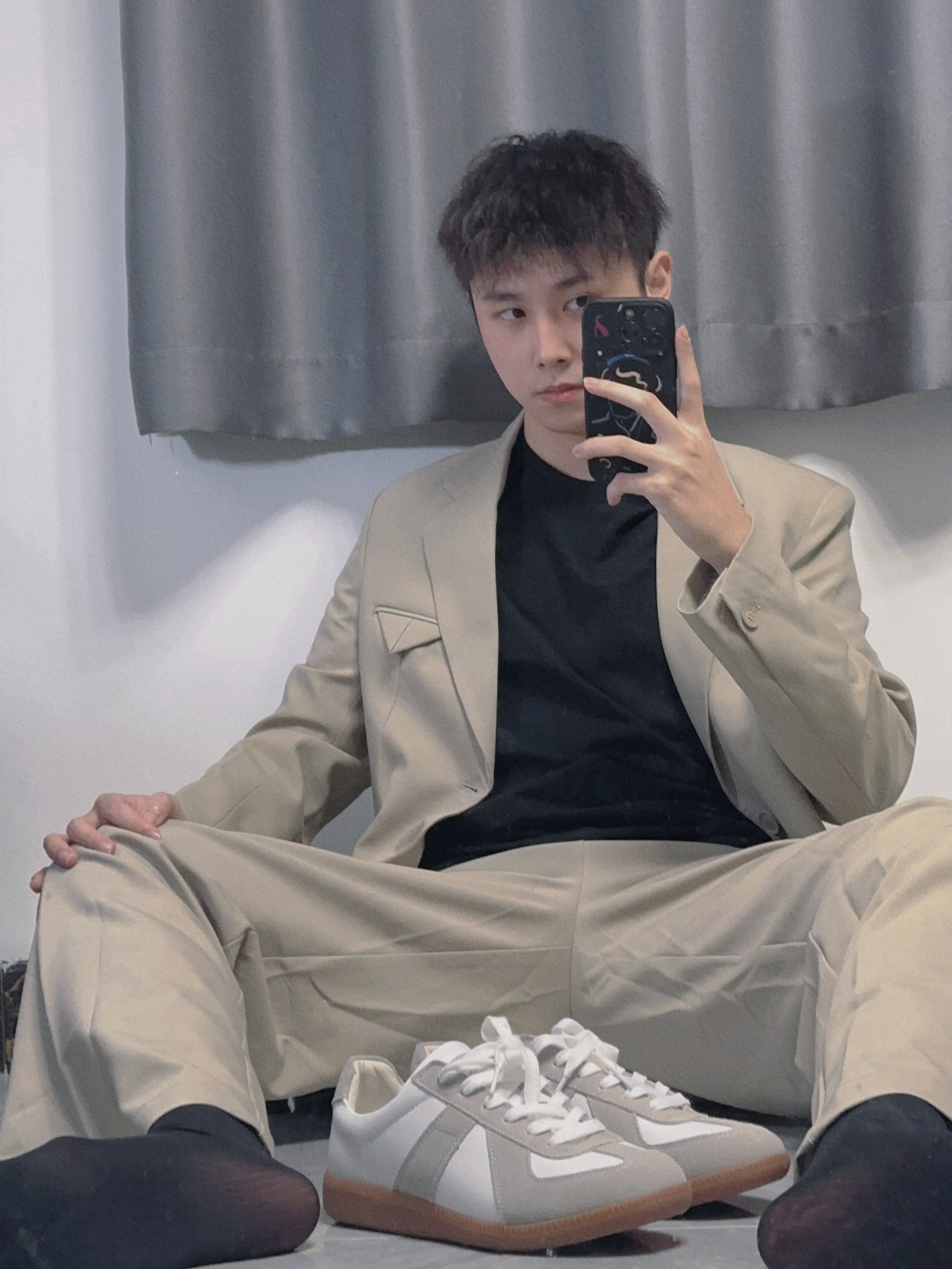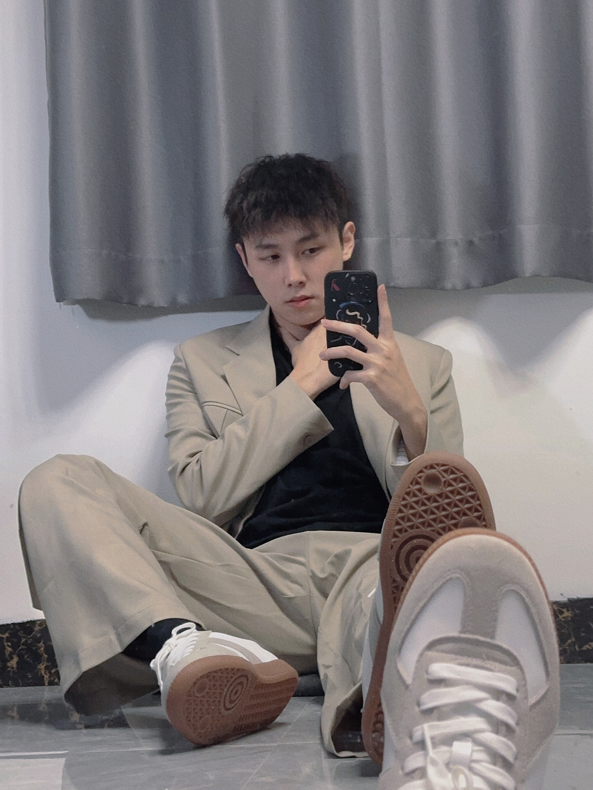 ✔️西装:Datzko ✔️袜子:佐印 ✔️鞋子:马登 —— 🫡这套西装真的性价比很高了,上身还高级,版型正,而且杏色会显得人很干净还显白!我这种小个子也可以撑得起来🥳 🫡轻西装需要搭下德训鞋,有条件的可以搭下小皮鞋哈。