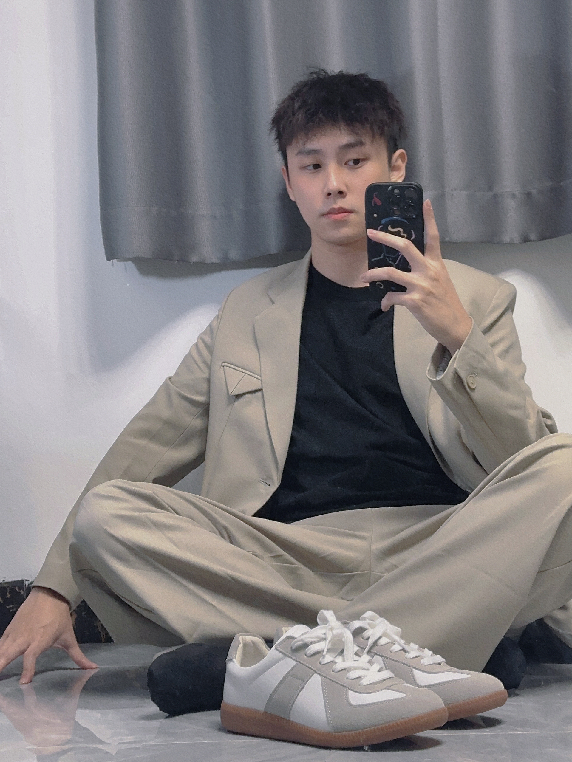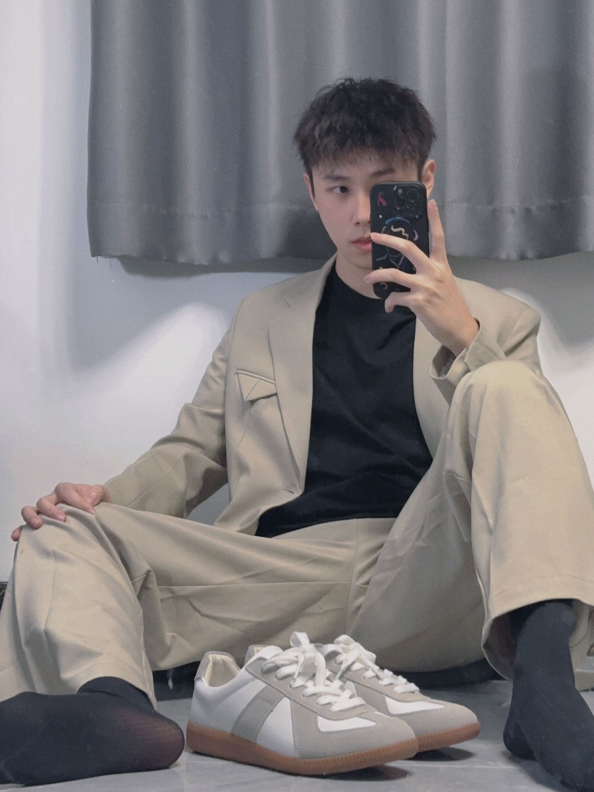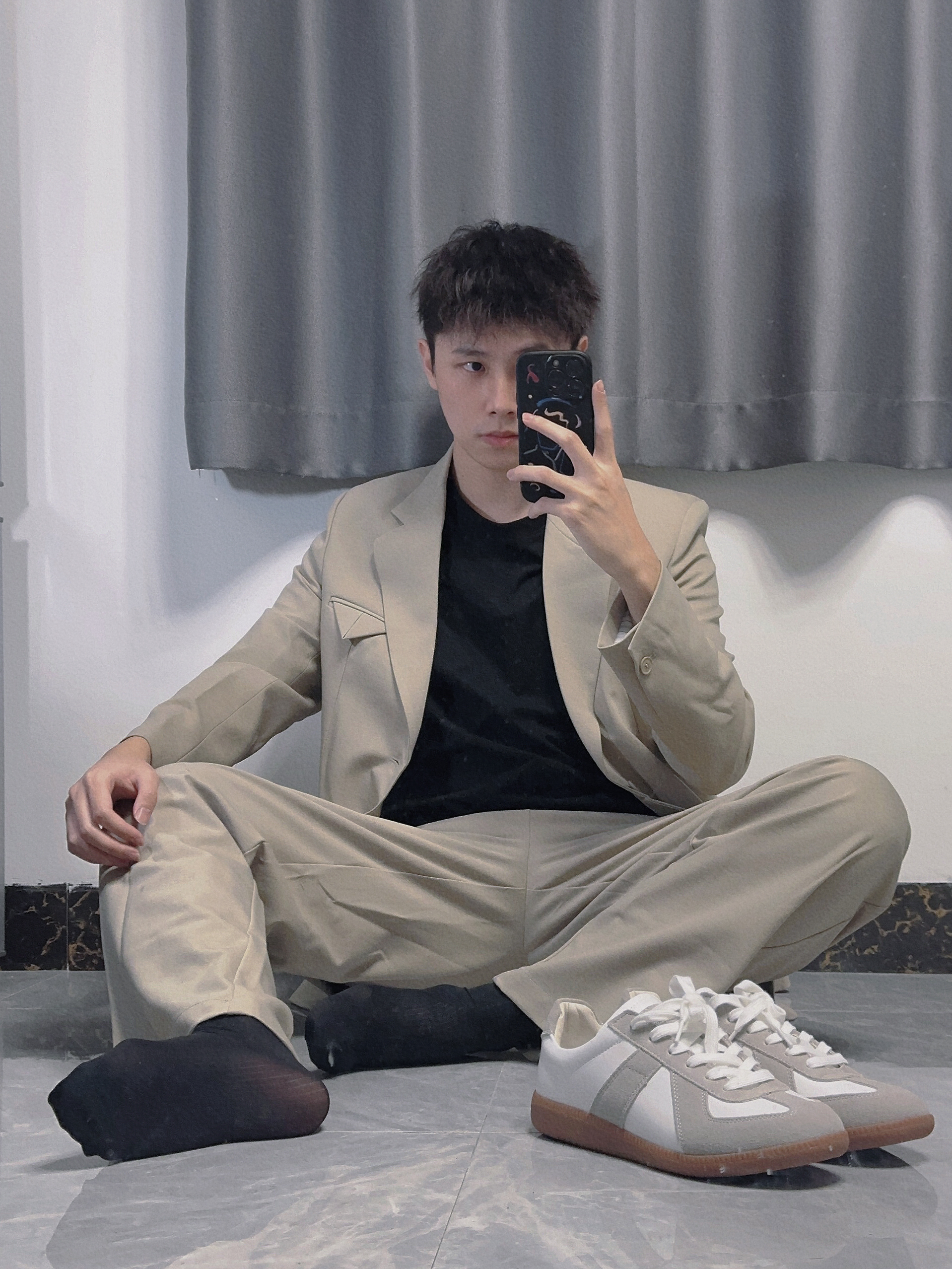 ✔️西装:Datzko ✔️袜子:佐印 ✔️鞋子:马登 —— 🫡这套西装真的性价比很高了,上身还高级,版型正,而且杏色会显得人很干净还显白!我这种小个子也可以撑得起来🥳 🫡轻西装需要搭下德训鞋,有条件的可以搭下小皮鞋哈。