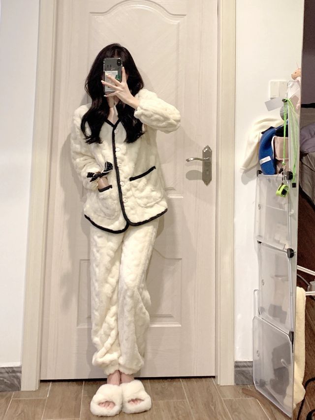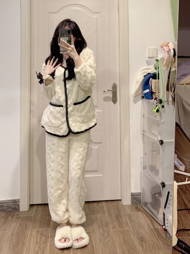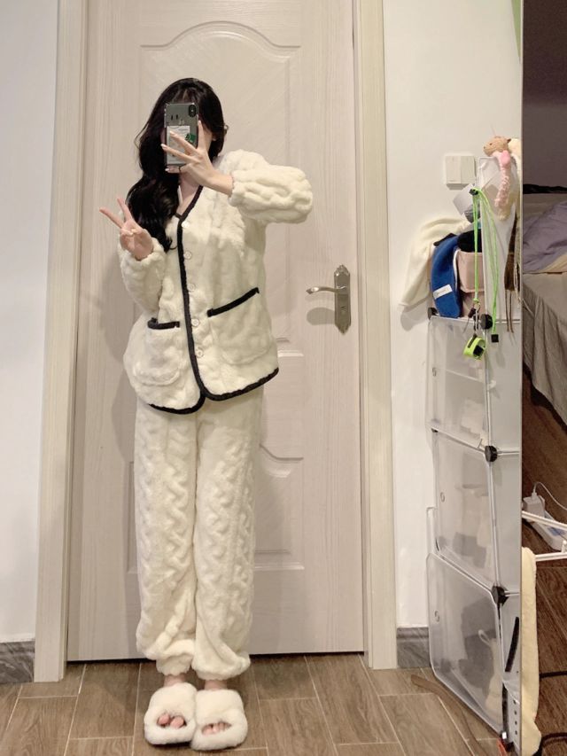 第一套也是睡衣 但又完全看不出来是睡衣 平常穿出去玩都可以 面料很舒服 第二套 🔗织就:睡衣真的太太太好看啦!很厚实! #每日穿搭 #精致睡衣推荐