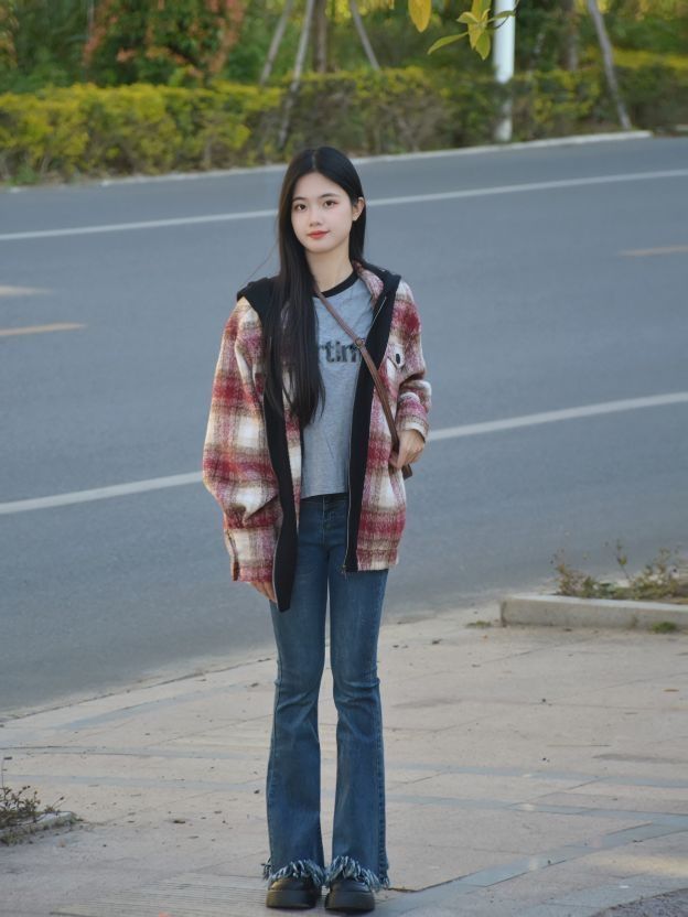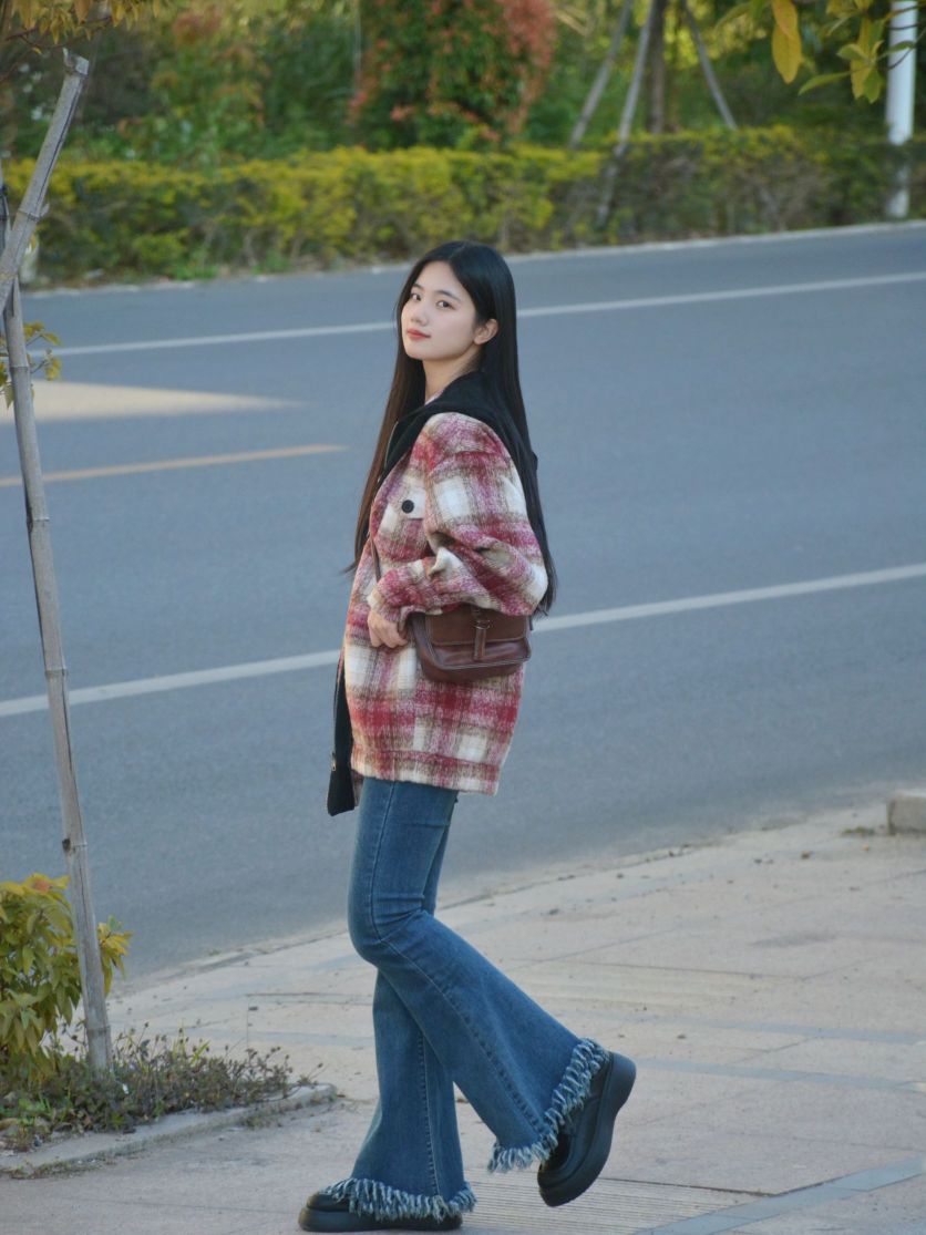 【156/86 红色格子外套+喇叭裤好复古】,由用户 筱筱为硕 分享,来自广东。这是一篇来自识货社区的真实用户分享笔记。