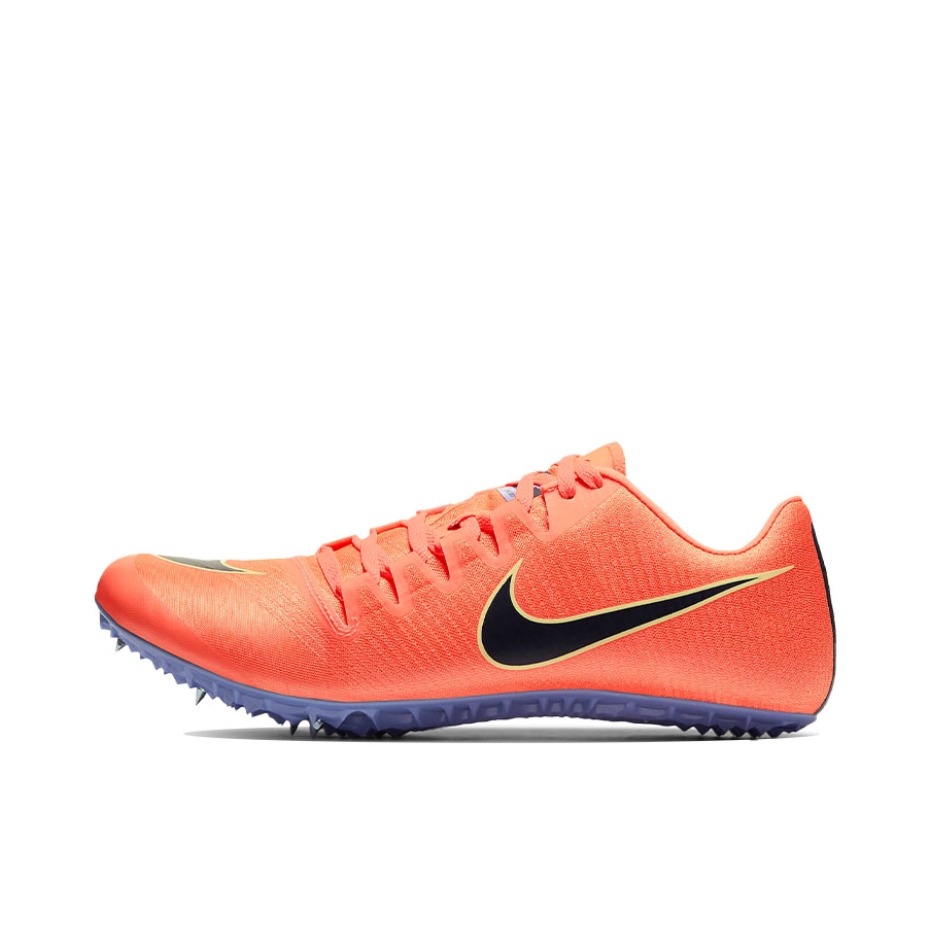 Nike zoom ia fly3橙色 弯道之王 这款是耐克品牌下的一款高端短跑钉鞋 加特林里约奥运会鞋款 苏炳添世锦赛摘银鞋款 鞋面采用针织材质,内里有TPU加固支撑更适合弯道,200米专项的运动员使用 鞋底采用全掌镂空Pebax大底,重量更轻,单只重量只有151克,相比较superfyl的142克仅有9克差距. fly3是目前体育生最为常见的短跑钉鞋款式。