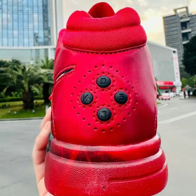 弟弟的篮球鞋好几双,这双红色的就是显眼,买回来也不舍得穿,打比赛也很少穿,难道要珍藏吗! 这双鞋好像杜兰特穿过的,那打比赛可厉害了,现在好多年才重出江湖,后鞋跟有特色的地方,那四颗不知道啥东西,有什么用处吧! 尺码还是很正的,红色喜庆真不错!