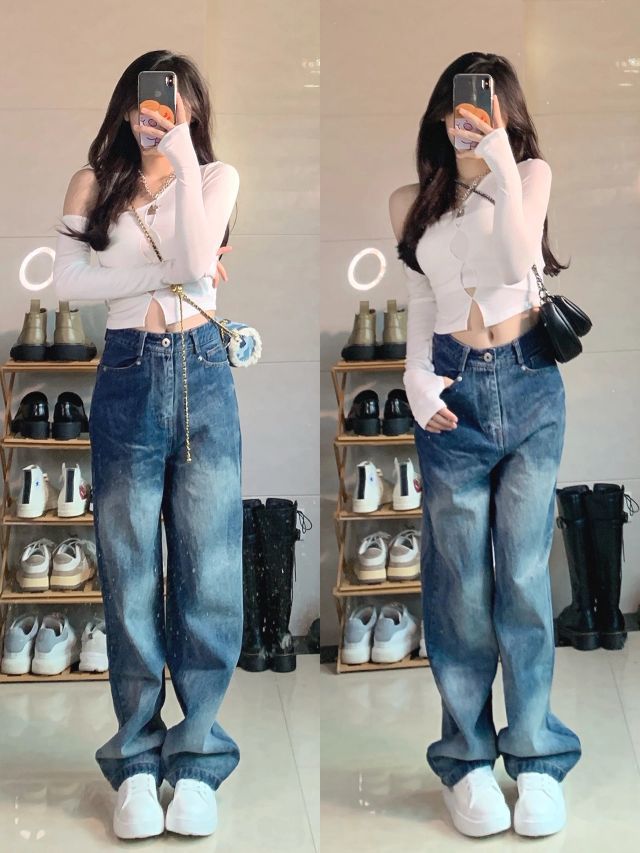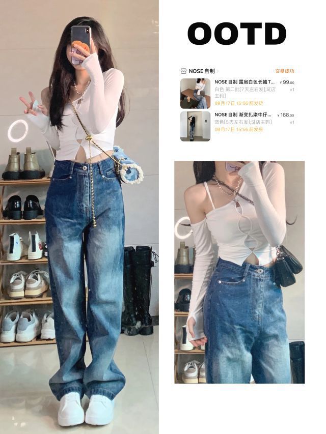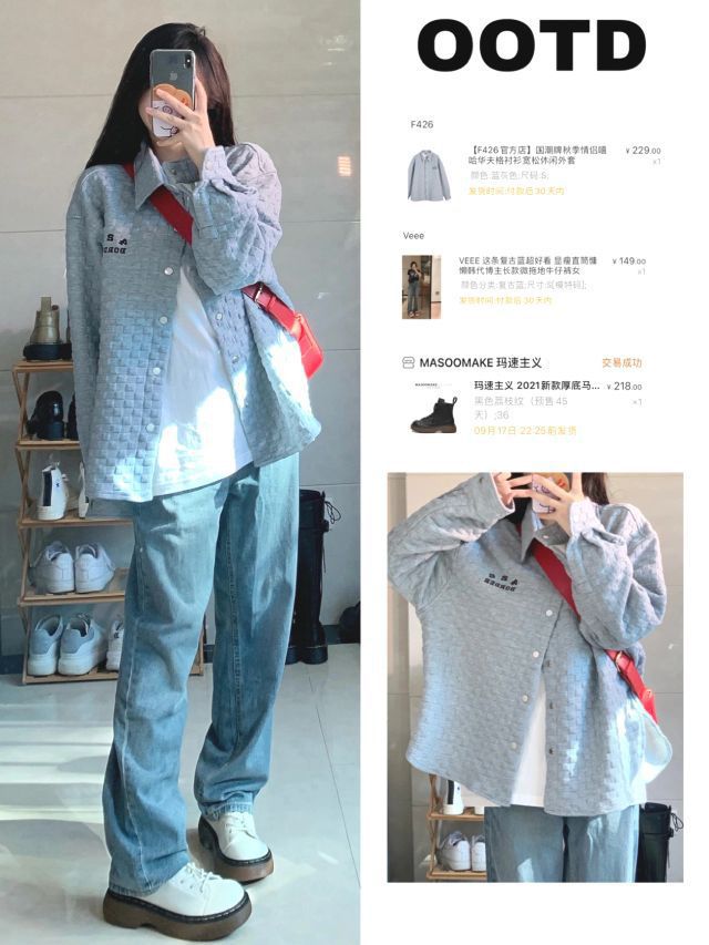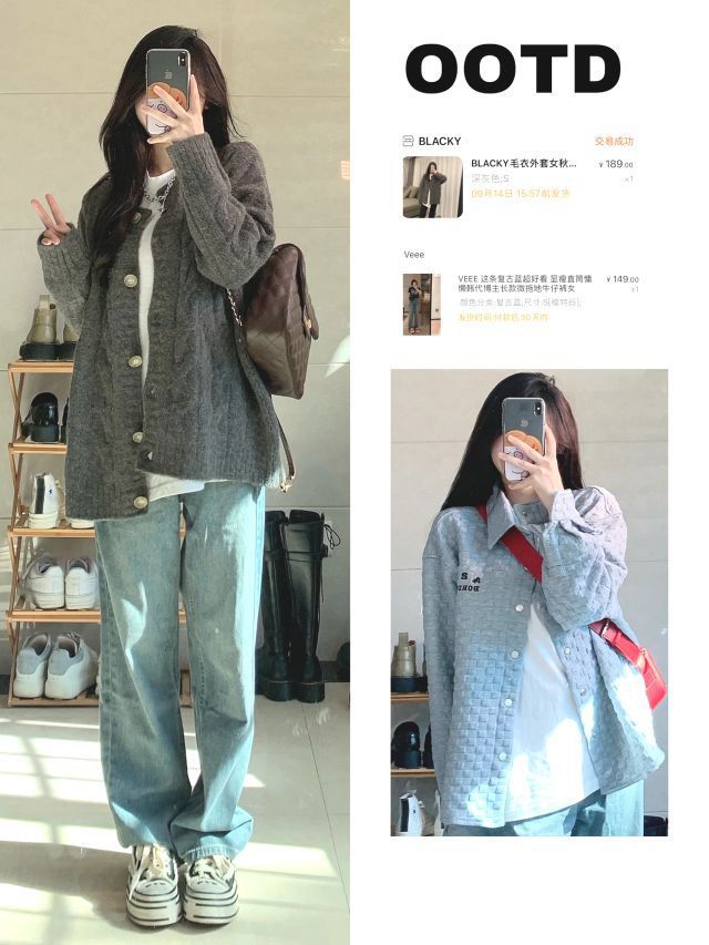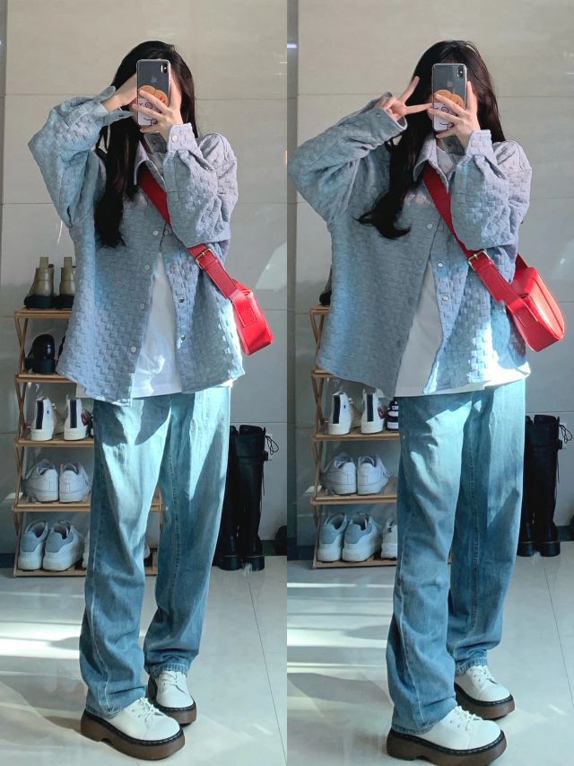 🔖158/85 🧶灰色毛衣外套:black 🧇华夫格衬衫:f426 👖拖地牛仔裤:veee 👔白色针织衫/渐变扎染牛仔裤:nose 🥾马丁靴:masoomake玛速主义 #158小个子穿搭 #每日穿搭 #秋冬穿搭