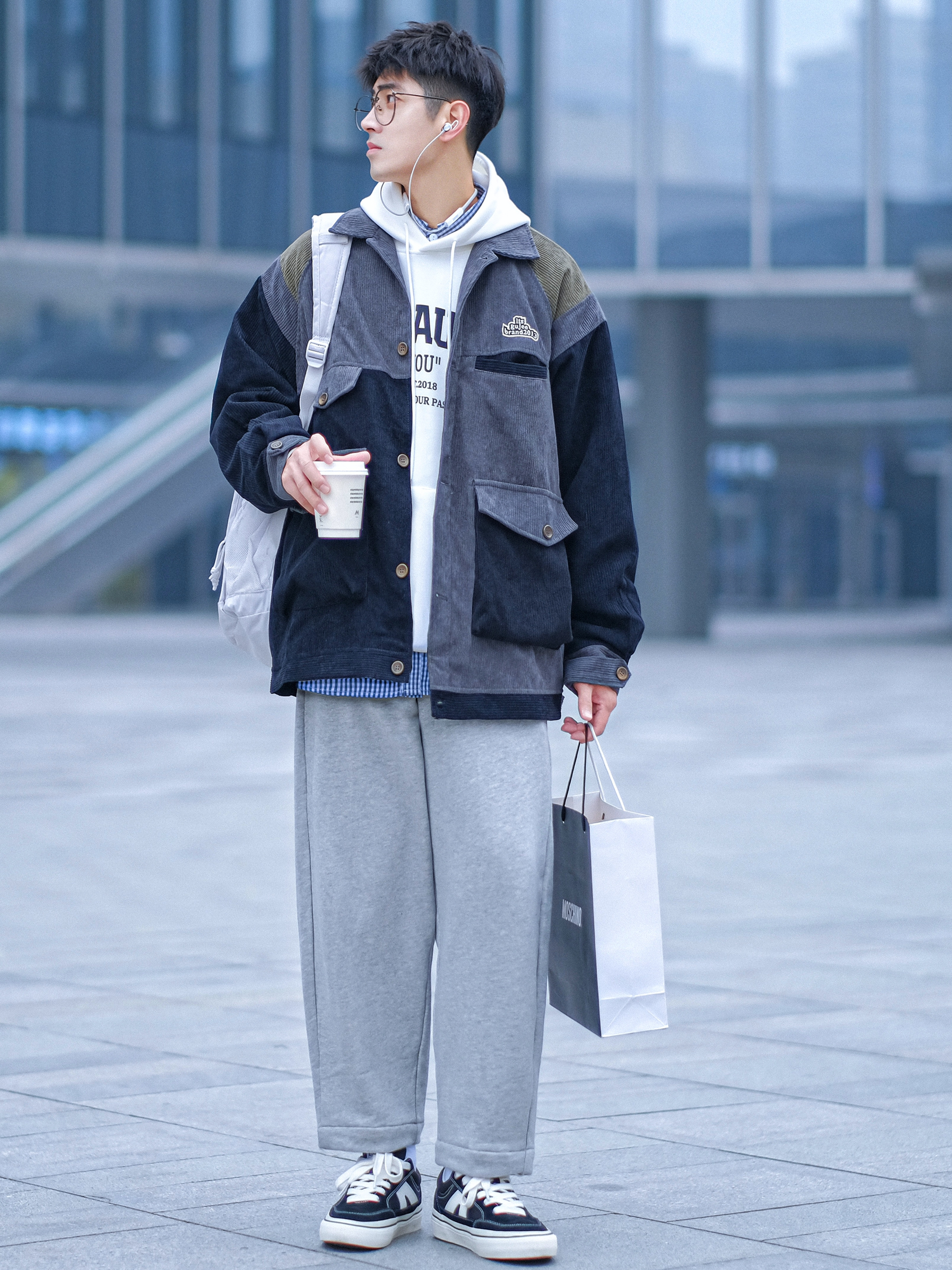 ▪️“ivy boy”来了哦!今天分享一套“非正式学院风”少年感穿搭!休闲单品与运动单品“叠穿混搭”,真的好适合早春穿搭!✔️ — ⚠️本人身高|体重:176CM|63KG(🉑️参考) — ⭐️今日份色彩搭配:黑白灰三色搭配⚫️⚪️🏐…… · 1⃣️·【黑灰】拼接灯芯绒小西装,简约干净的黑灰组合,给人乖乖的男友风质感!✔️ 2⃣️·【白色】连帽卫衣,叠穿的基础款单品,增加搭配层次感!✔️ 3⃣️·...