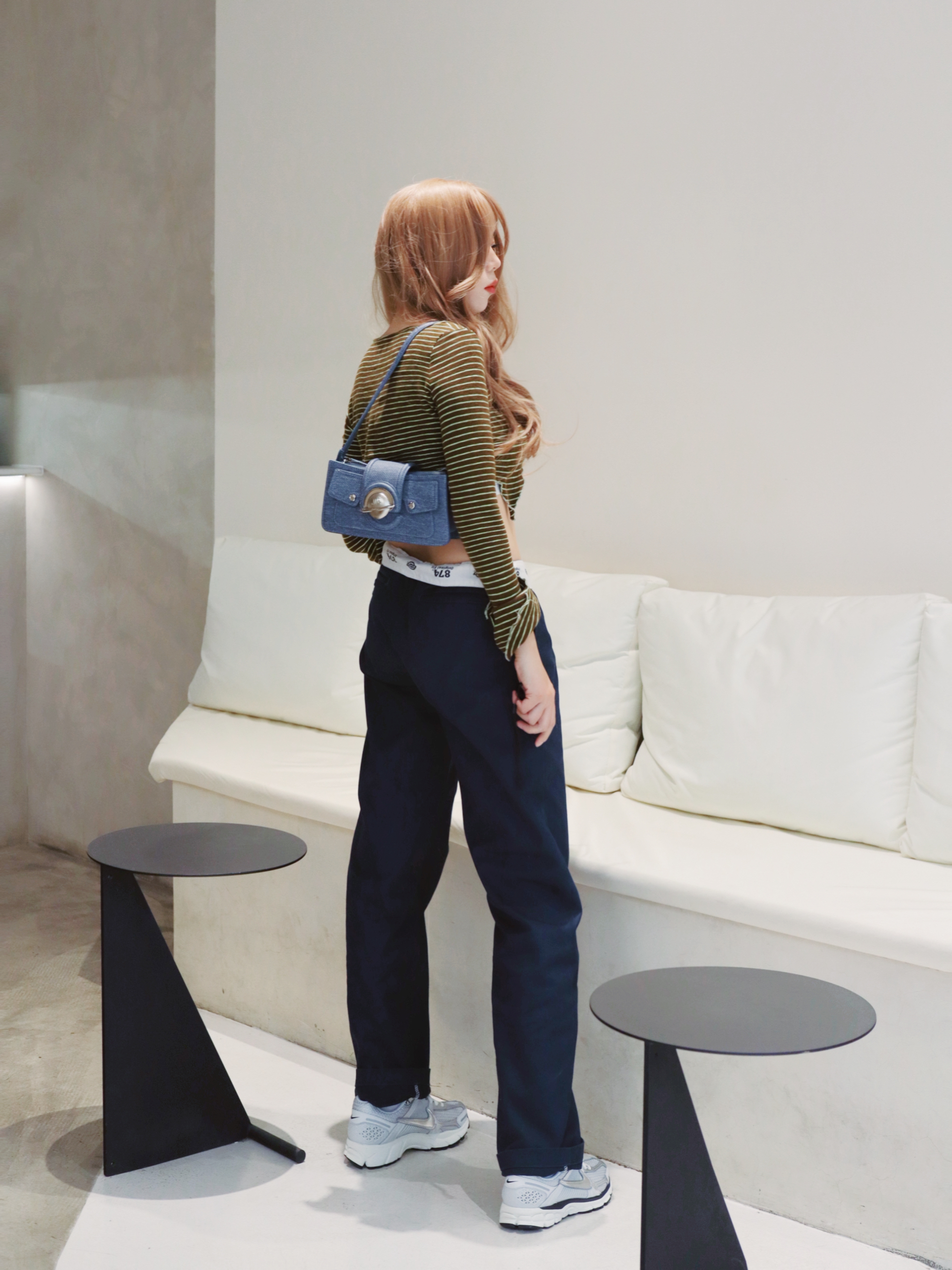 情人节就要来了‼️ 浪漫的节日仪式感很重要呀 💐 甜甜的节日 穿的酷酷的才合理呀🌷 短款上衣➕874工作长裤 鞋子选择复古运动鞋 搭配甜酷JELLYTOYBOY包包 设计感很强 而且真的不容易撞包呀😍