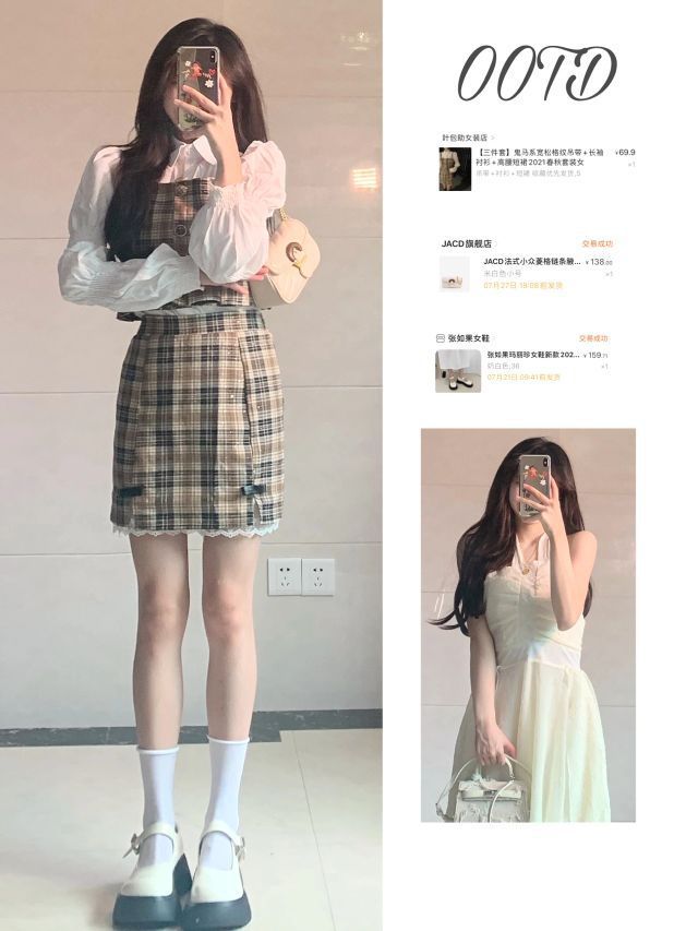 🌷158 86 Look1, *格纹套装 英伦小甜心的风格~~泡泡袖很显气质 春秋款 这个季节可以穿喔~~~~~质量可以 👡白色玛丽珍鞋:张如果女鞋 👝菱格链条包:JACD 项链:EEKE Look3 *学院风背带连衣裙 是夏季款 有送腰带会很显腰细喔 质量ok 分享结束了 宝子们~~ #小个子女生穿搭 #七夕攻略·穿搭指南 #约会穿搭 #每日穿搭 #甜心约会必备 #小个子女...