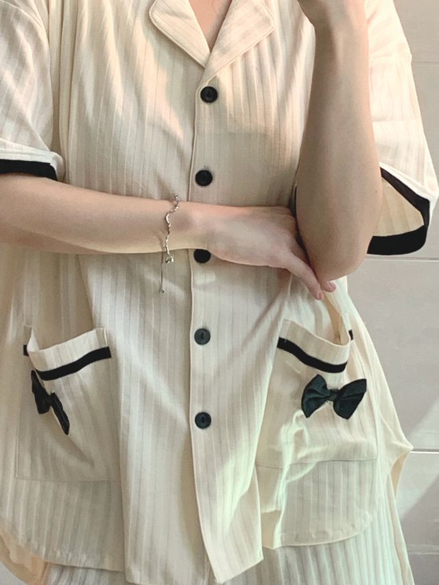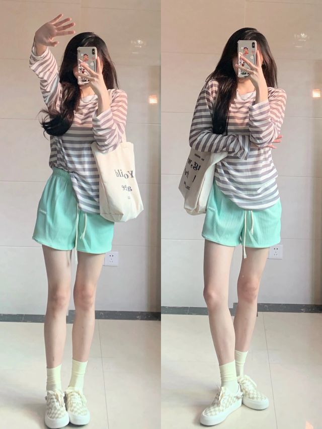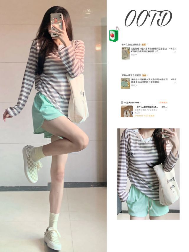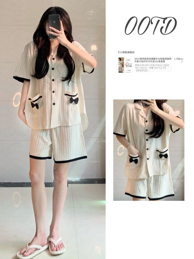 📚158 85 LOOK1️⃣ 条纹一套:翠眸女装(pdd) *上衣是微透设计不明显 加上清新绿的短裤,很适合现在的季节然后也可以当防晒穿,质量很OK 棋盘格帆布鞋:一拾方isfame *奶糖杏色很好看,后面的是珍珠跟链条的设计精致 LOOK2️⃣ 甜美奶黄色睡衣:小情歌旗舰店 *真的超好看超可爱面料很舒服柔软 好甜~ LOOK3️⃣ 藏青色娃娃领衬衫裙:sleepybunny瞌睡兔...