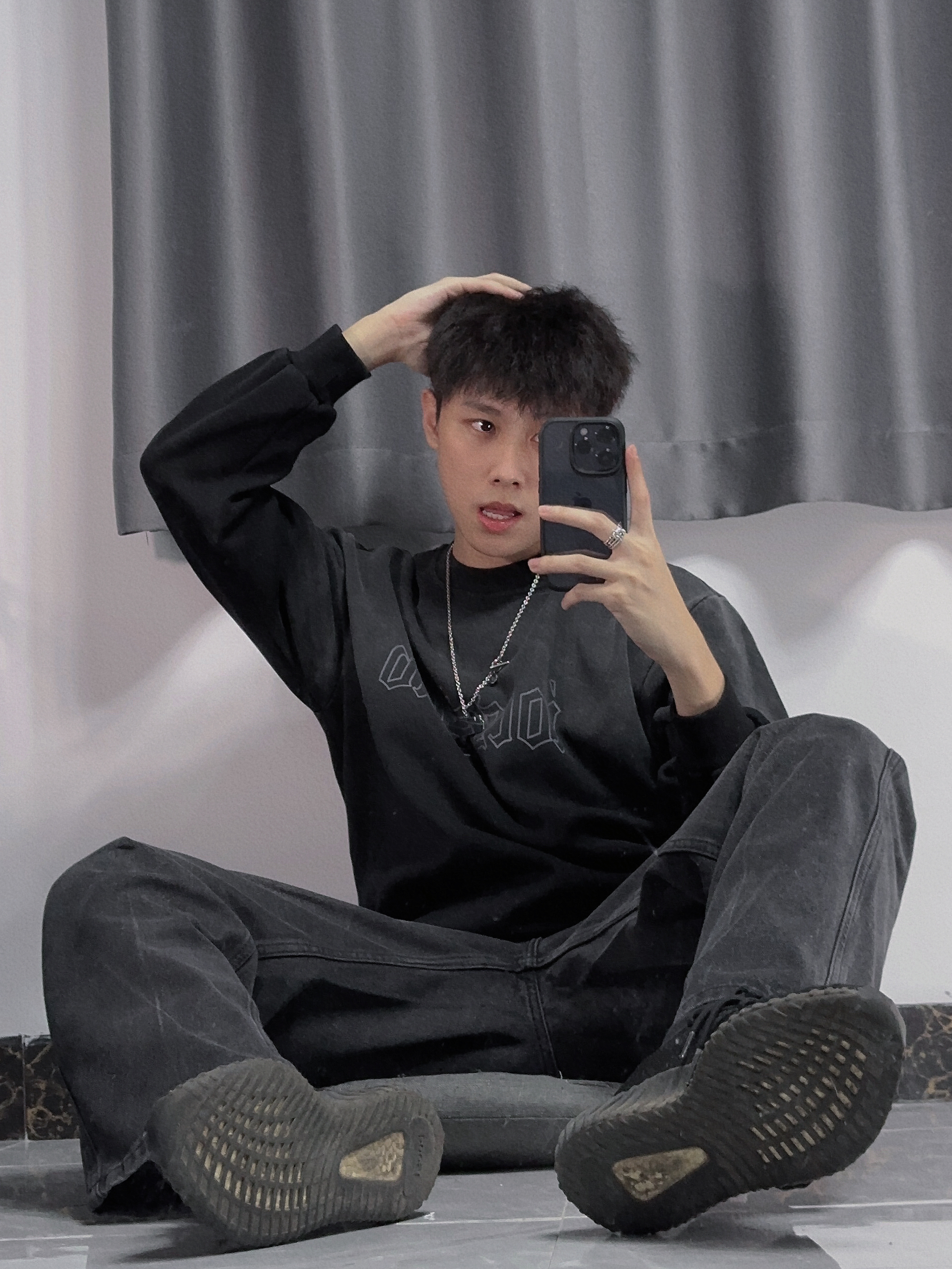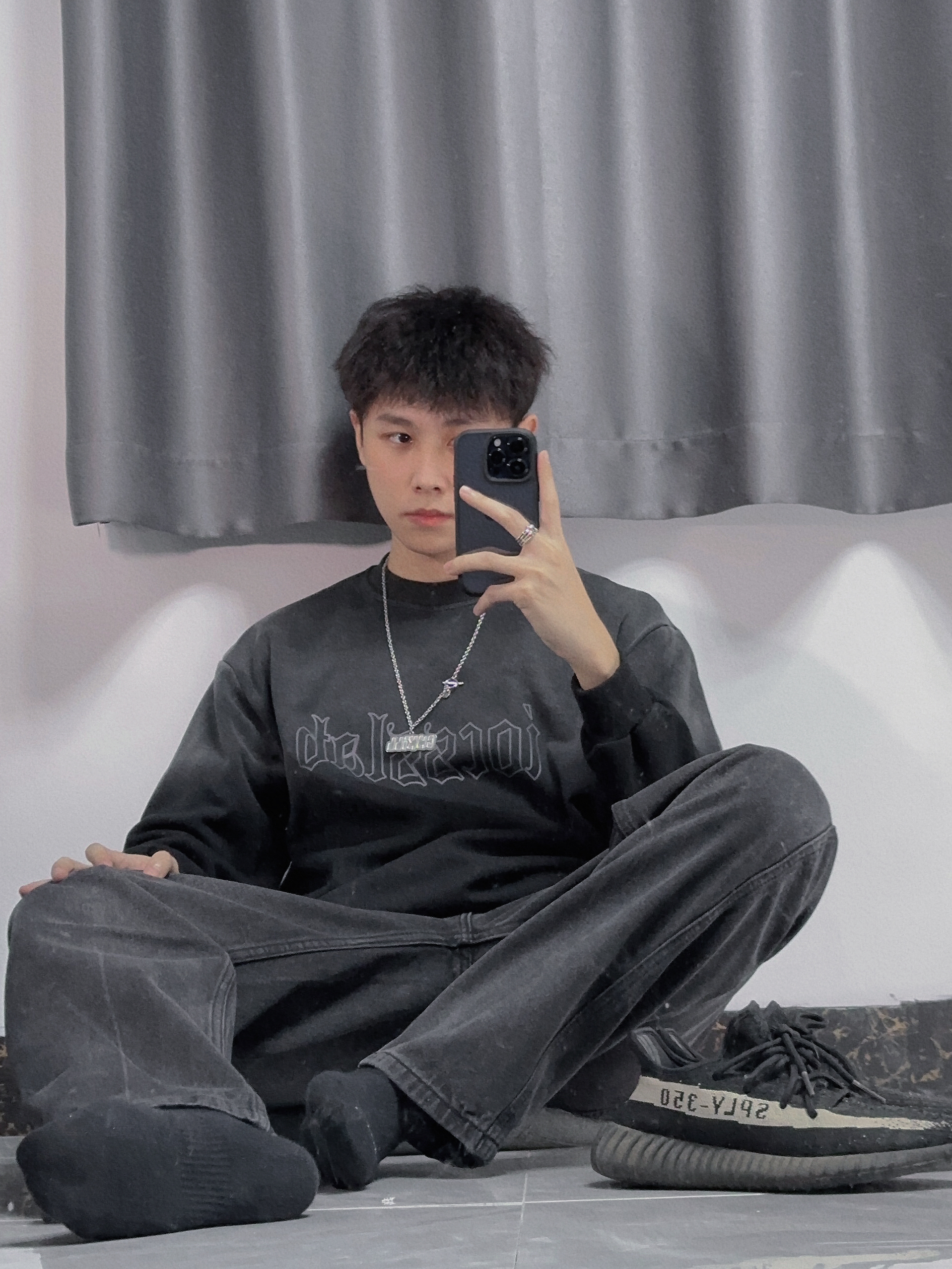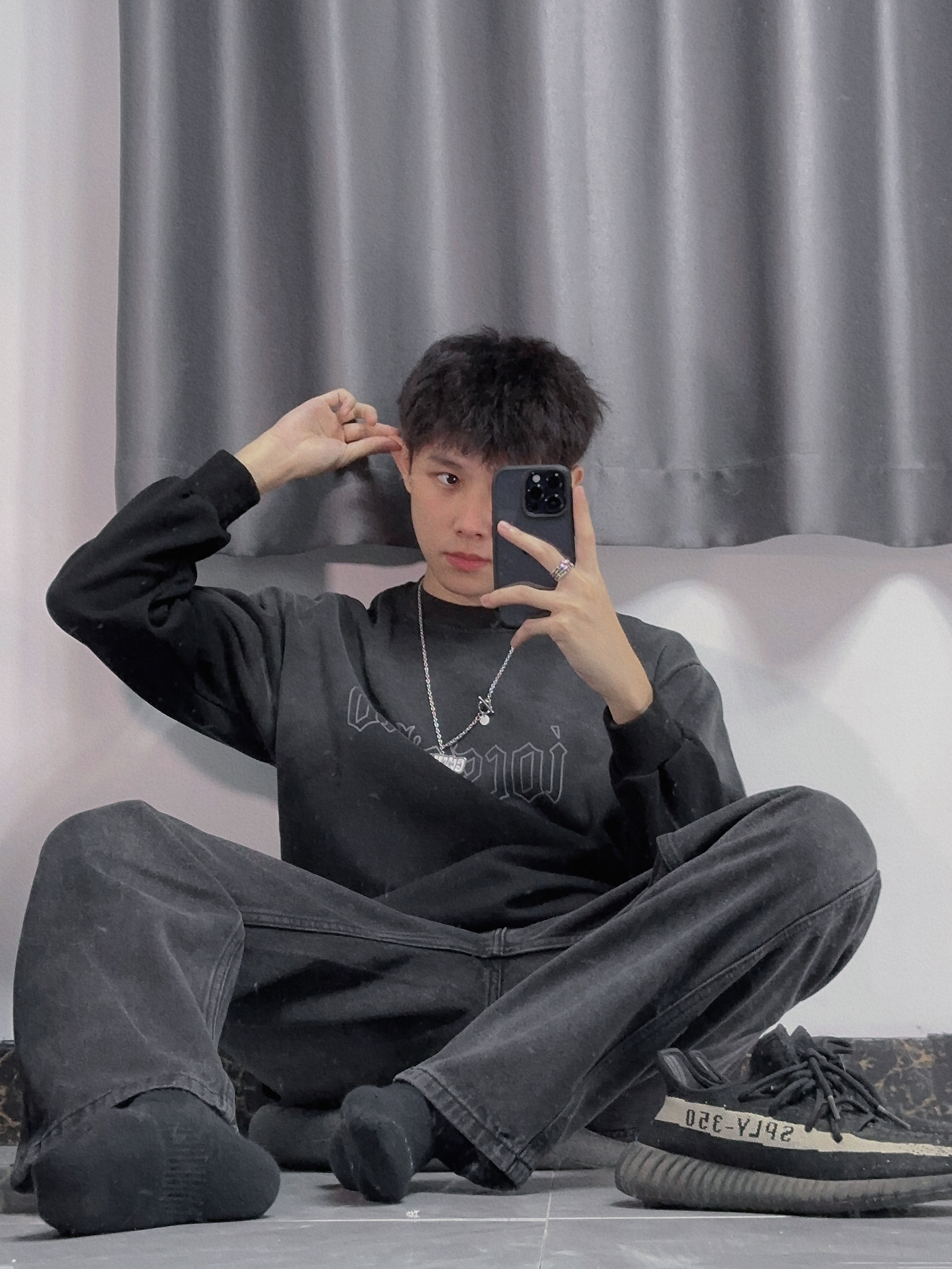 ✔️上衣:iocss渐变卫衣 ✔️裤子:OMJK ✔️戒指:KEY OF SKY —— 🥷🏻一身黑,有人追。 🥷🏻黑色系叠穿,上身渐变色卫衣,内搭白色T恤可搭配出潮男风格,卫衣保暖又百搭cool 🥷🏻黑色系牛仔裤,材质很奈斯,上身效果也不错,里面穿秋裤也🉑️ 🥷🏻新的戒指,新的开始,桎梏感小众银戒,痞子帅哥必备~