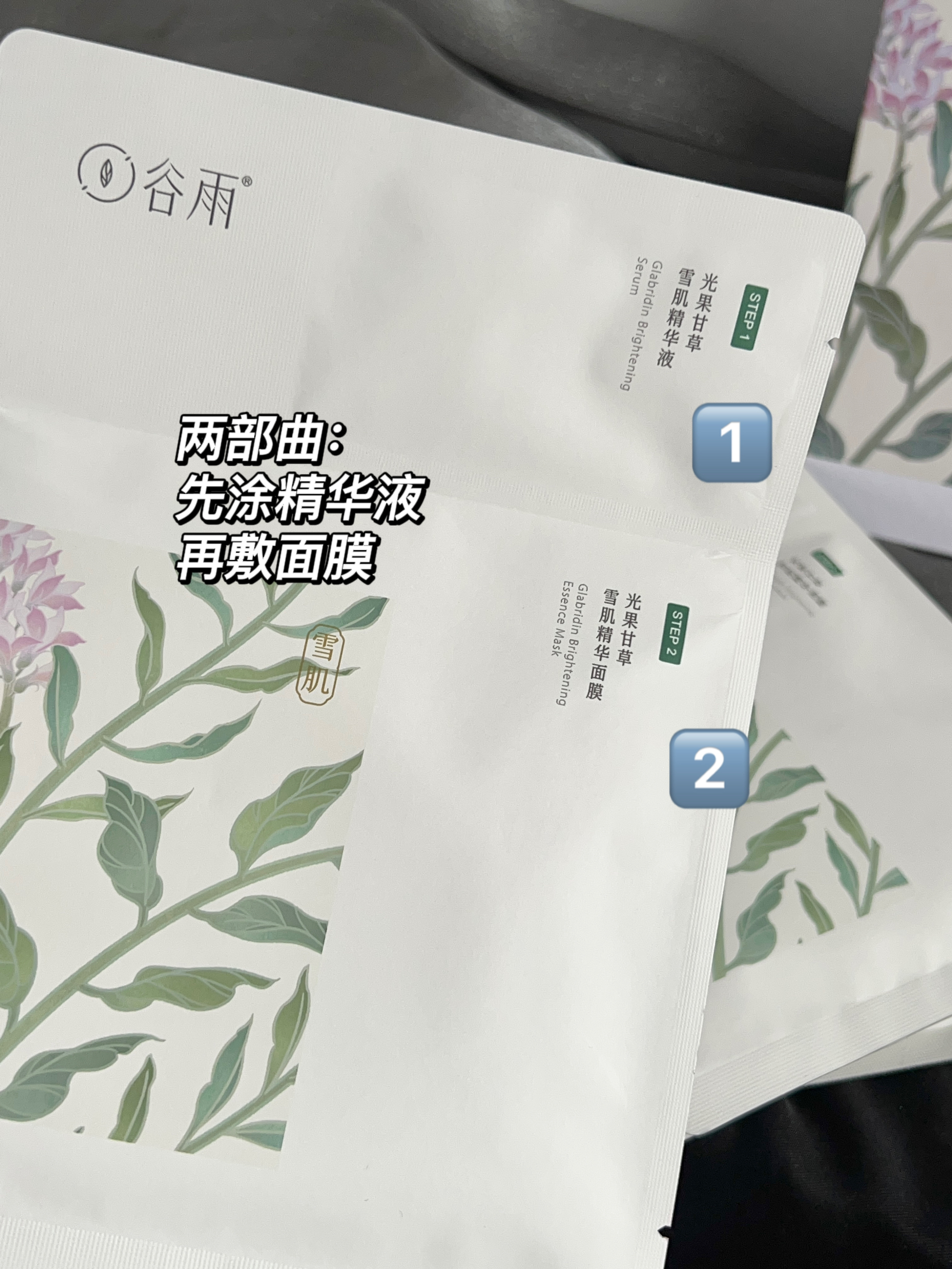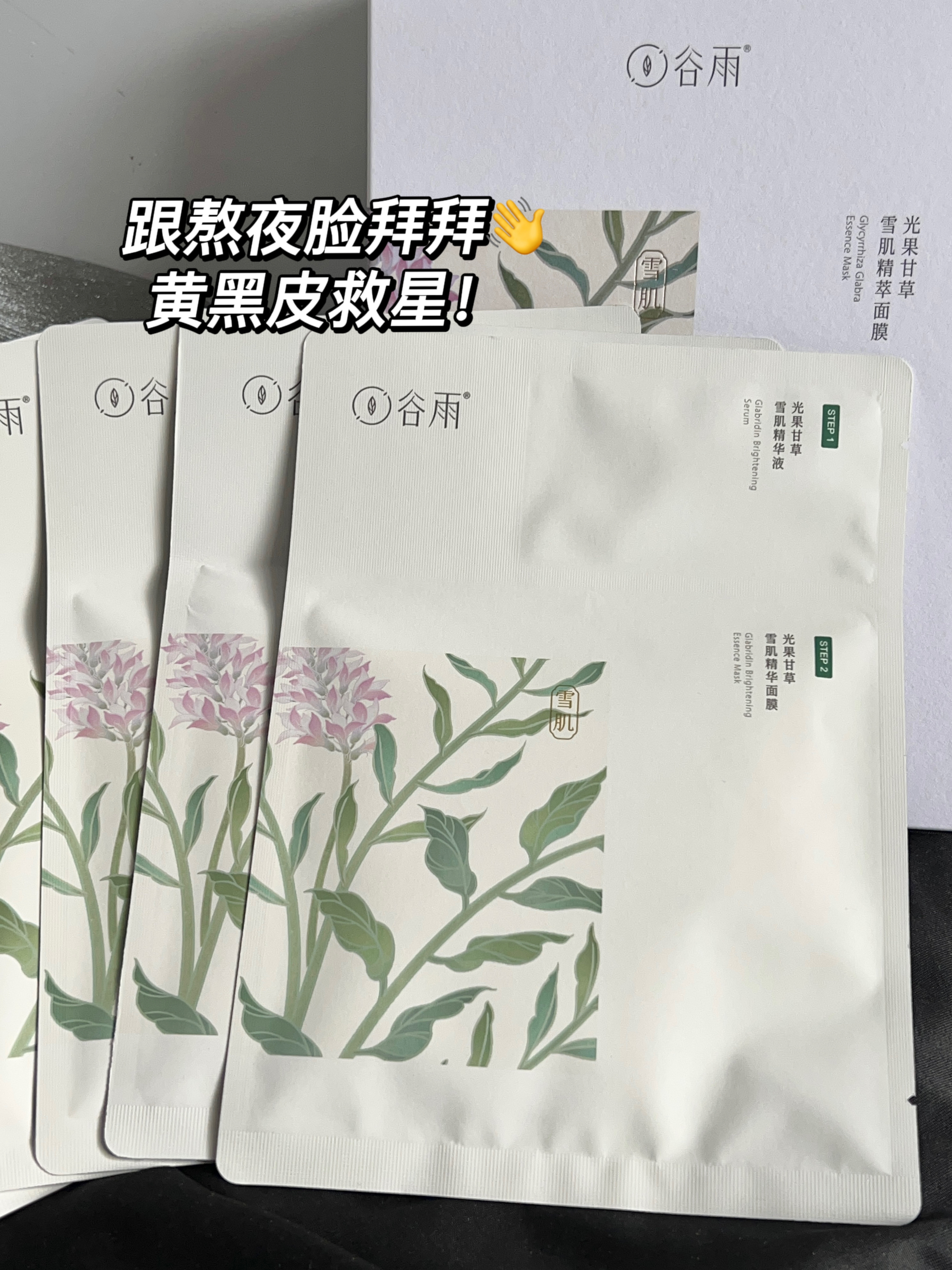最近我熬夜蜡黄暗沉的脸有回春迹象 多方找原因,原来是因为用了谷雨奶皮面膜!!! 它是用过效果坠好的美白面膜了~ 它是这种两部曲的面膜 先涂肌底液,再敷面膜~ 奶皮质地,软乎乎滑溜溜的 而且挂的住精华,炒鸡服帖!! 不会往下掉,敷面膜不耽误做事情 精华是乳白色的,仿佛往皮肤里灌牛奶🥛 敷完脸上亮堂堂的! 由内而外散发出光泽感,黄气全无,美白提亮有两把刷子! 用一段时间脸上陈年老豆印都淡了不少~ 黄黑...