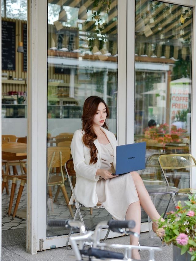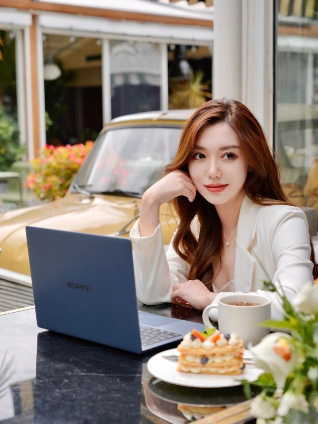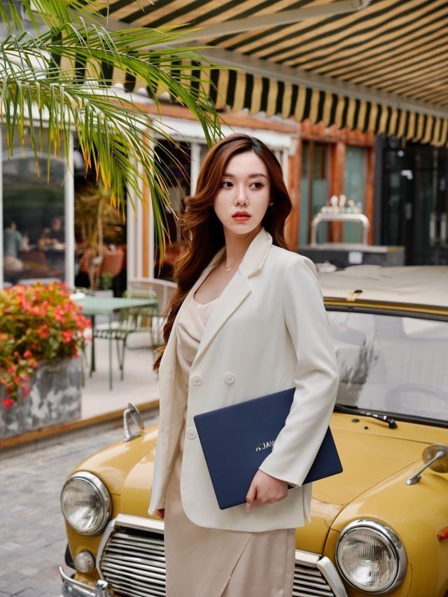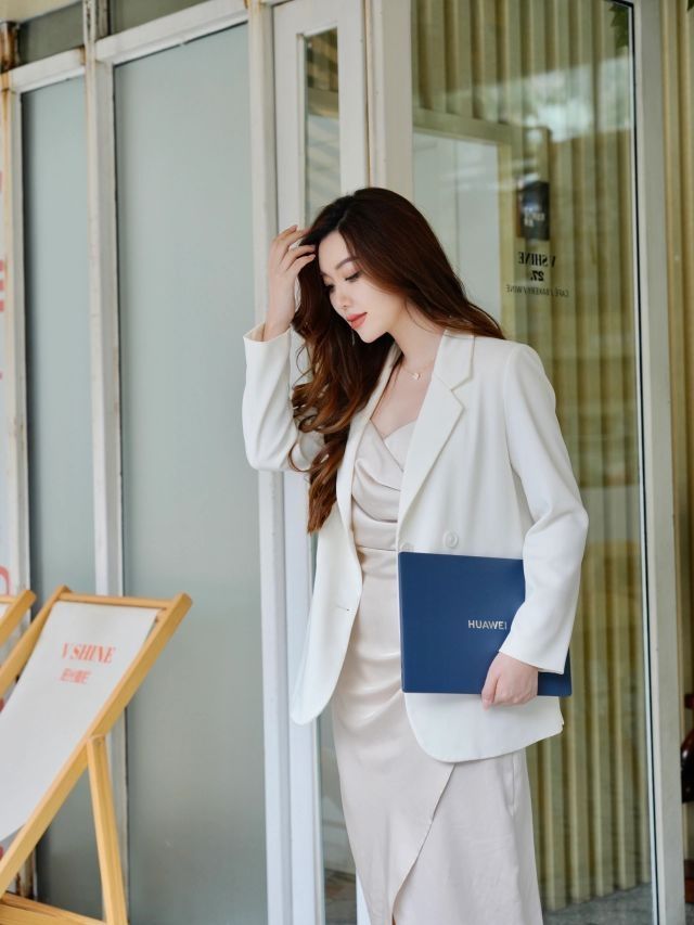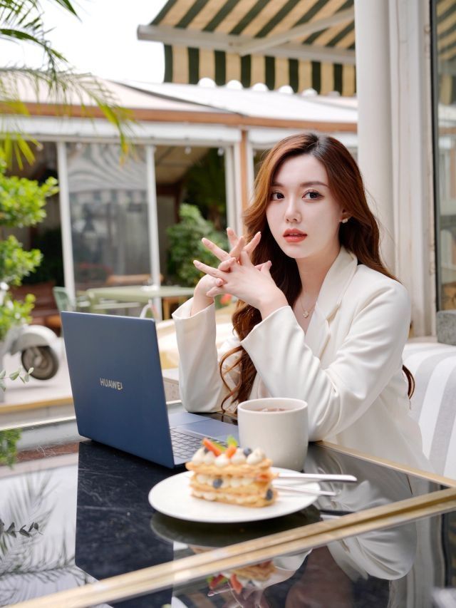 即使端着一台电脑在办公也是精致加倍不输阵的美美状态