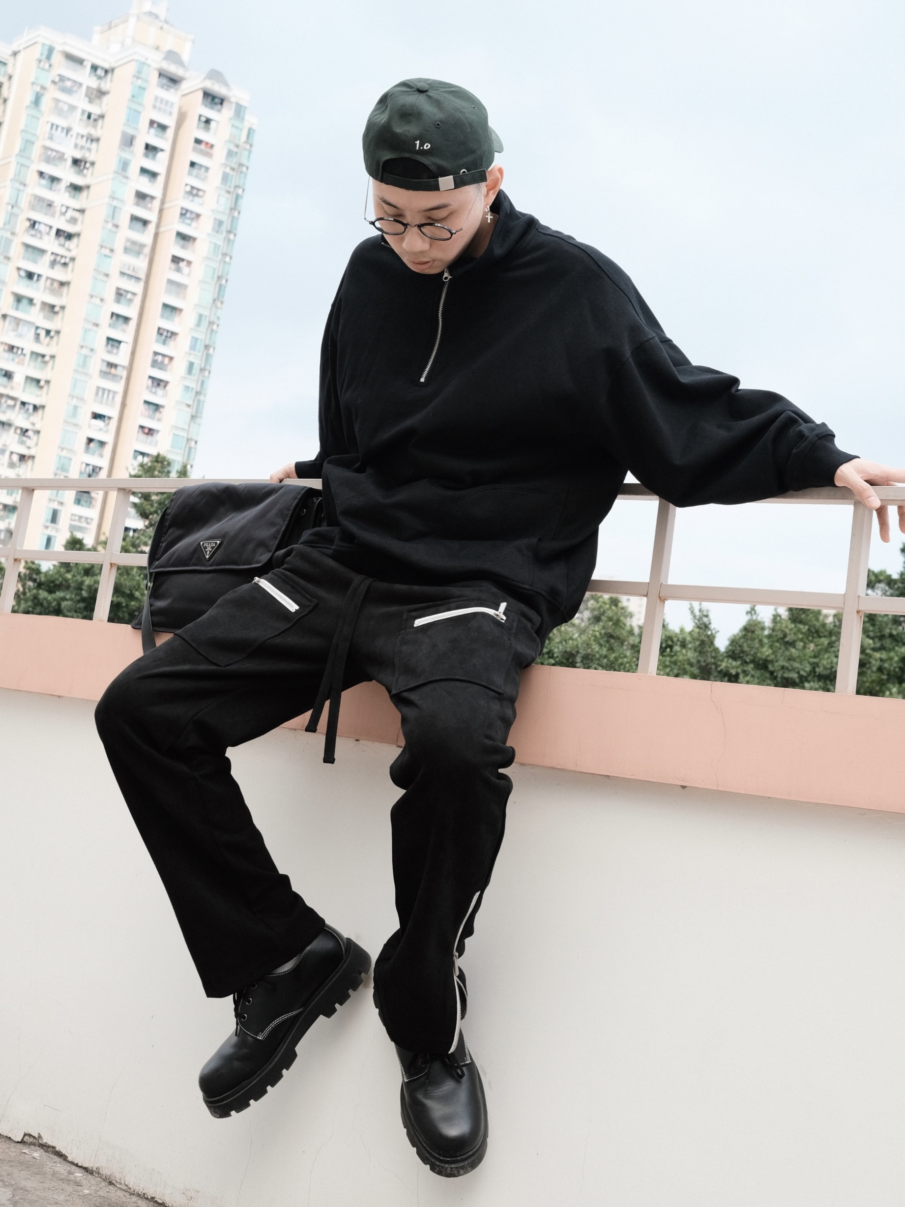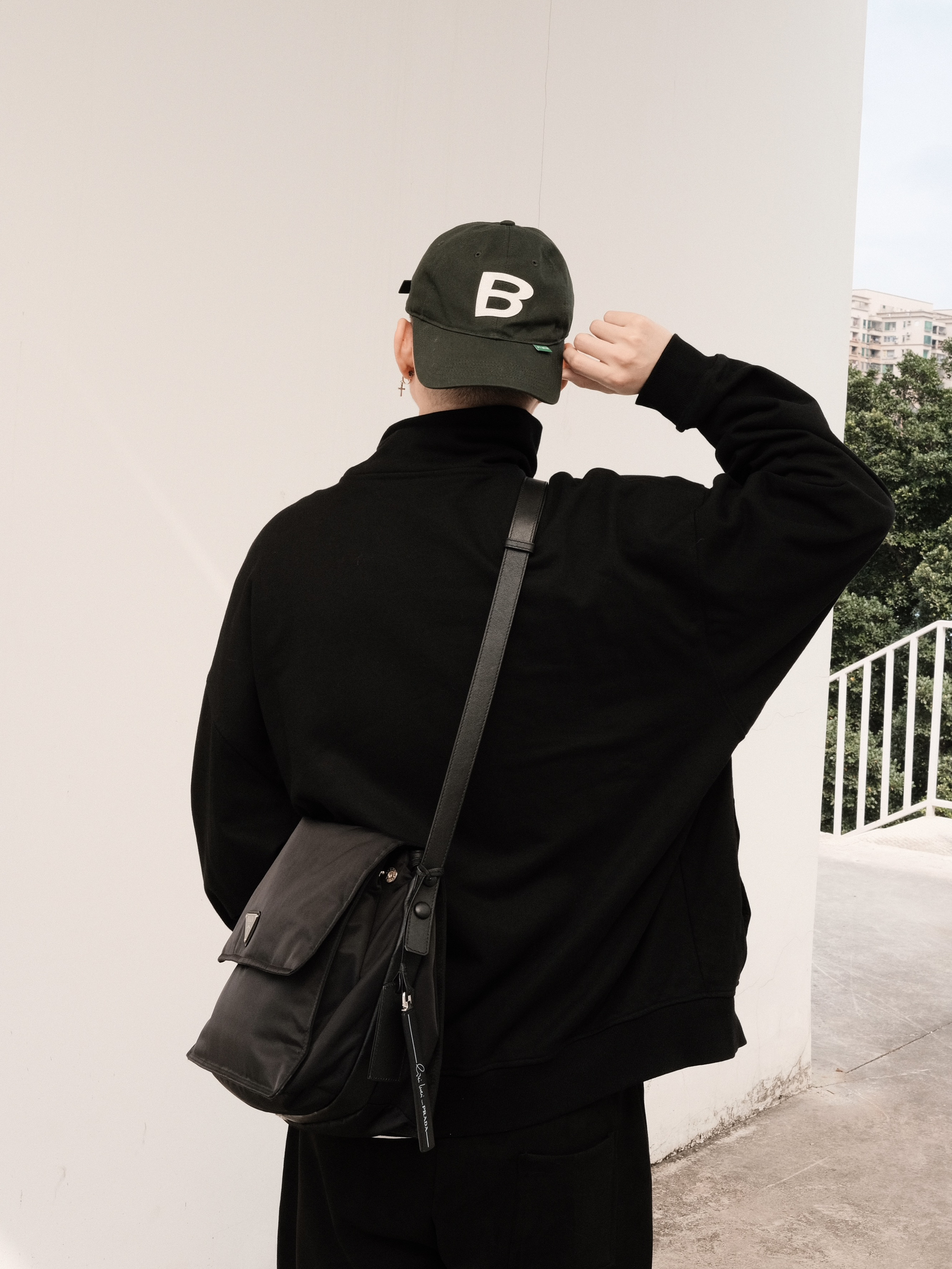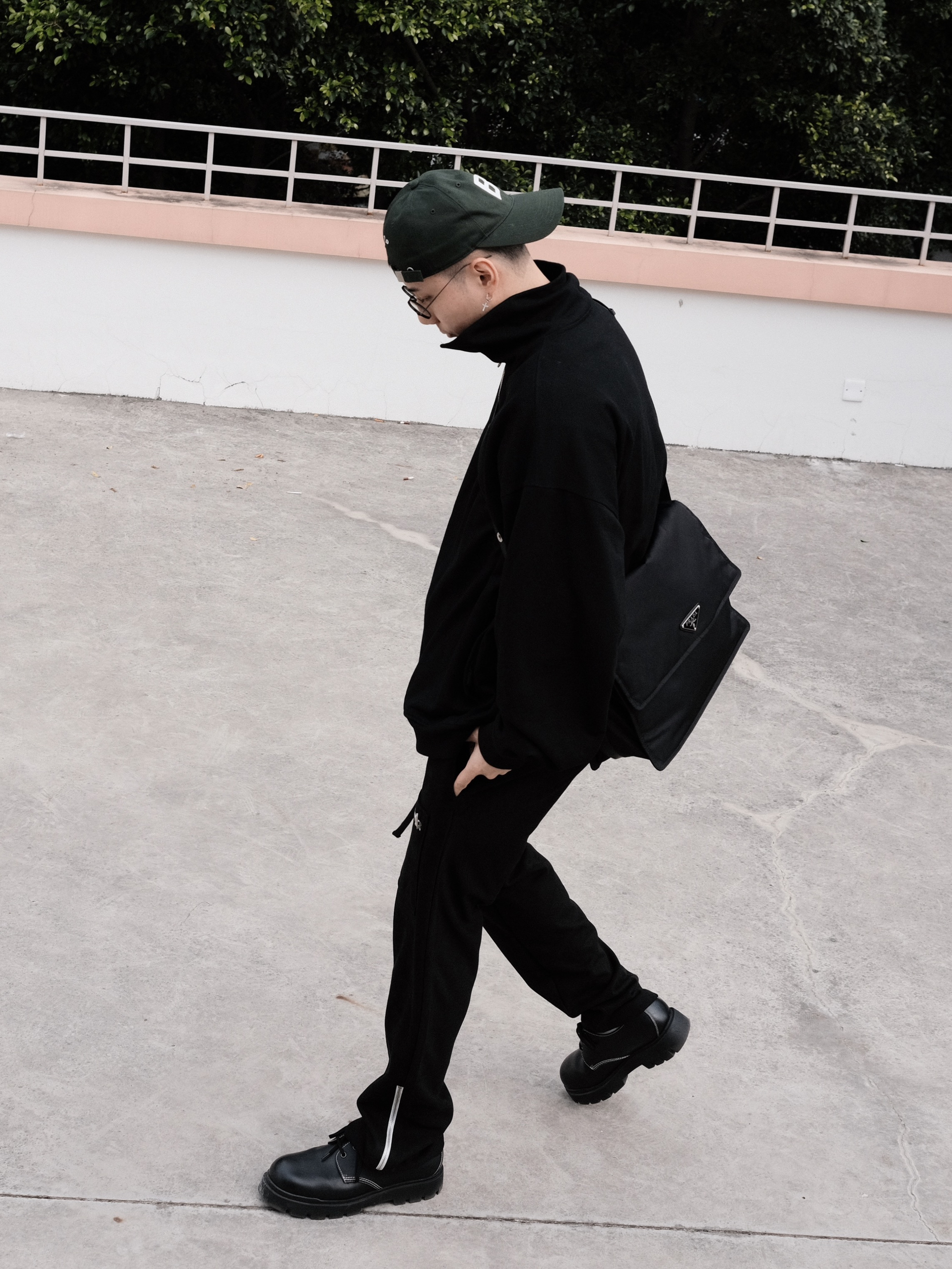 all black全黑一直是穿搭里yyds,这一次用在了学院风穿搭里~ 来个叛逆的非正式学院风😜 黑色高领运动衫+黑色裤子,配上学院风精髓之一👞,当然上学要背上能装许多课本的邮差💼斜挎起来有一点点那个味儿了
