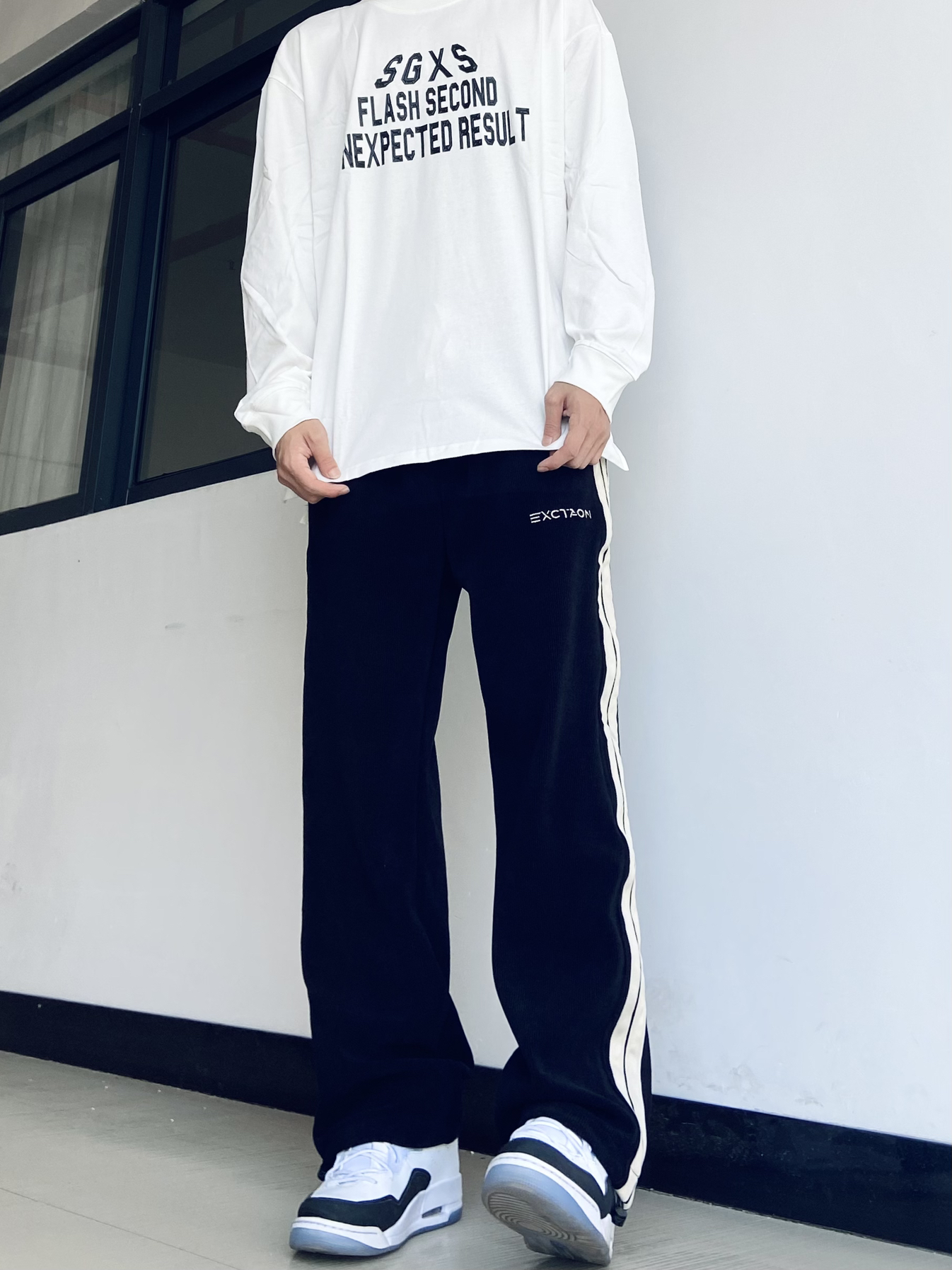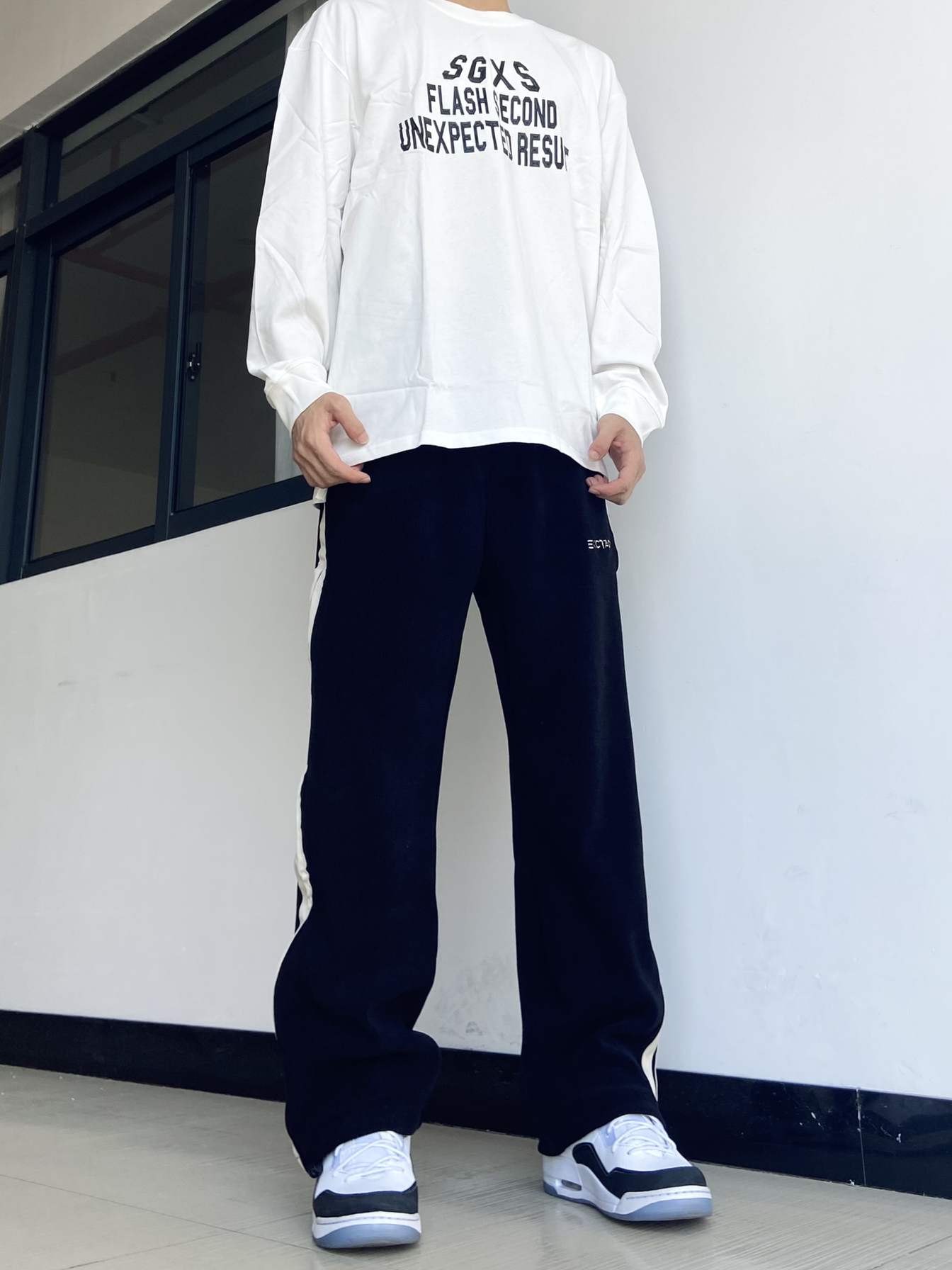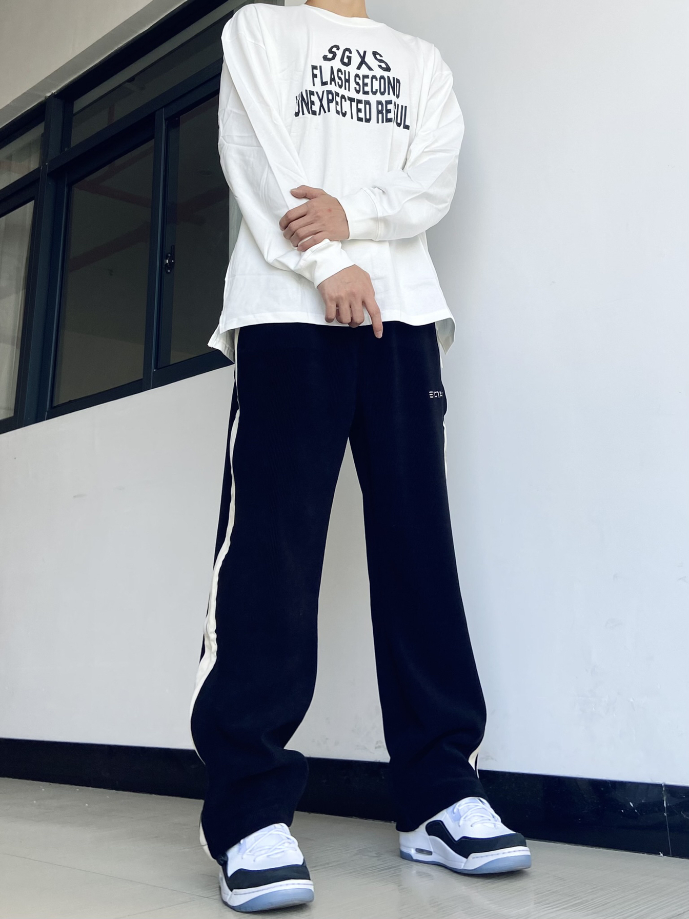 🙋♂️身高|体重:181|130 今日份Ootd: 简单英文字母设计风格的白色长袖T恤👔 搭配修身显腿长的黑色休闲直筒裤👖 长袖T恤字母设计不得不说是真好看! 黑色直筒裤侧边的拼接设计也绝了! 春季怎么穿简约又好看!