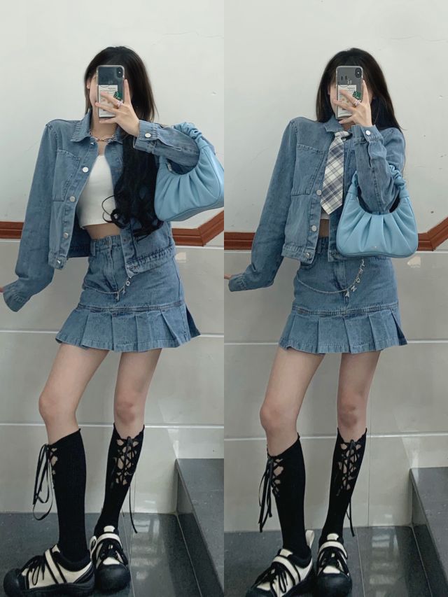牛仔套装真的超好看‼️ 👔深蓝色牛仔+长裤:Anti Being General #呜呜呜巨显瘦 深色显白显瘦 上短下长,拉高身材比例 薄款 很适合夏天春天 裤子版型敲显瘦✔️ 👔polo领黑色上衣:garbege #polo衫很减龄黑色百搭 经典条纹元素这个款式很赞✔️ 👔蓝色牛仔套装+裙子:nose自制 #绝绝子上身好看晕了特别是裙子上面的小链条 整体都很好看 领带是我自己搭的学院风哈哈✔️...