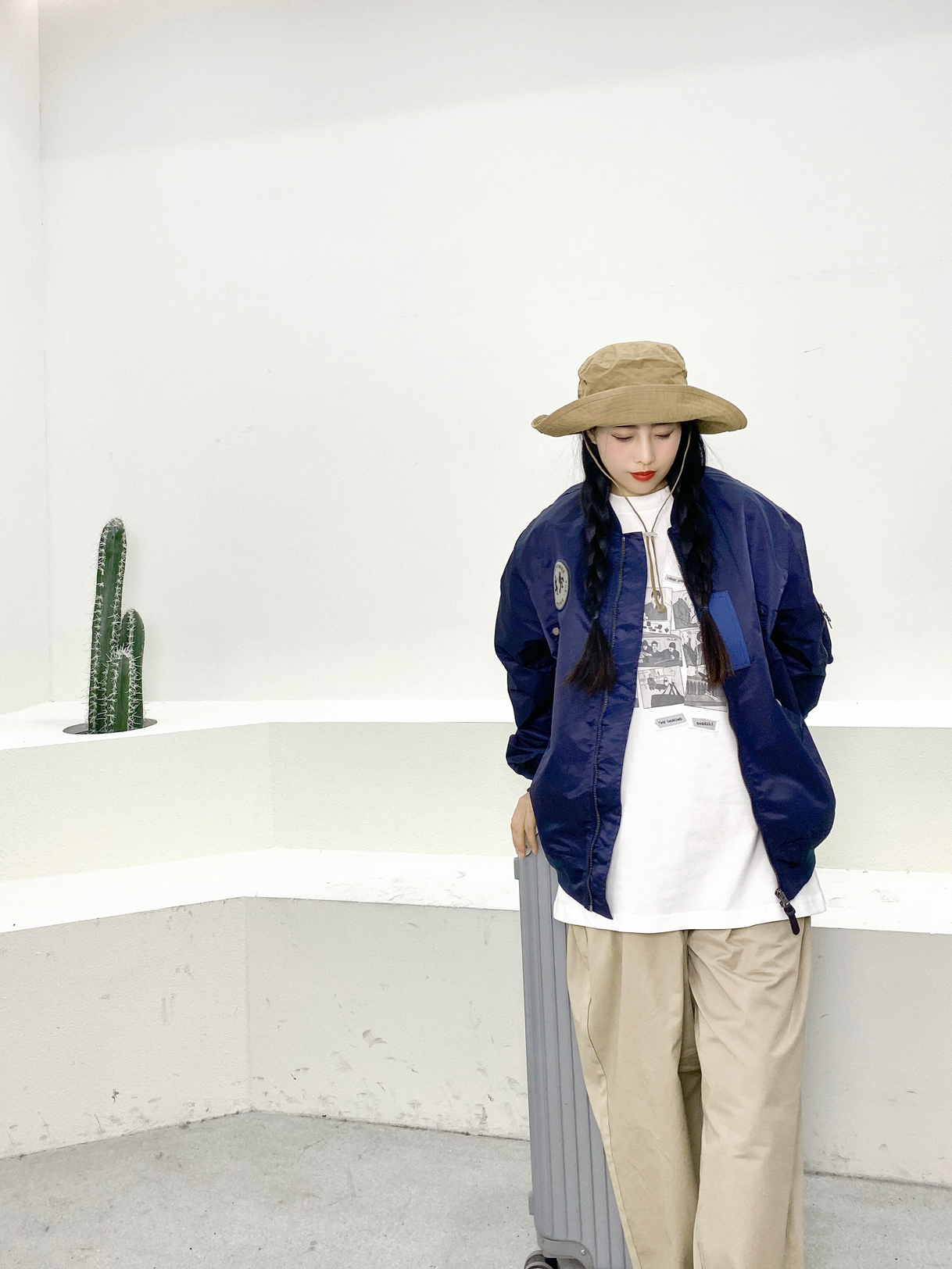 💕身高162.体重98.尺码M 🌙🌙🌙🌙🌙🌙🌙🌙🌙 山系OOTD如何搭? 关于“山系”穿搭色彩 山系男孩女孩大多以大地色、森林色、海洋色。等自然色系为主,推荐军绿、卡其、深蓝、灰色和纯白。 关于“山系”必备单品 棒球服,冲锋衣,渔夫帽、登山鞋👟、工装裤、都必不可少。 ✨✨✨✨✨✨ #NOTHOMME 藏青色飞行员🧑🏻✈️夹克,防风防水,适合户外穿着,宽松造型,不挑身材! #NOTHOMME ...