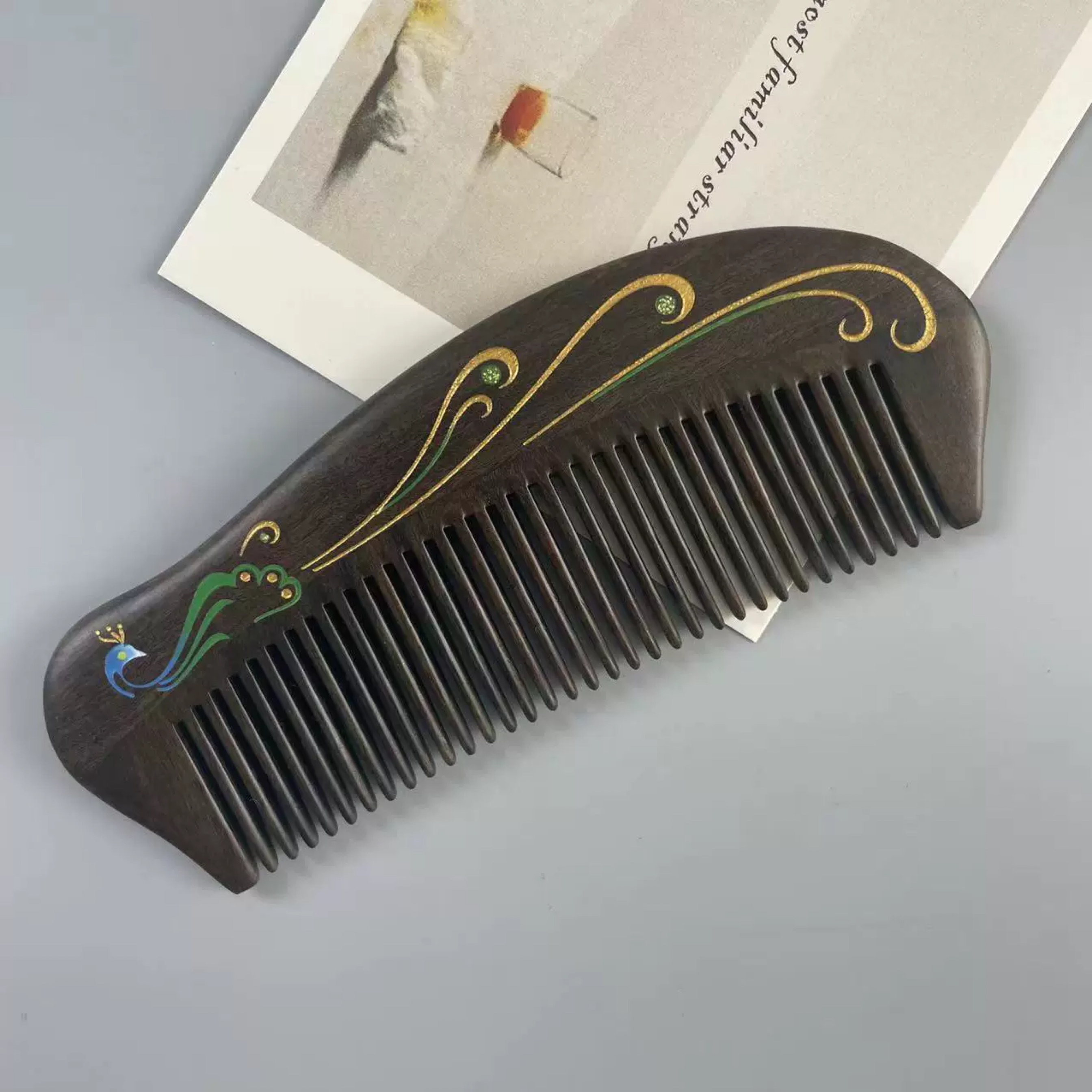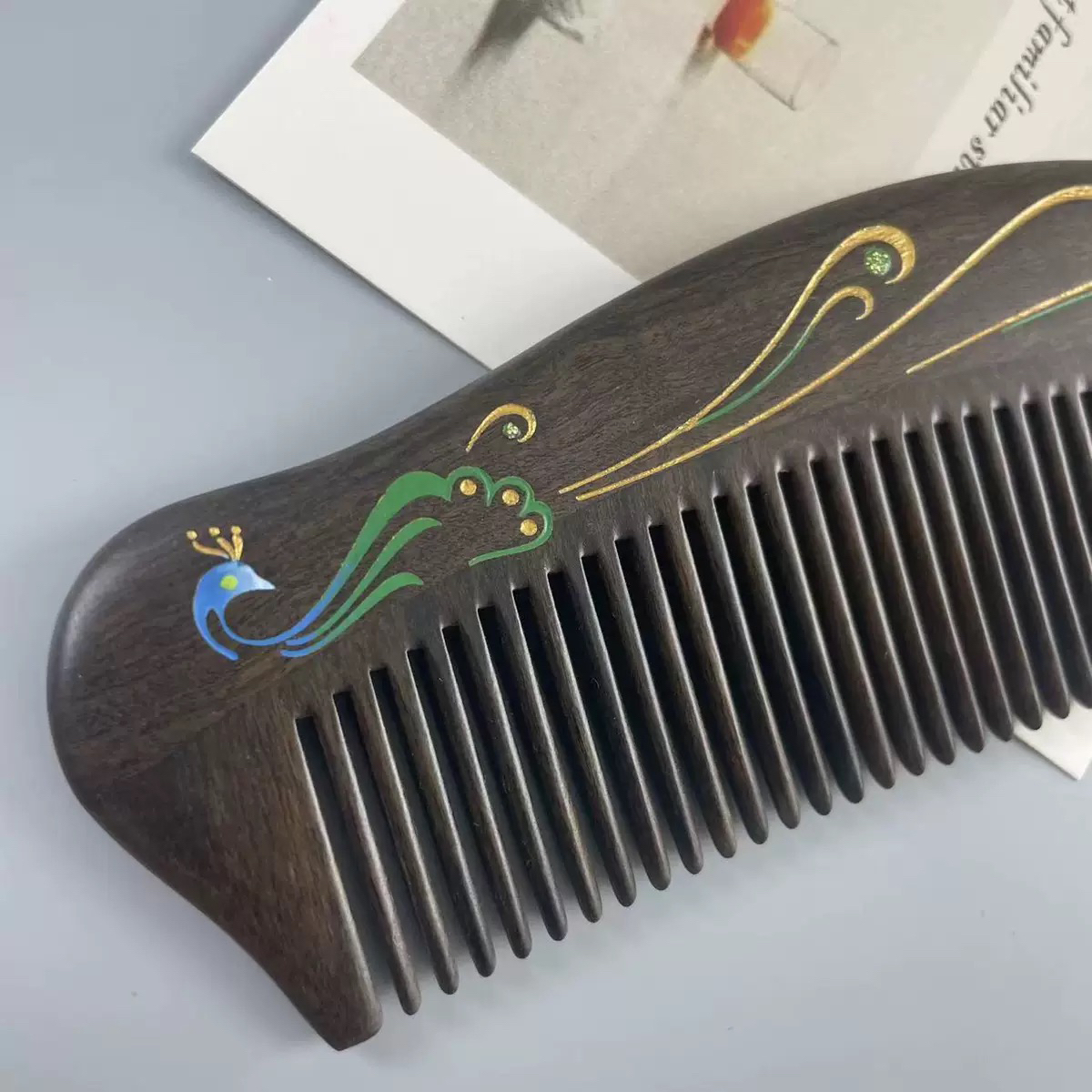 我的发质一直都比较差,之前用的梳子很难用,梳起 头来又硬又疼,所以我一直在物色好用的梳子,突然 有一天,我看到了这款谭木匠雀翎二天然木梳,于是 決定买来用-❤️ - 下,结果发现出乎意料的好用。 他们家的这款梳子选用的是沉贵宝材质,心材近黑色 的暗褐色带有浅棕色条纹。纹理交错,并且富有光泽 度。❤️同时这款木梳采用传统漆艺工艺与木梳相结合. 漆艺的图案给整把木梳给予了灵魂,使其更加生动耀 眼。❤️...