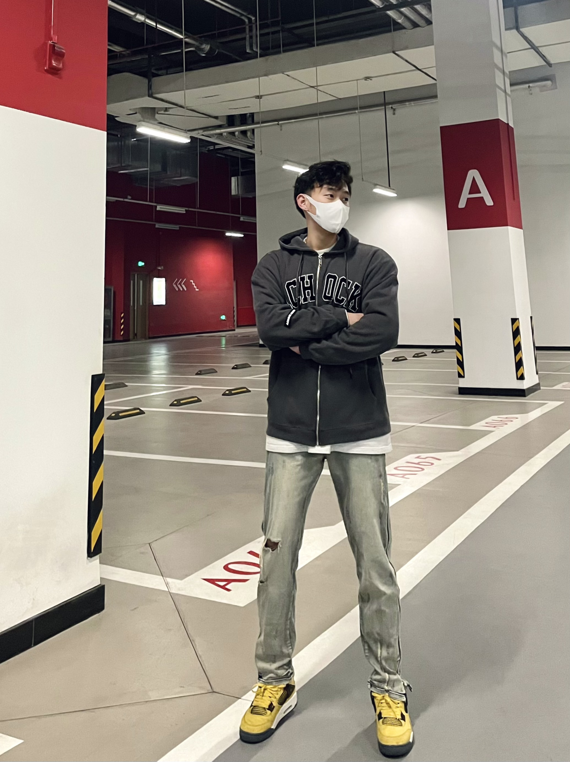 今日份男生穿搭 夭气逐渐变暖 开衫卫衣变得特别舒适 版型硬挺印花细节的ac卫衣 真的上身超帅 百搭的灰色搭配字母印花 真的很有质感! 搭配破洞牛仔裤 真的是很有层次的一身穿搭啦