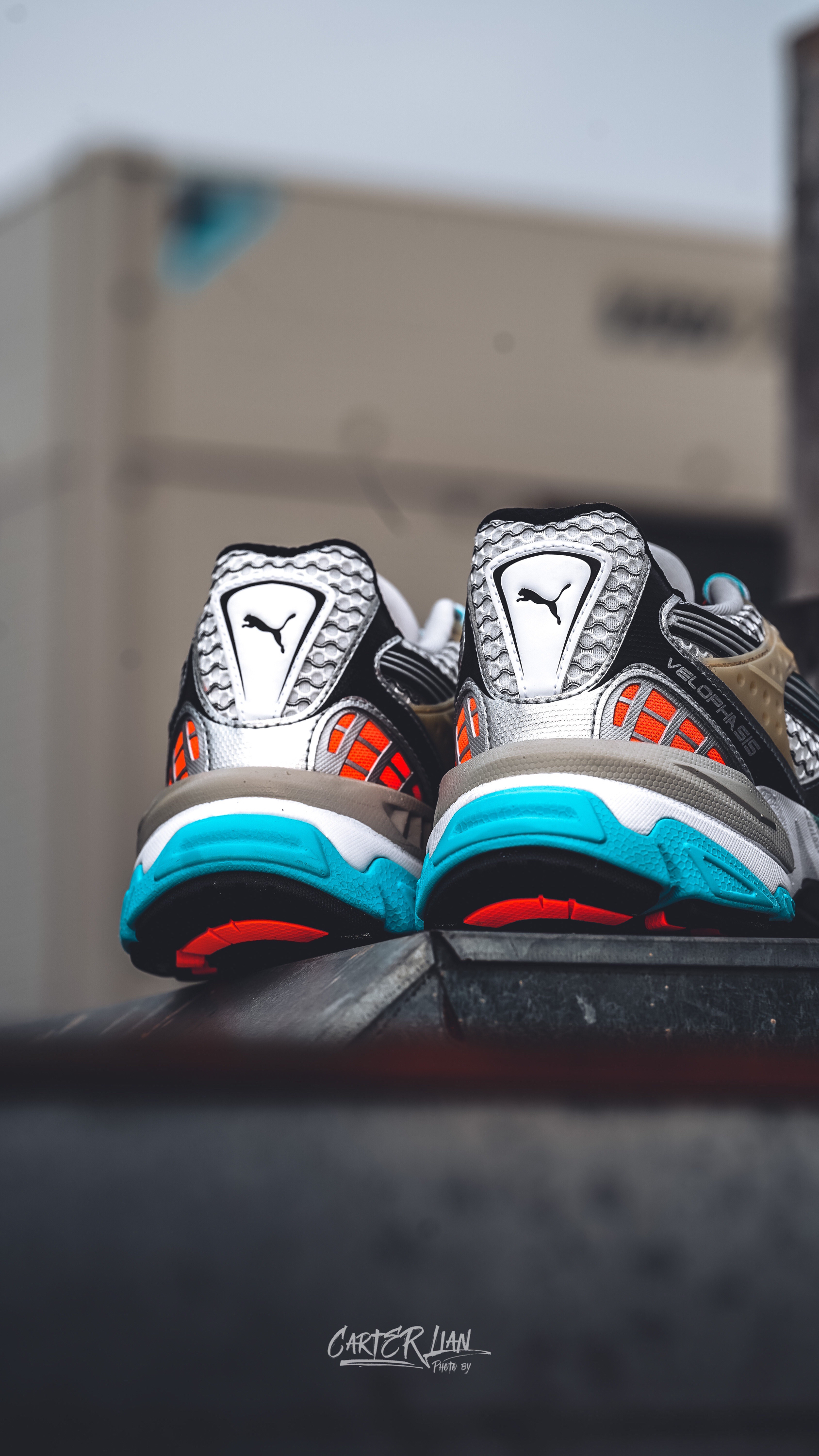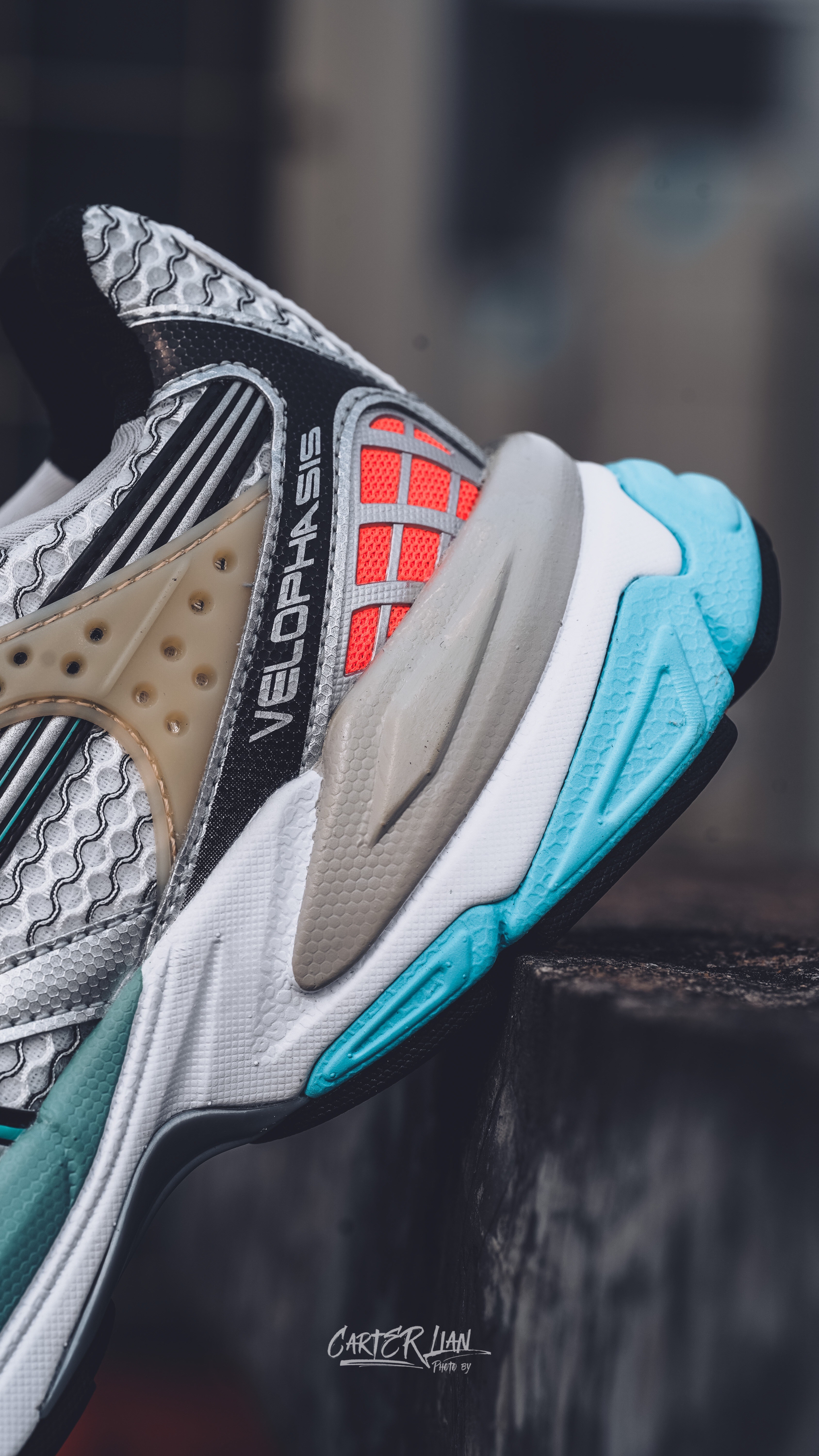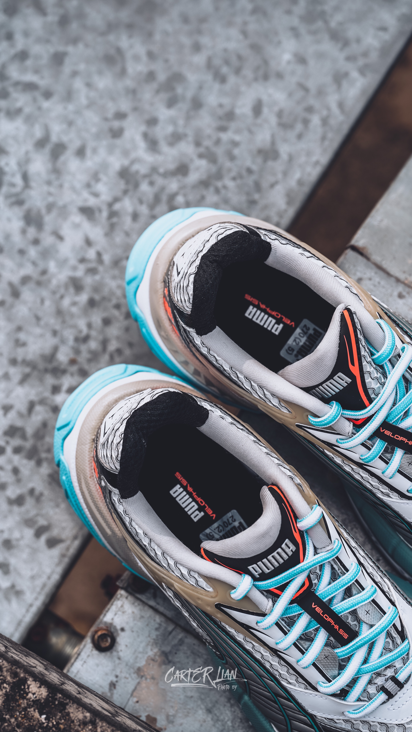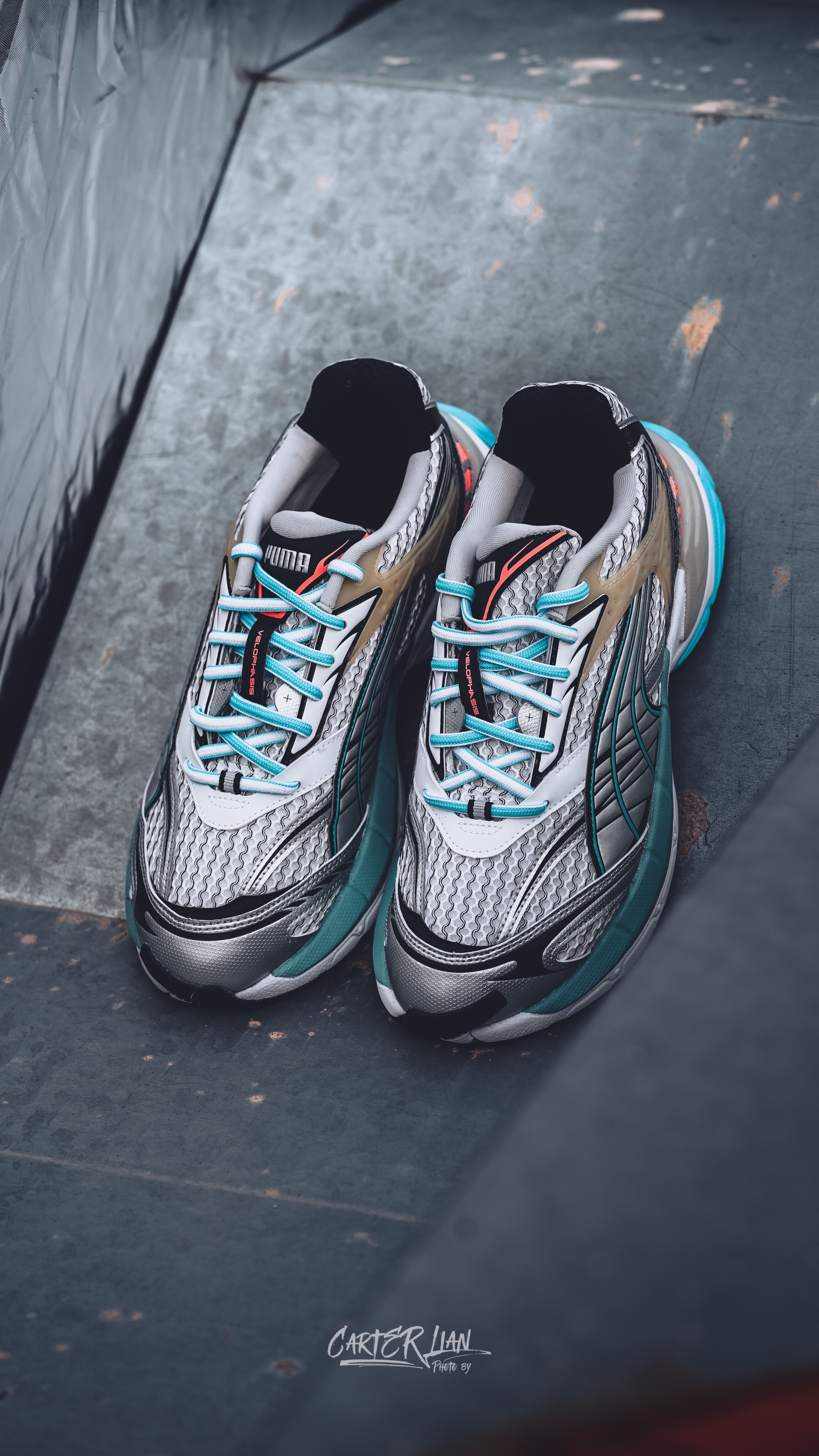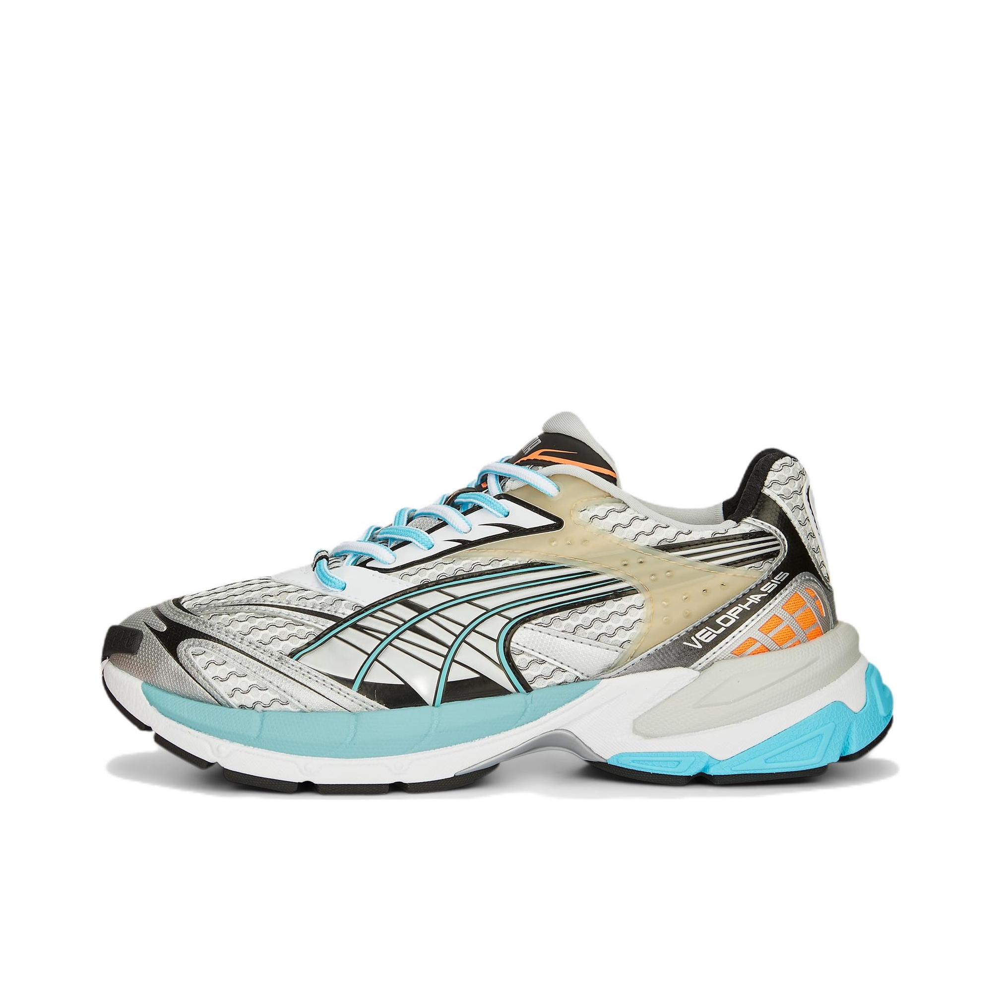 老爹鞋的市场热度可以说是依然是居高不下,而这次PUMA推出的全新鞋款VELOPHASIS在此基础之上,寄栖于PUMA的设计愿景,借由Y2K的美学视觉语言,千禧年的复古感色彩鲜明的撞色还是非常有辨识度的。 🔍整体细节 整双鞋采用银色的鞋面搭配,蓝橙色的撞色对比,色彩鲜明的同时,给我一种一种浓浓的千禧年胶卷复古感,鞋面上的灰色纹路勾勒出跑道的纹路把复古与运动结合起来,个人是喜欢这样子的设计。 而材...