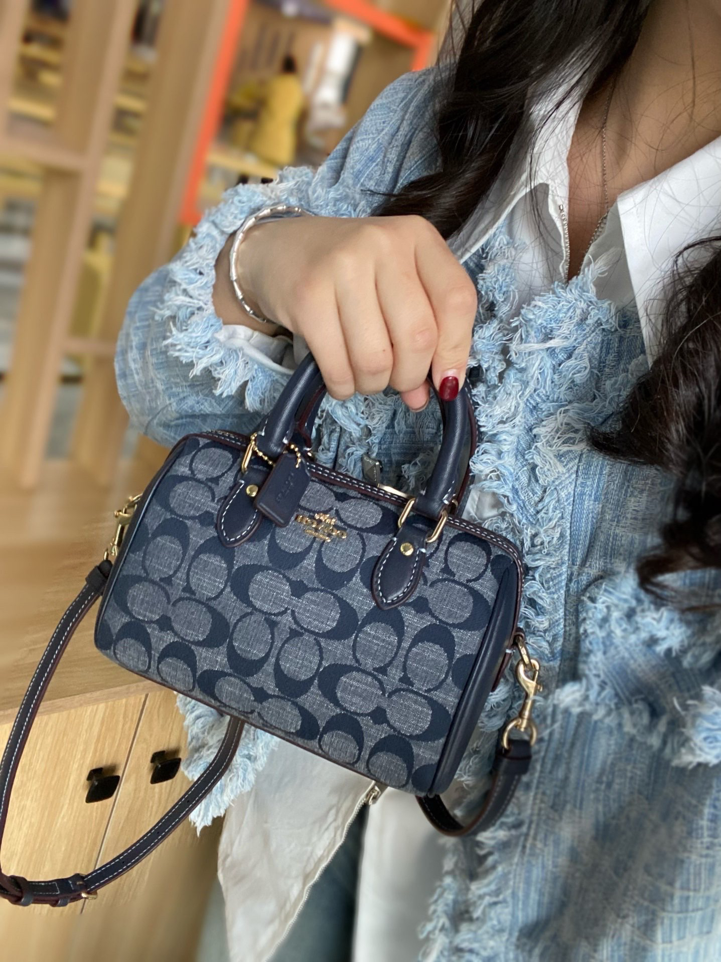 本篇笔记关联了Coach Kleo 24 中号 老花印花马鞍扣香布蕾平纹帆布配皮翻盖单肩手提斜挎包 牛仔蓝色等商品,为用户提供真实的使用体验和购买参考。