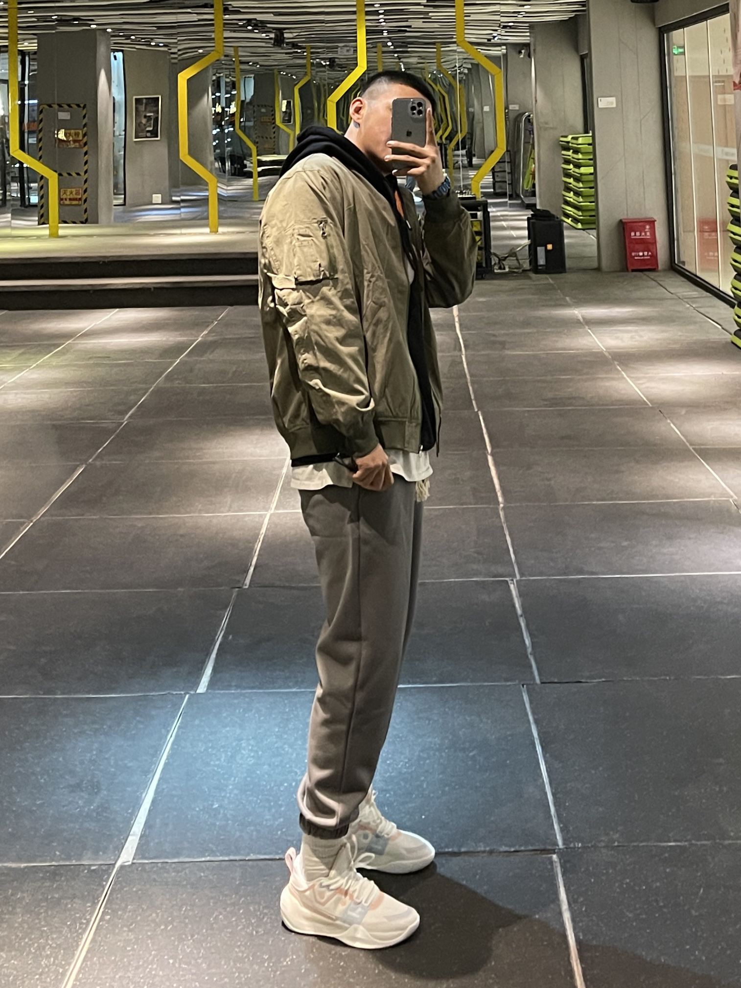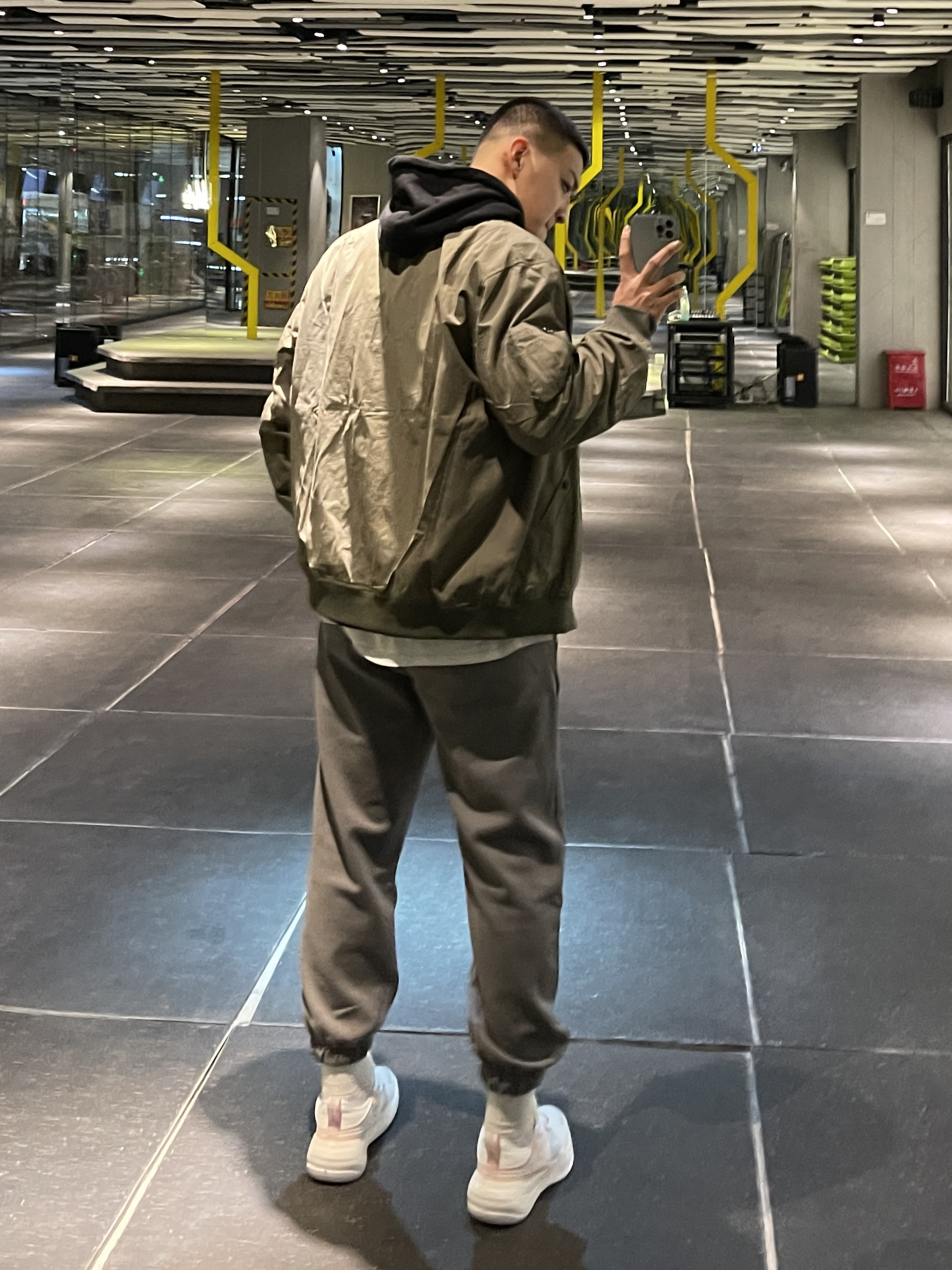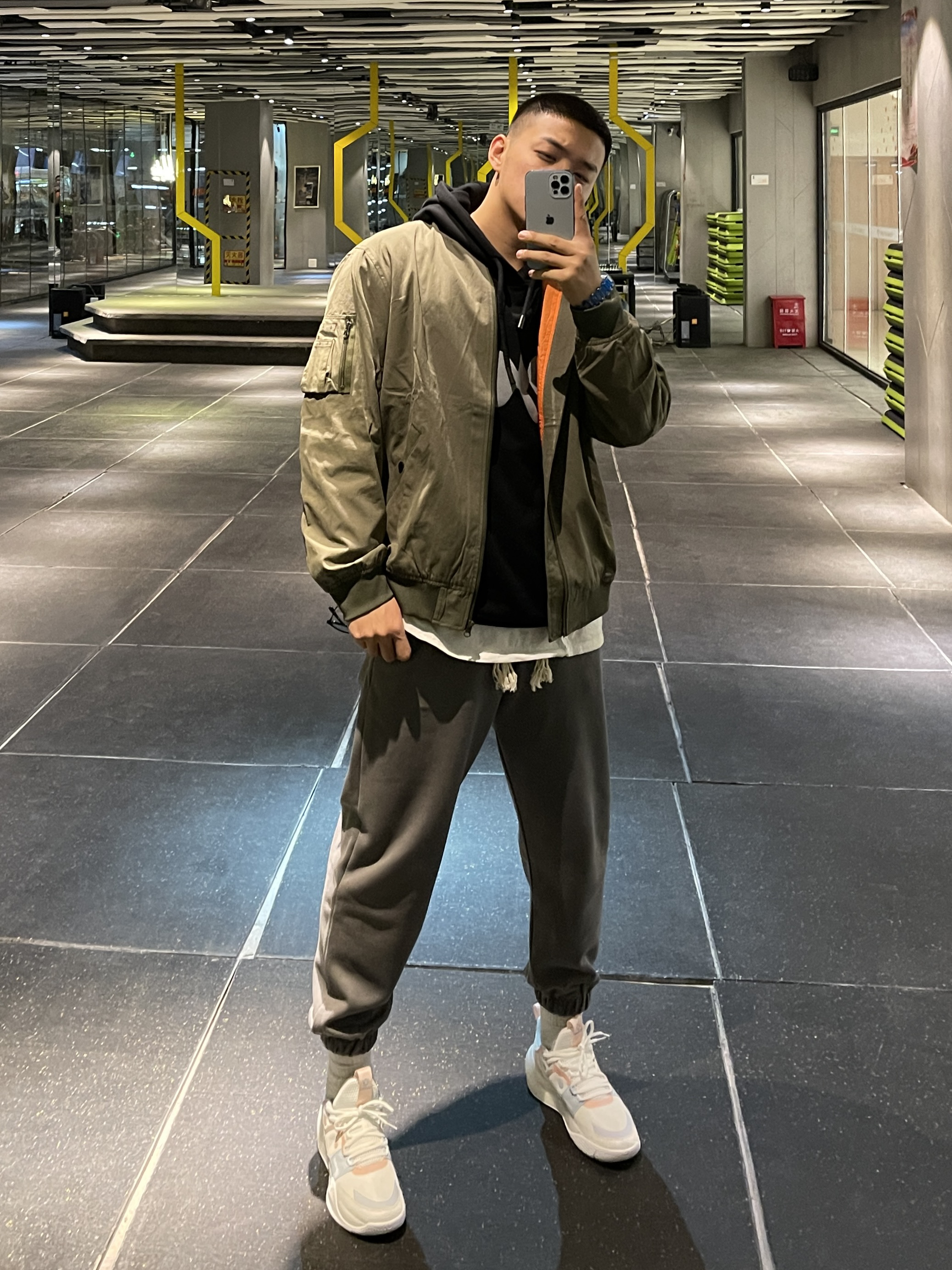 秋冬必不可少的飞行夹克! 跟卫衣或丁恤搭都很好看!体闲又很拽! 搭配高级灰的卫裤真的帅住了! 裤子版型蛮修饰腿型的!白色内搭也不显单调 👔:hansca 👖:KGK