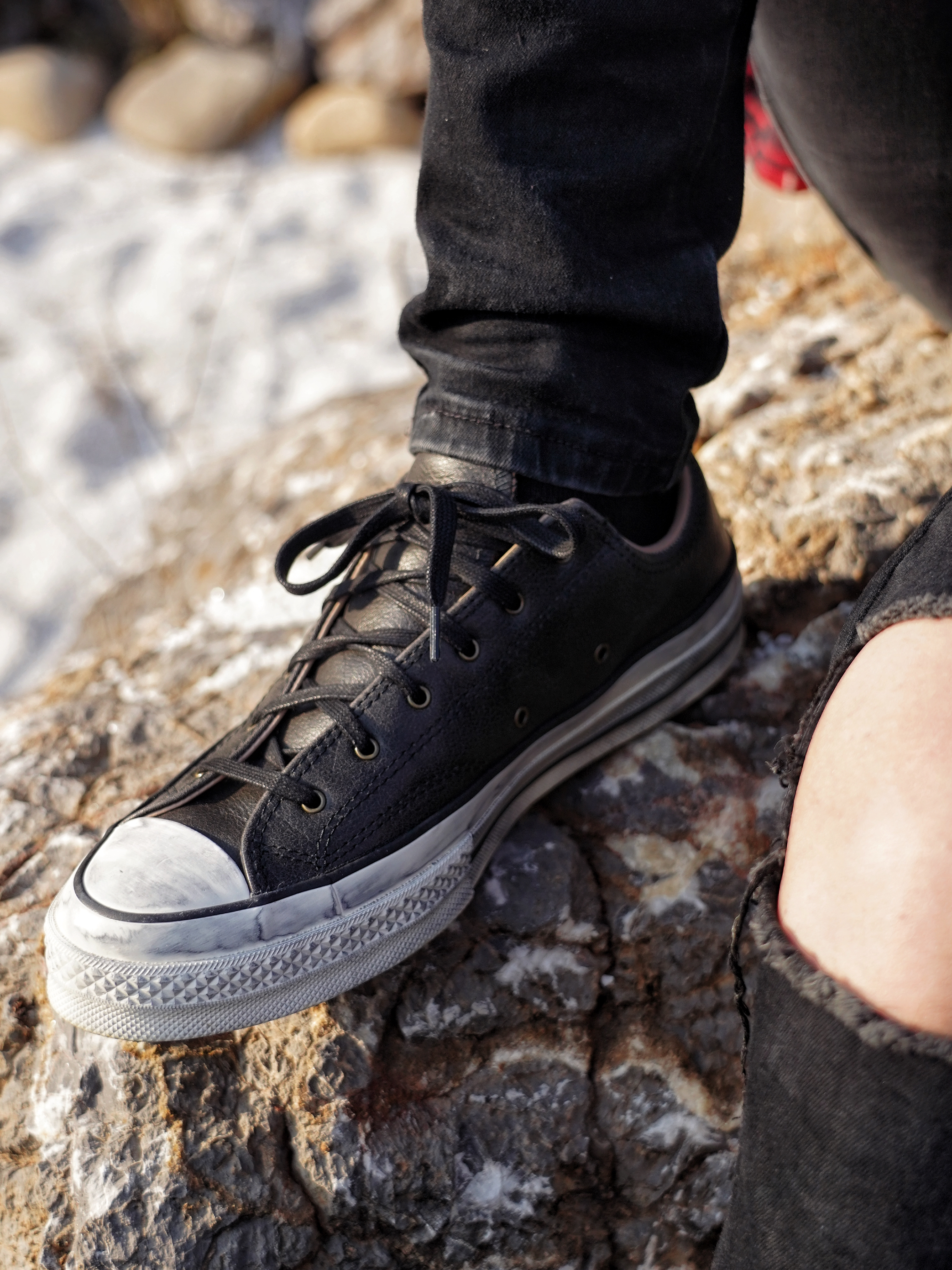 开春穿搭,做个潮流ivy boy吧。 有一说一,叠穿真的很能凸显时尚! 黑白叠穿+红色系衬衫+棕咖调牛仔外套 复古嘻哈之余又不失ivy感 很适合日常的户外出街搭配。 - 因为上半身的服装色彩搭配比较丰富 所以鞋子和裤子的色彩就可以稍微简单一些。 - 黑白撞色的帆布鞋相信大家应该不陌生了吧? 比较特别的是它的做旧复古设计 超有个性的做旧鞋底配上皮质鞋舌 搭配起来可以增加不少的学院风和潮流感哦。 -