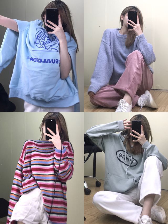 ◽️ 🥣蓝色圆领毛衣: SSHI诗诗 🌈彩色条纹毛衣: ivy魔法衣橱 🐳天蓝色连帽卫衣: 废克赛文 🥝浅绿色连帽卫衣:VINNECOMBE 👖粉色灯芯绒阔腿裤: AmiGirl 👖白色高腰直筒裤: zavk 👟平价老爹鞋: 玛速主义 考虑到大家的参考 照片都是原图🈚️滤镜修图 如果我的分享对你们🈶参考价值 希望能点亮小红心❤ 我会坚持分享穿搭及测评 感谢观看^_^