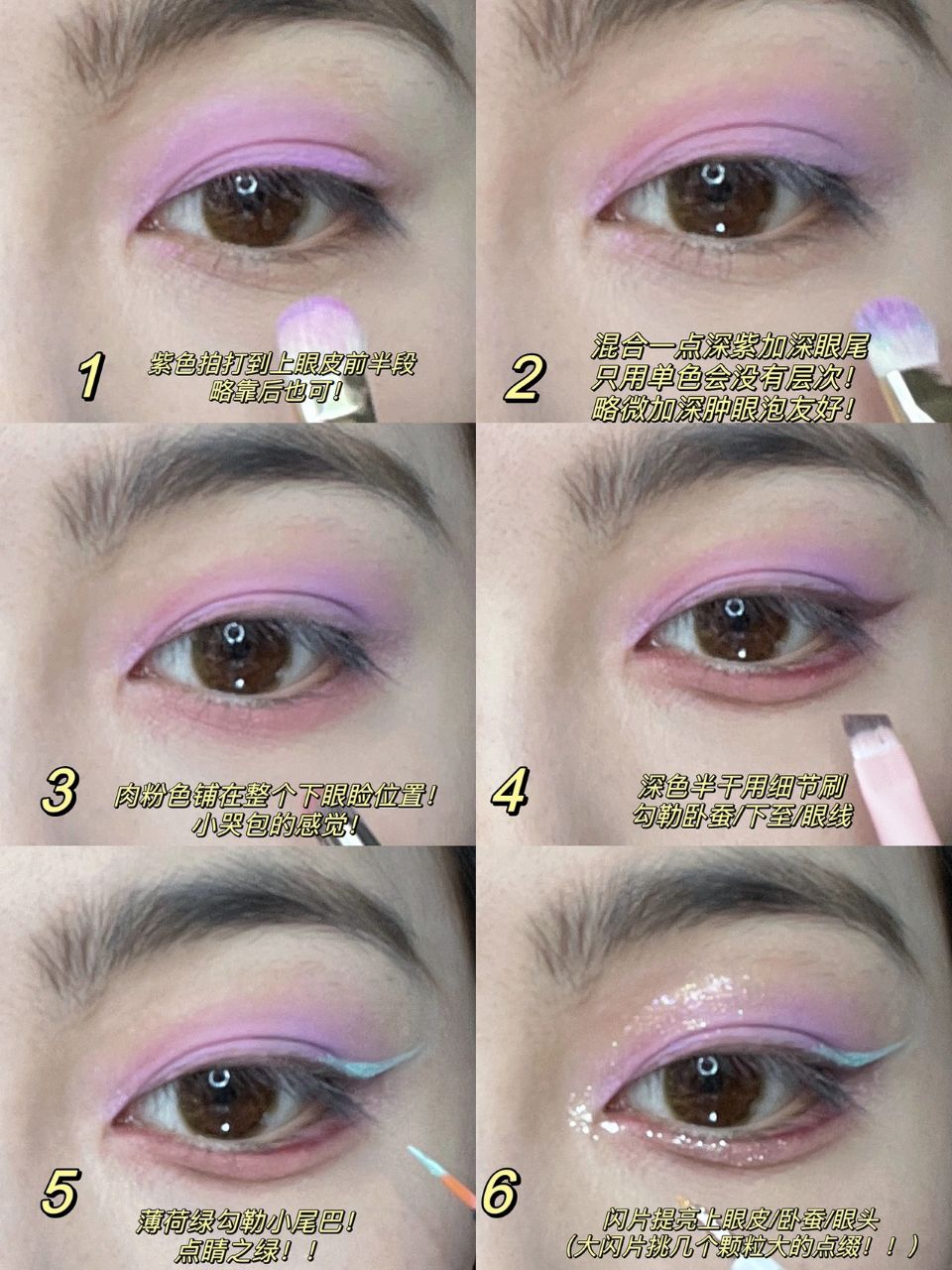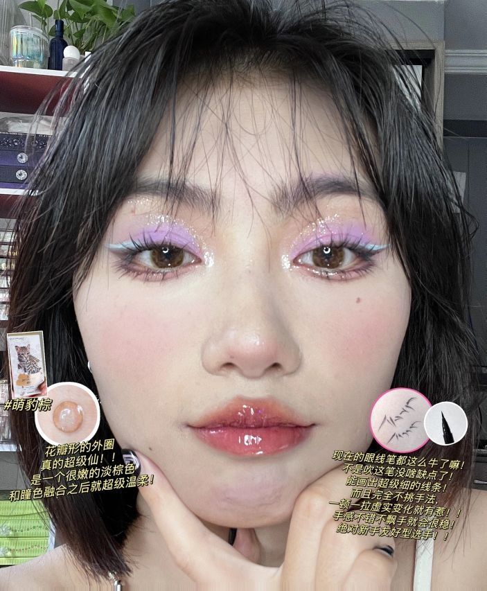 整个妥妥的清冷氛围感!!紫色控学起来!!这种画法不会显眼肿,最近好爱!! 底妆:everbab遮瑕膏 眼线:漫野 眼影:黑兔液体眼影 👀:妆美堂#萌豹棕[话题]#