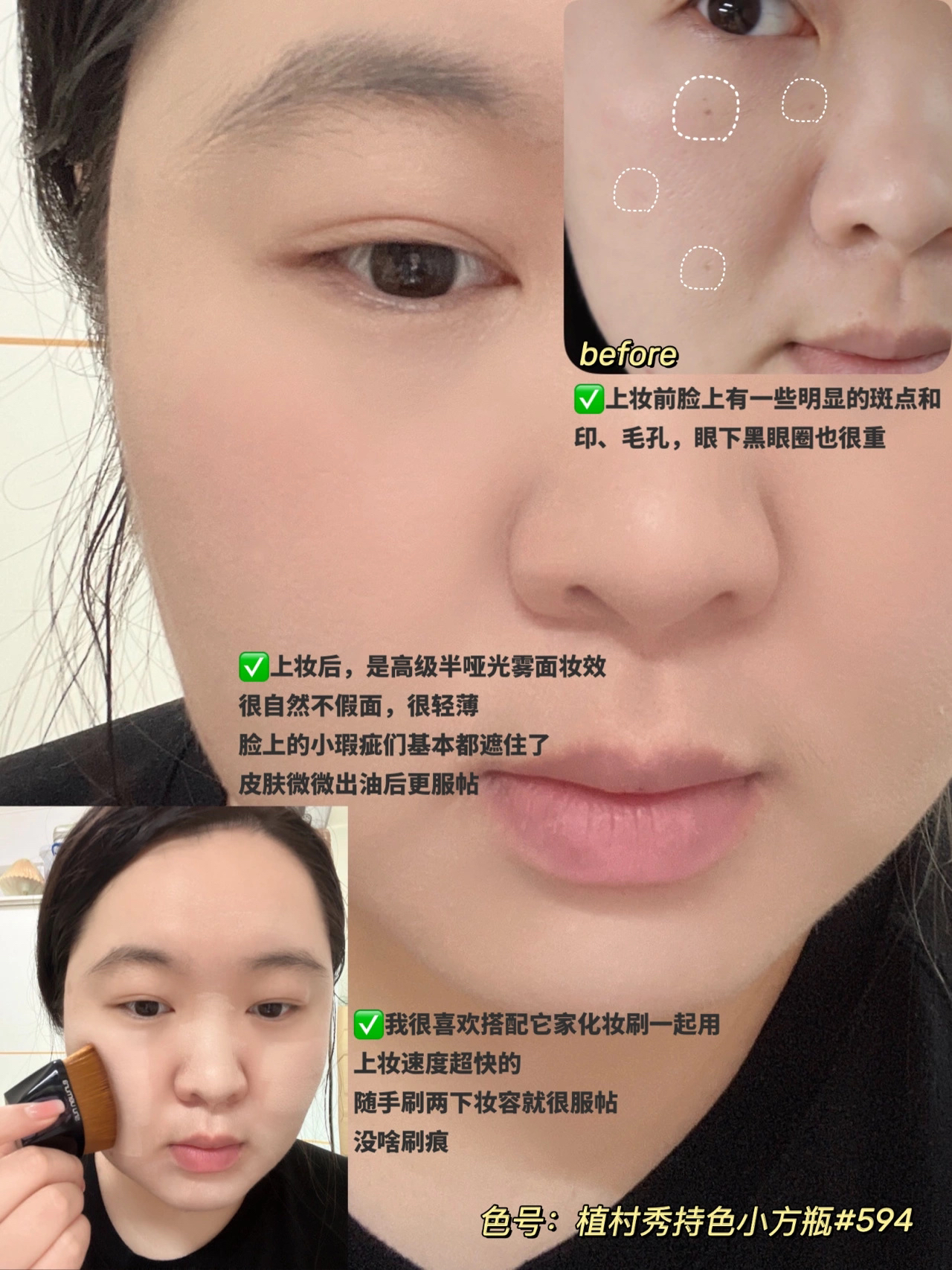 油皮混油皮想要入手粉底液但纠结选啥的!! 又或者是想要入手植村秀持色小方瓶粉底,但不知道自己适合什么色号的集美来👀!!! ✅小方瓶我已经空瓶有五六瓶了,所以分享起来真的特别有底气! 日杂感的高级半哑光雾面妆效!是油皮真爱! 它zui加分的点是很持妆! 加了抗氧化的大米精粹,做好定妆,日常持妆持色一整天没啥问题,皮肤微出油的之后底妆更服贴,扒牢在皮肤上,不易斑驳脱妆。 妆感很轻薄,上脸皮肤完全没有负...