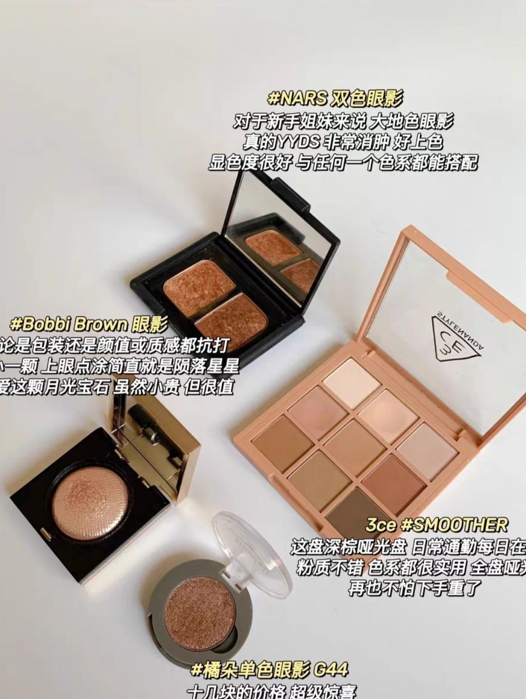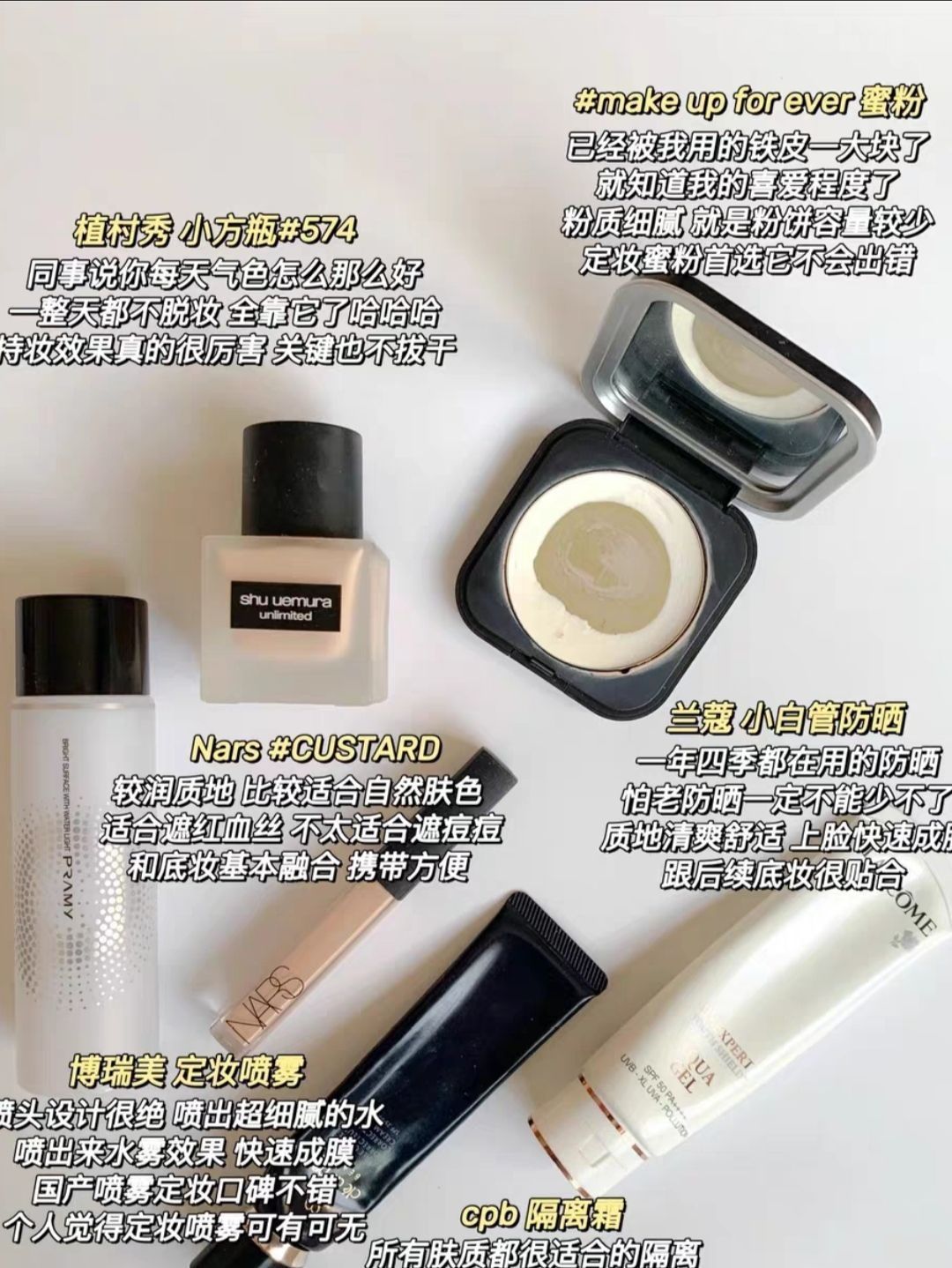 25+在用化妆品这一套经久不衰!全是自用 转眼已入阳春三月 万物复苏 我们的生活也要注入更多新鲜活力 每天给自己画一个精致妆容 保持良好的气色元气满满的状态也会传染给你周围的似伴哦今天分享我经久不衰的好用单品。 妆:Shuemura小方瓶IMuf粉饼ICPB隔离 Lancome防晒INars遮瑕(博瑞美定妆喷雾 眼影:3ce SMOOTHERIBobbibrown 月光宝石! NARS大地色眼影|...
