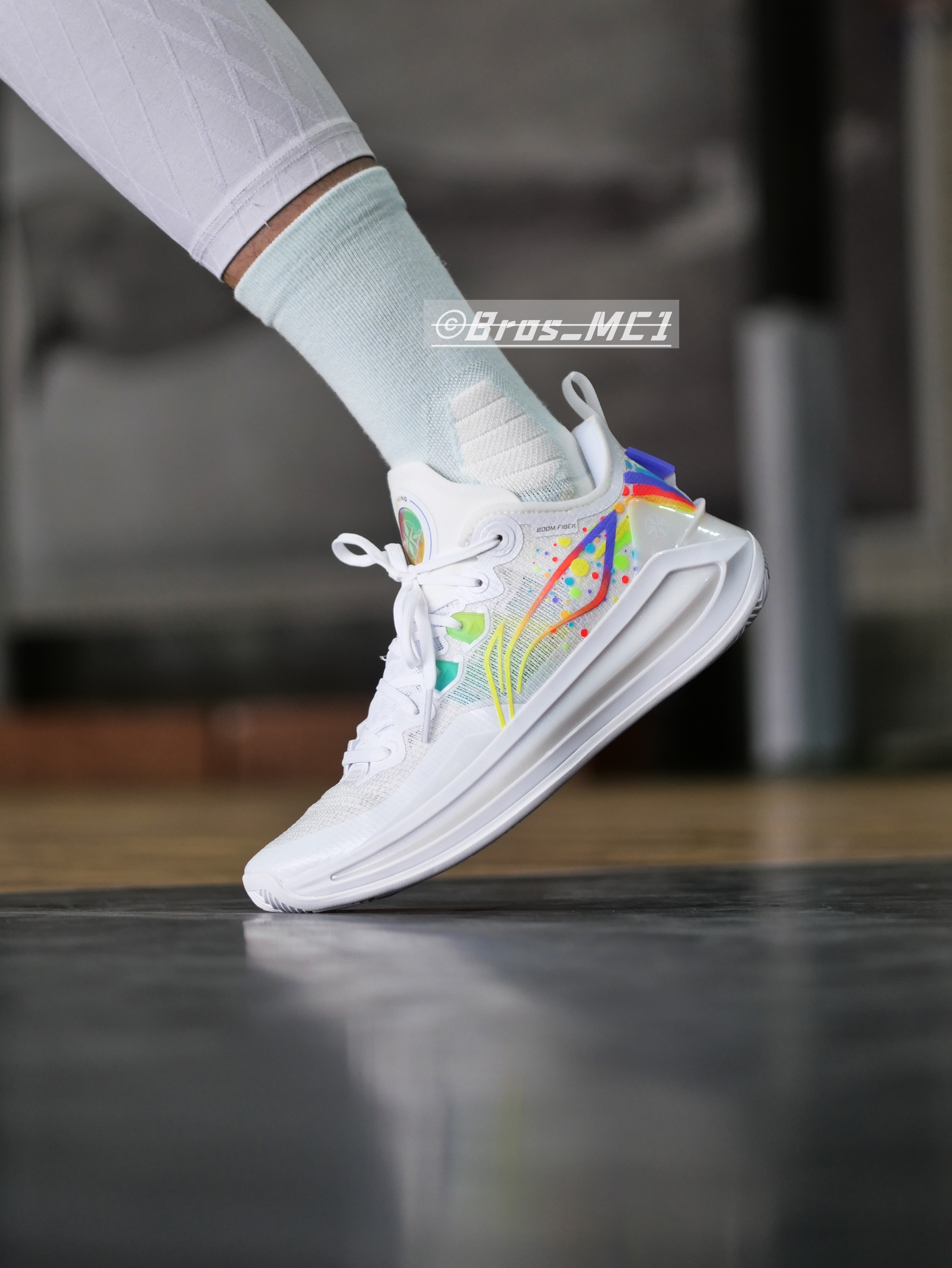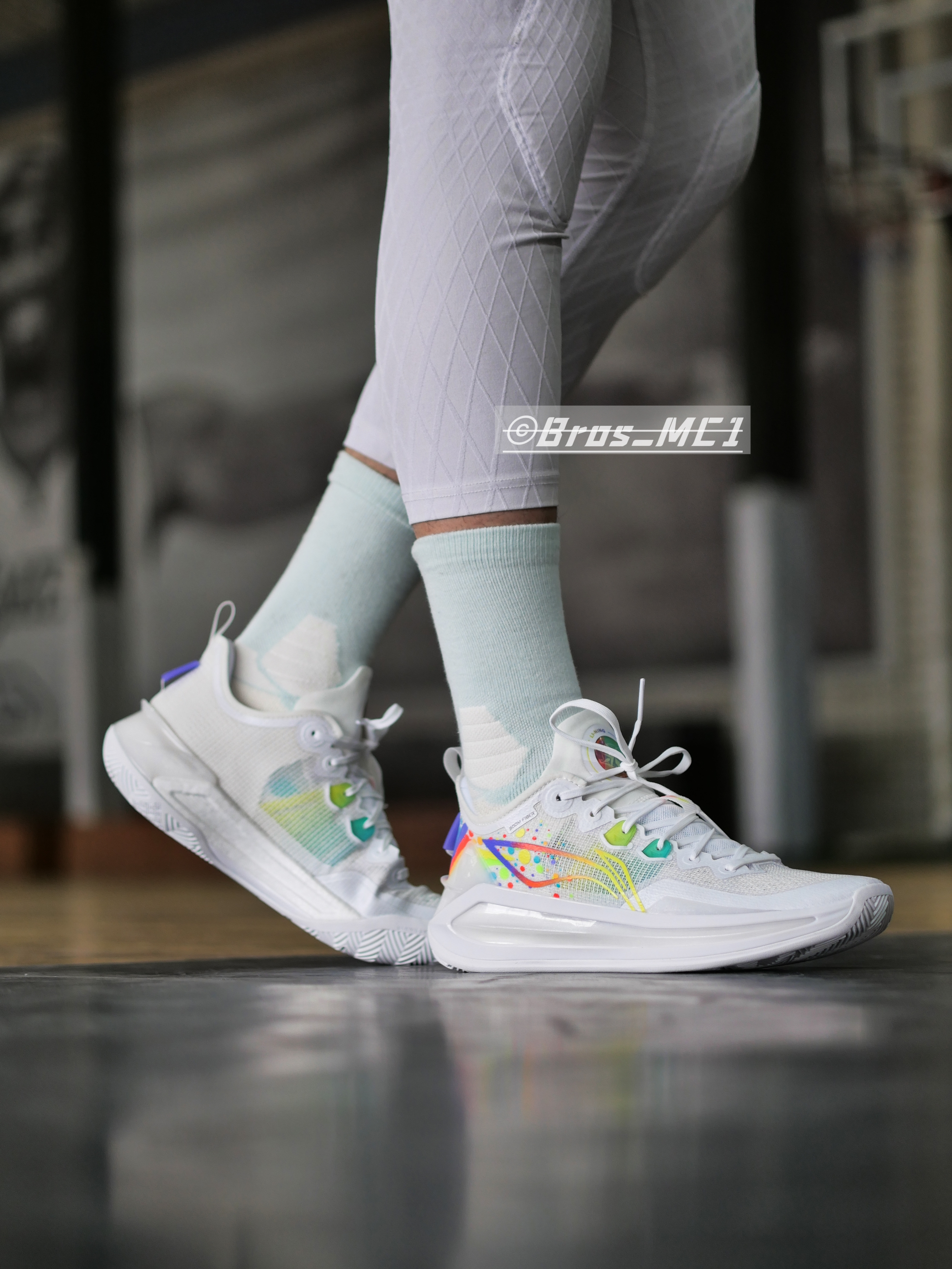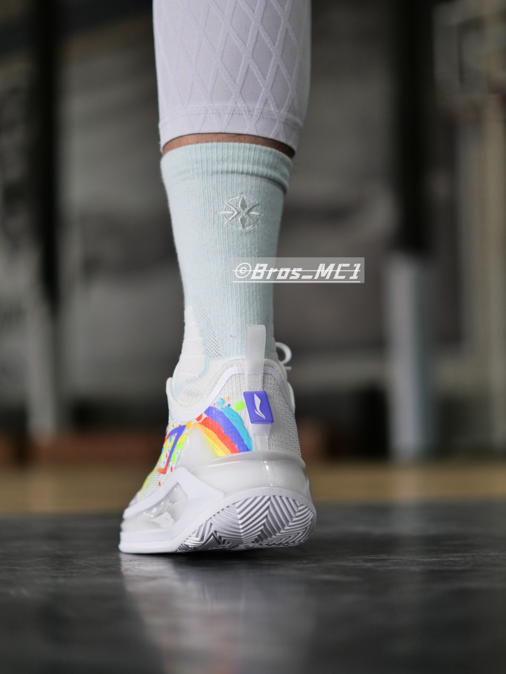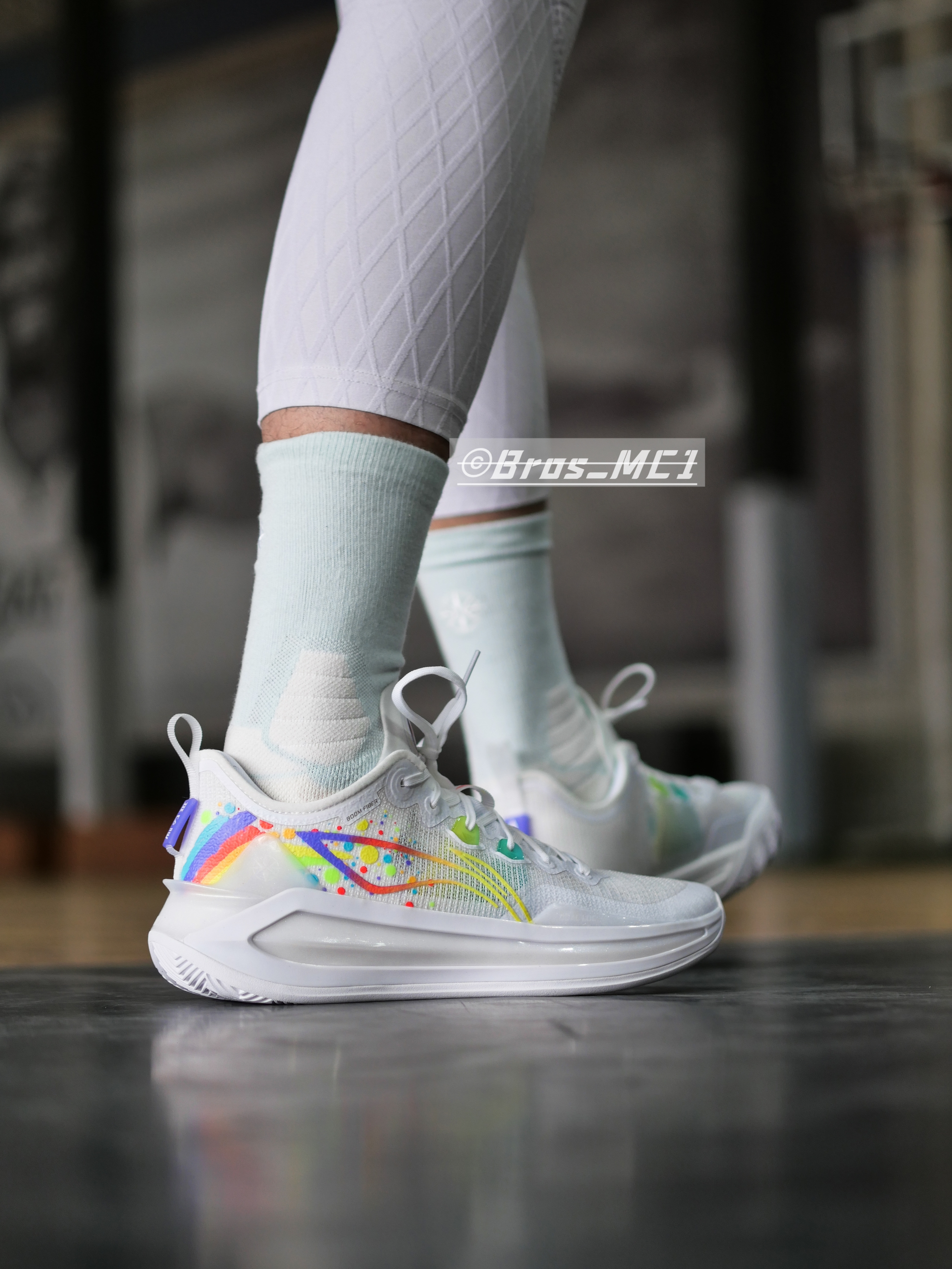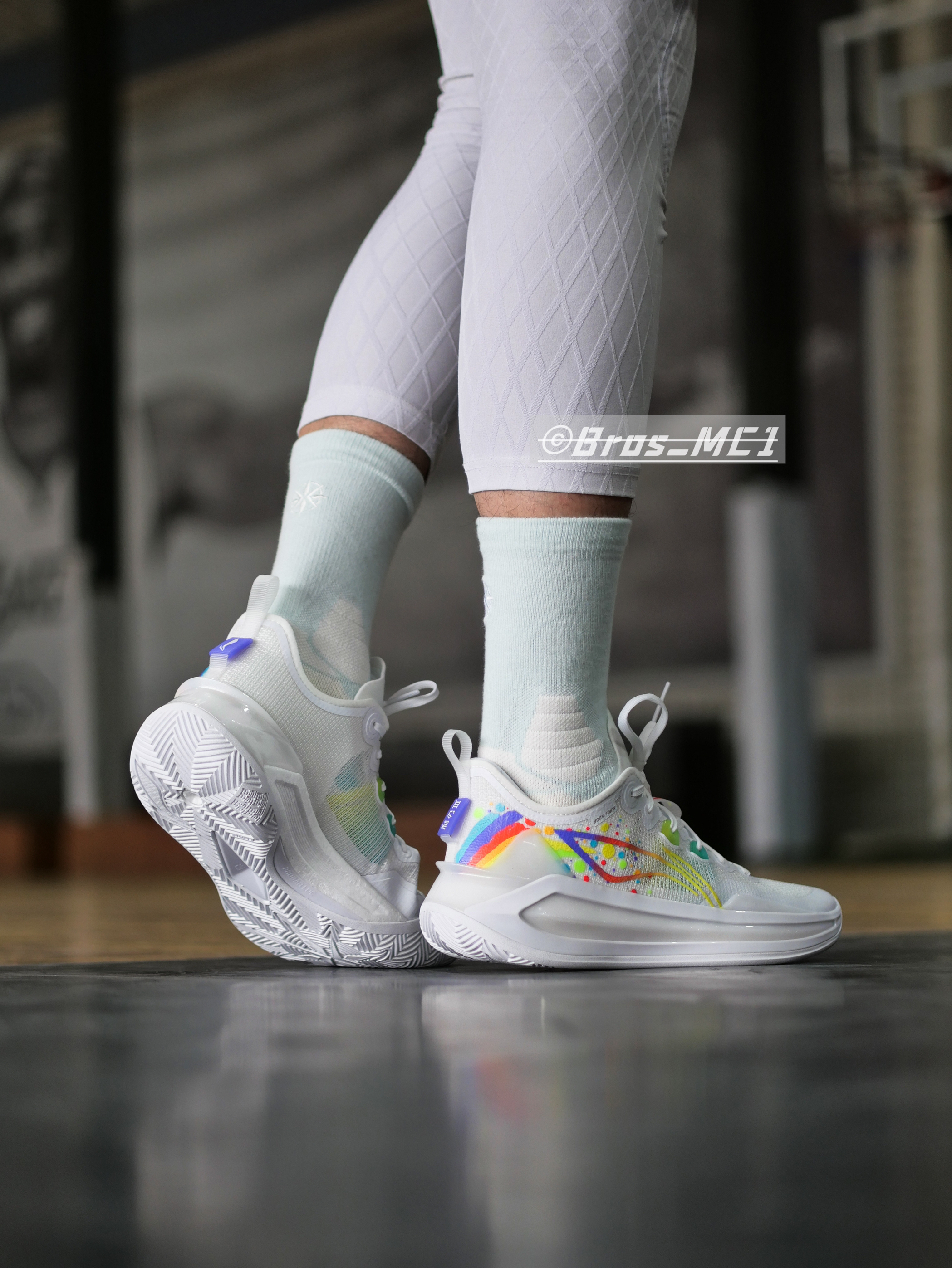 利刃3V2迎来“气象万千”主题色系,今天带来的是全新彩虹配色的上脚展示!注意这个配色附赠了一副彩虹鞋带哦! 🌈配色灵感 整体鞋身以白色为主色,鞋身logo等多处加入了彩虹元素,鞋舌部分添加彩虹闪卡,根据不同光线呈现多种颜色变化,整体的上脚效果非常的干净,同时彩虹的元素让整双鞋子充满活力! 👟配置解析 单只42码重量:389克! 相比中帮版本更灵活轻质! 配置&改变: 1⃣️鞋面升级成䨻丝:更轻、更...