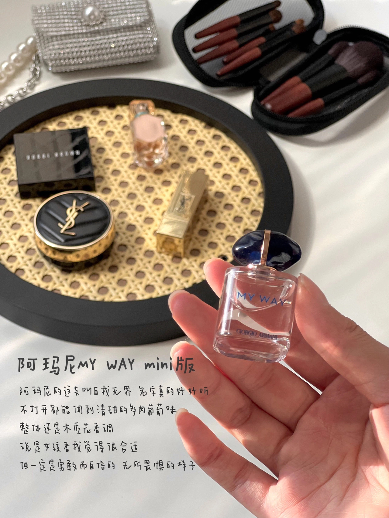 这些大牌的mini款真的太太太太太可爱了吧 快奔三的我感觉心底里还是住着一个没长大的孩子 每天过的没心没肺 还很喜欢一些可爱又mini的东西 如果我以后会拥有一个mini版的我 我一定也会给她准备一套的 女孩子爱美天经地义的啦 这些去专柜薅羊毛薅来的小样 也很建议集美们理智消费 可以尝试后合适再买正装 - YSL皮气垫小样 YSL方管#01正宫红中样[话题]# 1.3g 阿玛尼my way自我...