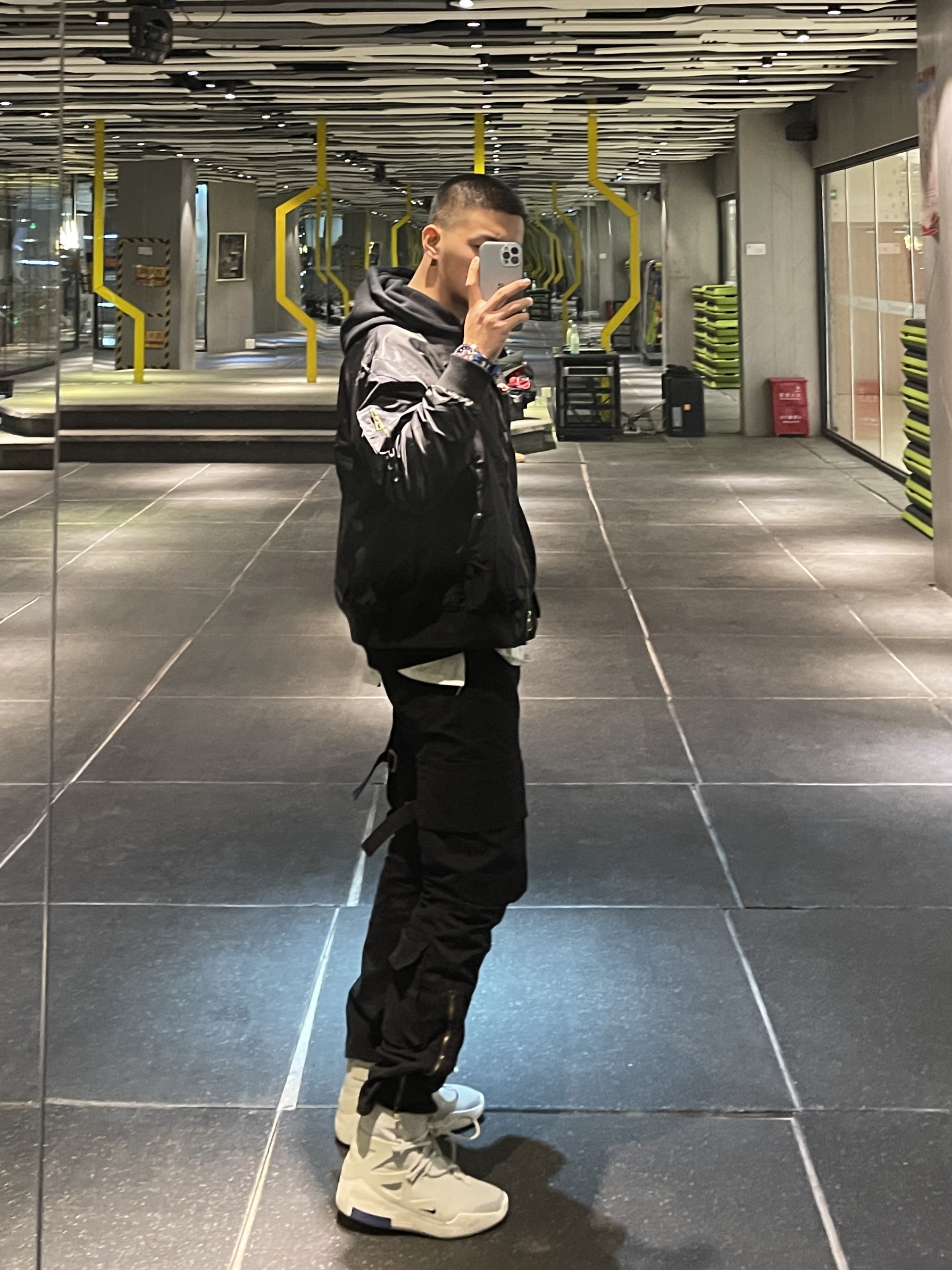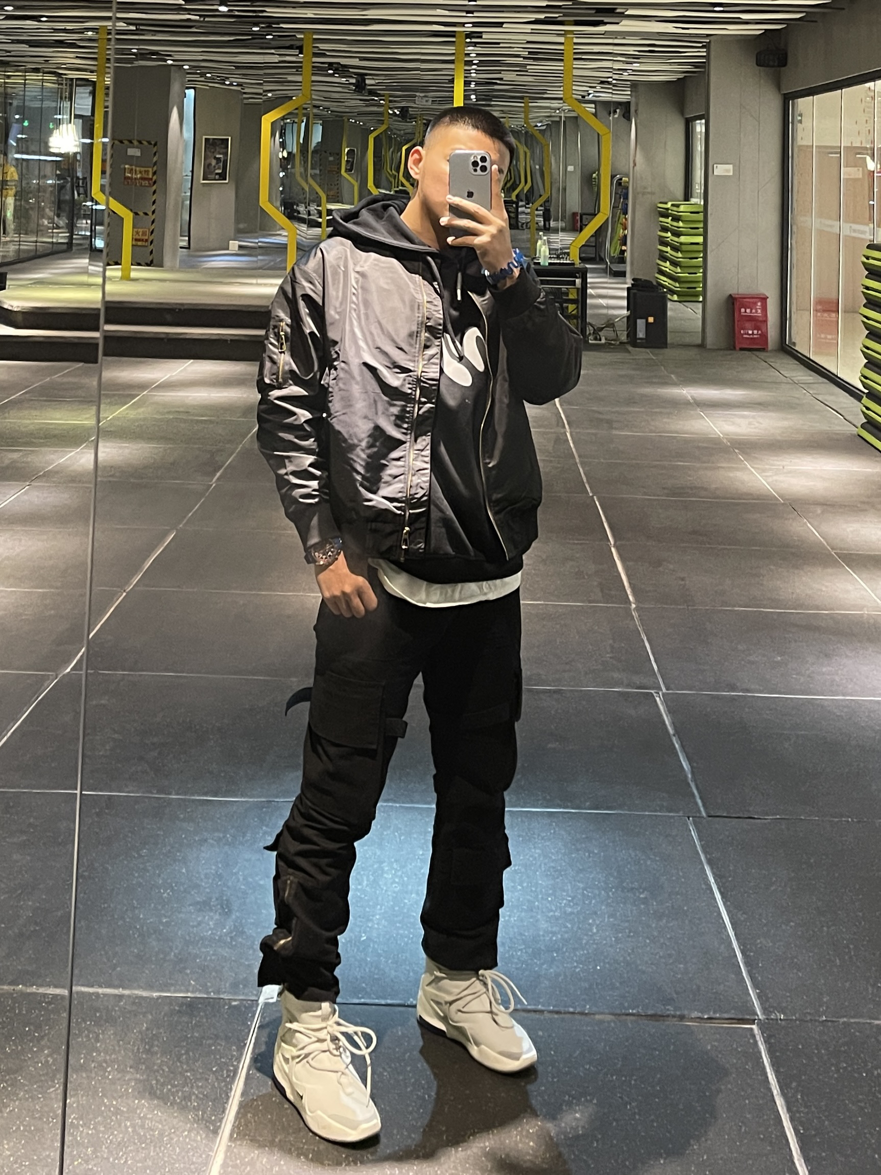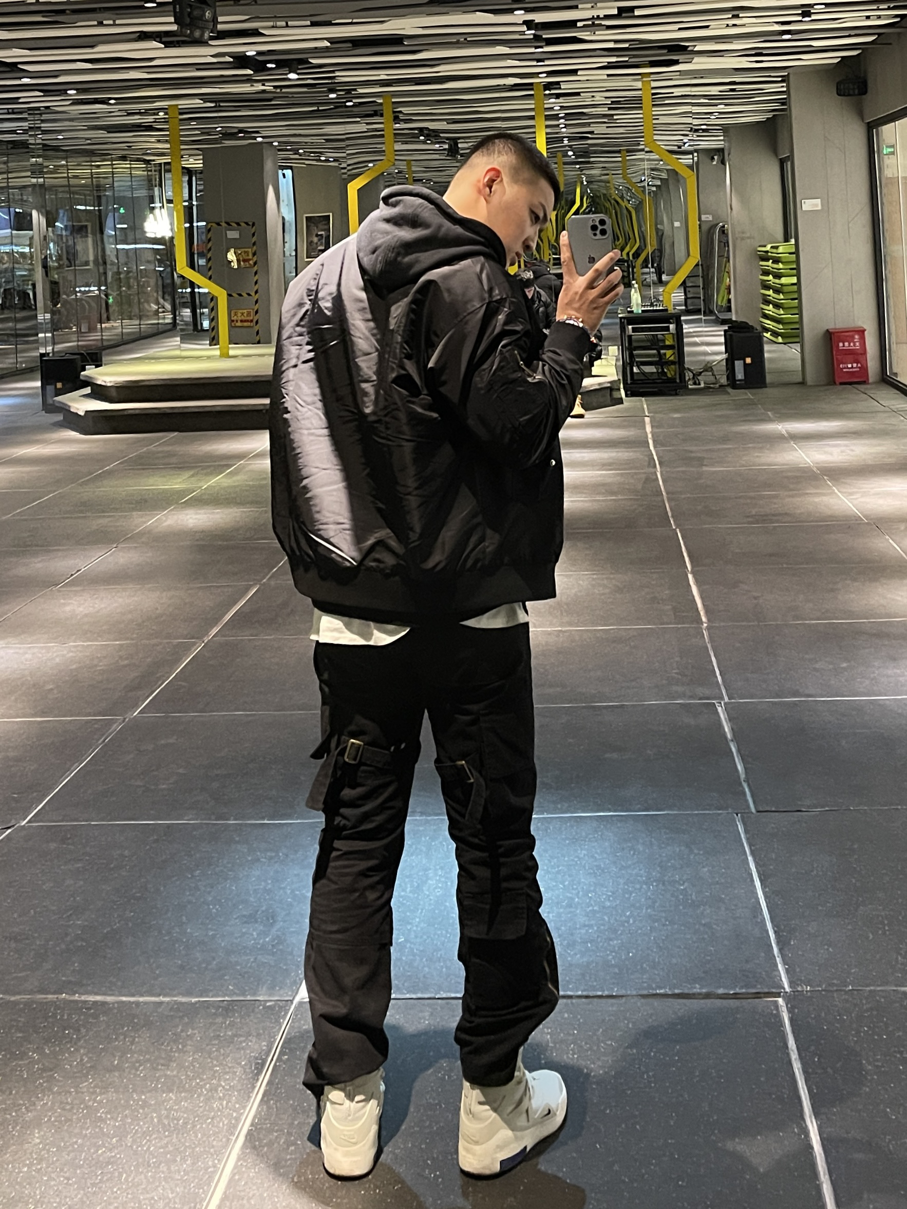 一身同色系的穿搭真的很帅 同色不同材质层次感拉满 白色打底和鞋 颜色相互呼应 飞行夹克套卫衣显得肩宽 气质直接就拿捏了 一身都是:GTRG