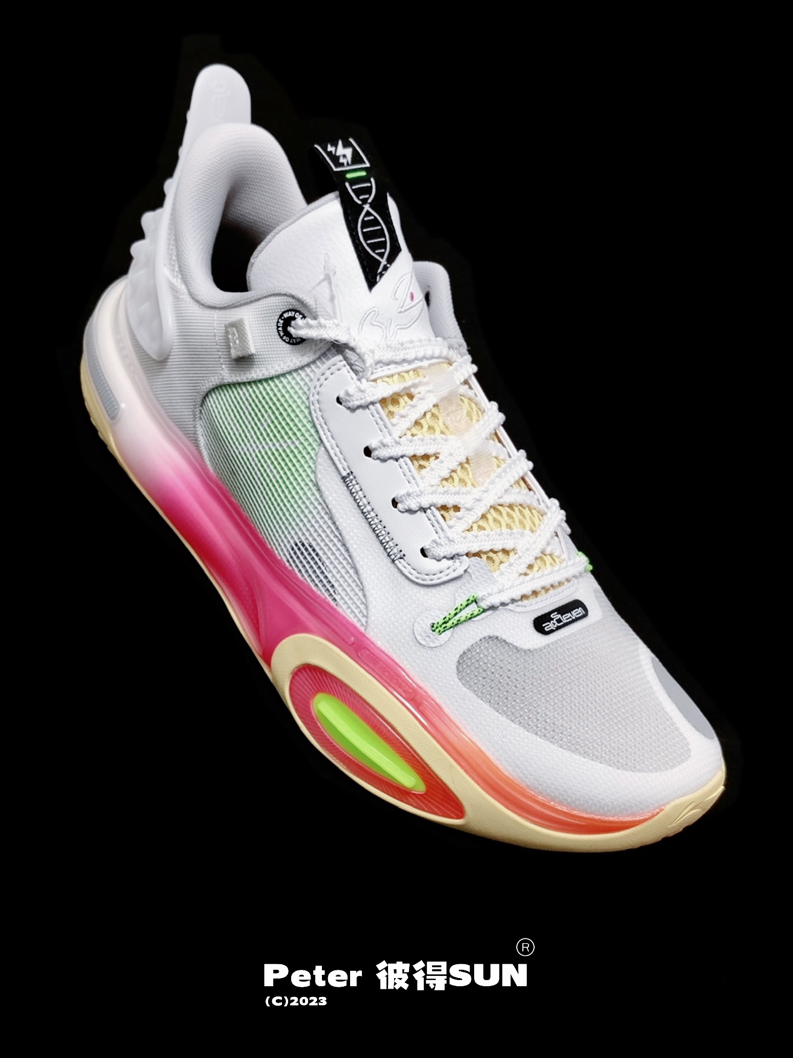 全城11也出绽放配色 虽然没有韦德之道10来的有质感 但是这个配色也是深得我心 这款似乎也是兔年特别版 因为鞋舌上隐约有小兔子的造型 在外观上我觉得是将9和10的优点融合了 搭载的是全掌䨻科技 鞋楦也适用宽脚 尺码按正常码来就可以了