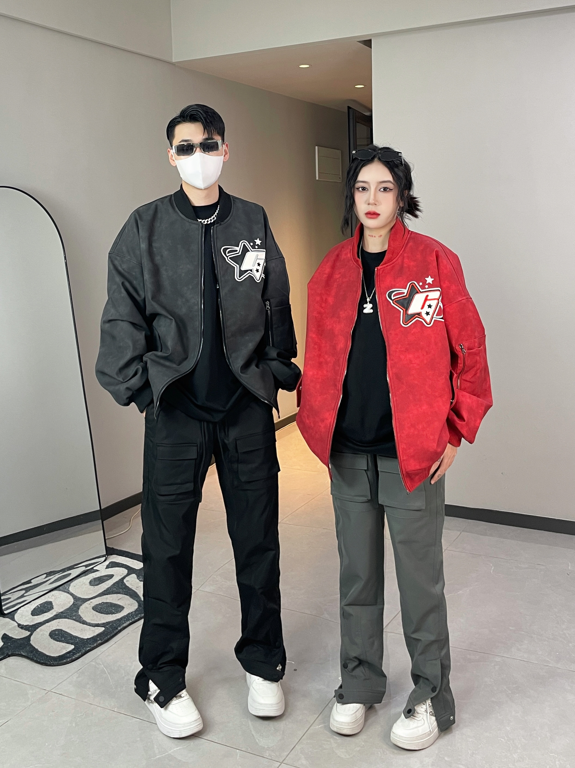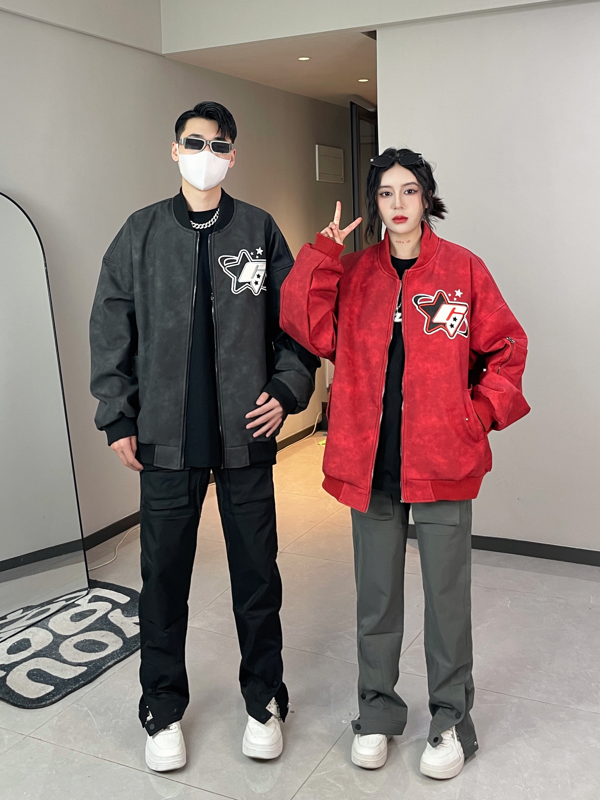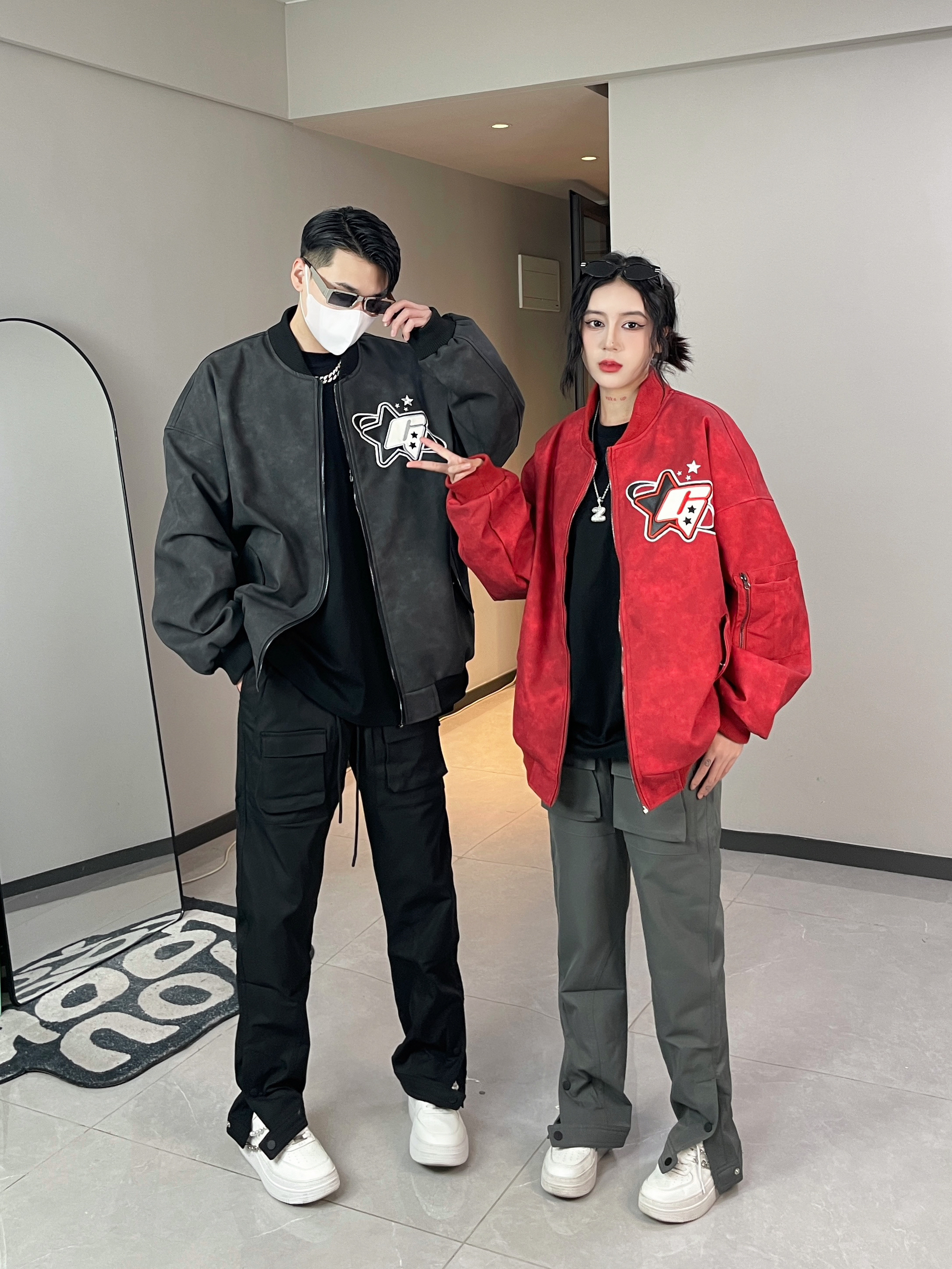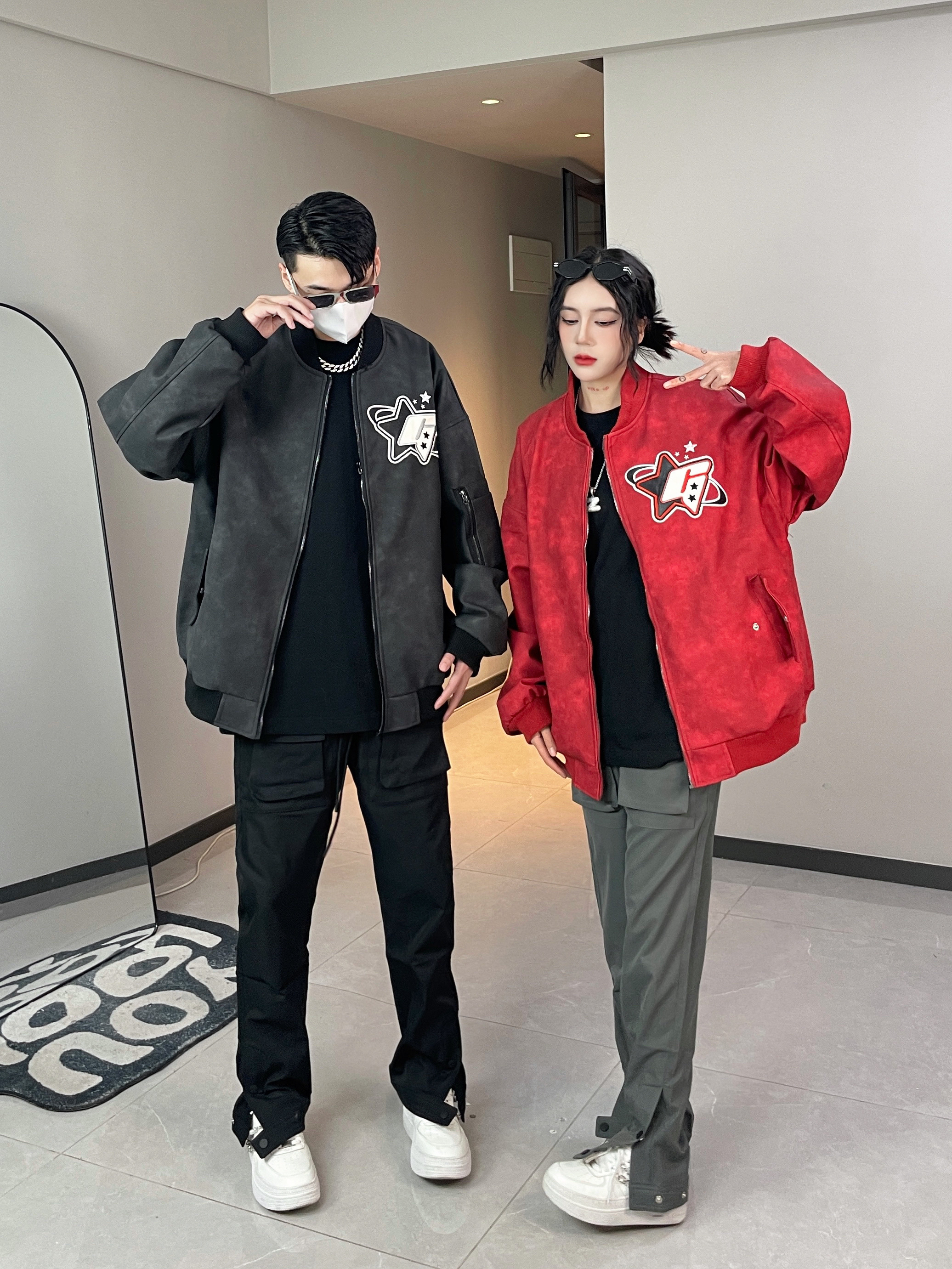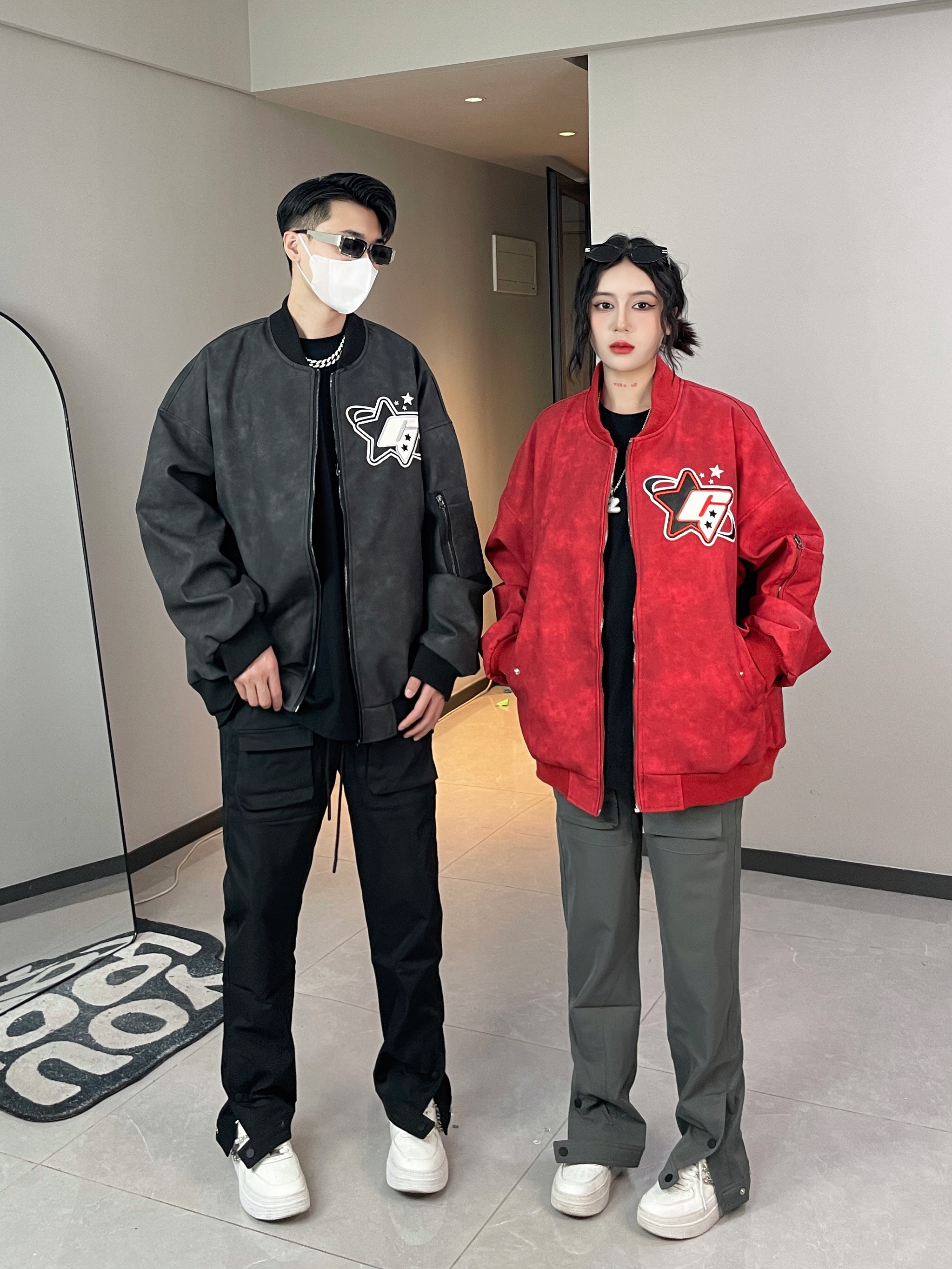 麂皮绒面料超舒服 上身很好看 重工贴布刺绣设计 精致又好看 搭配机能感的休闲裤 帅气又百搭~ 👔👖:XXXANBUUZU ————