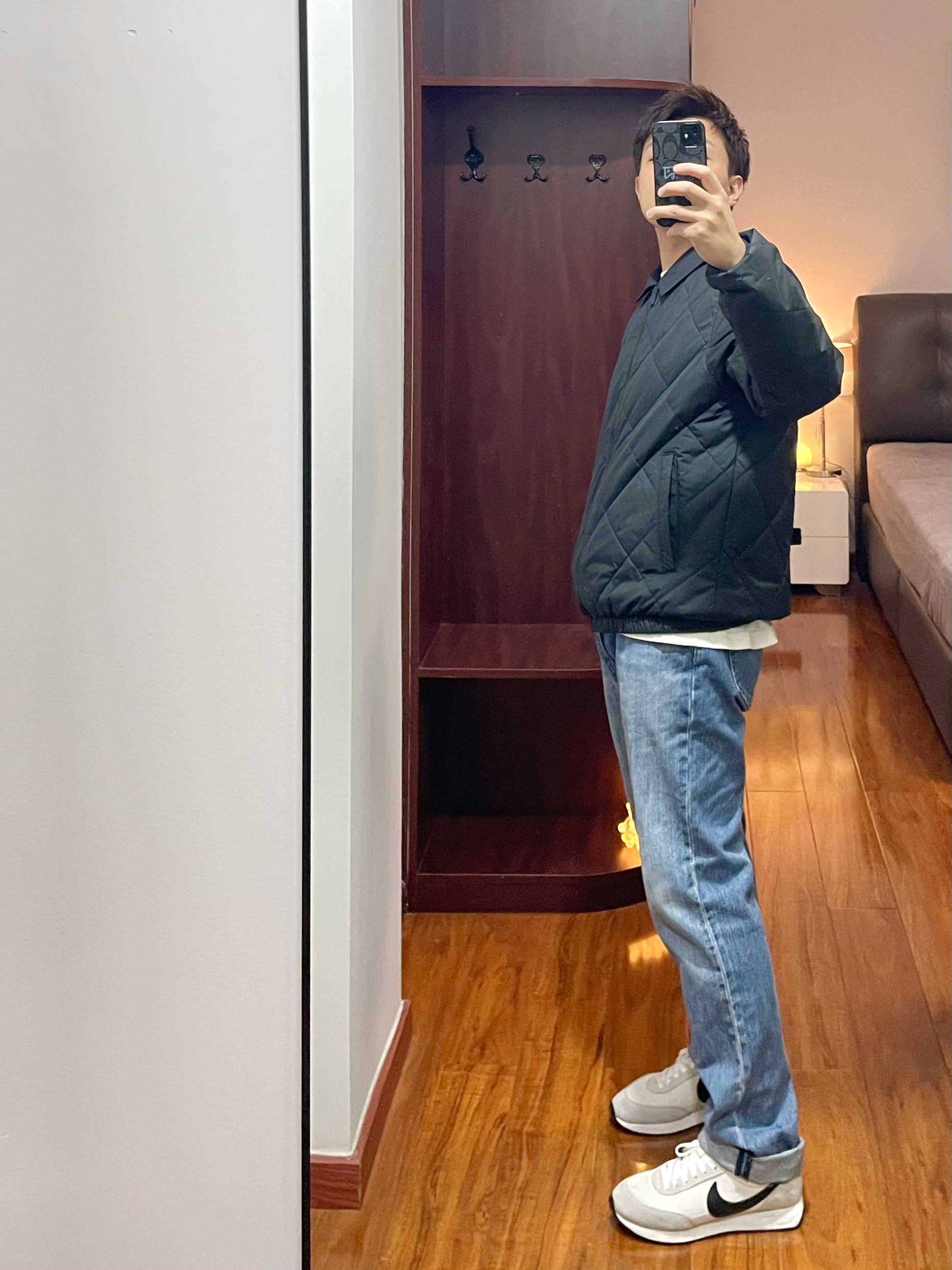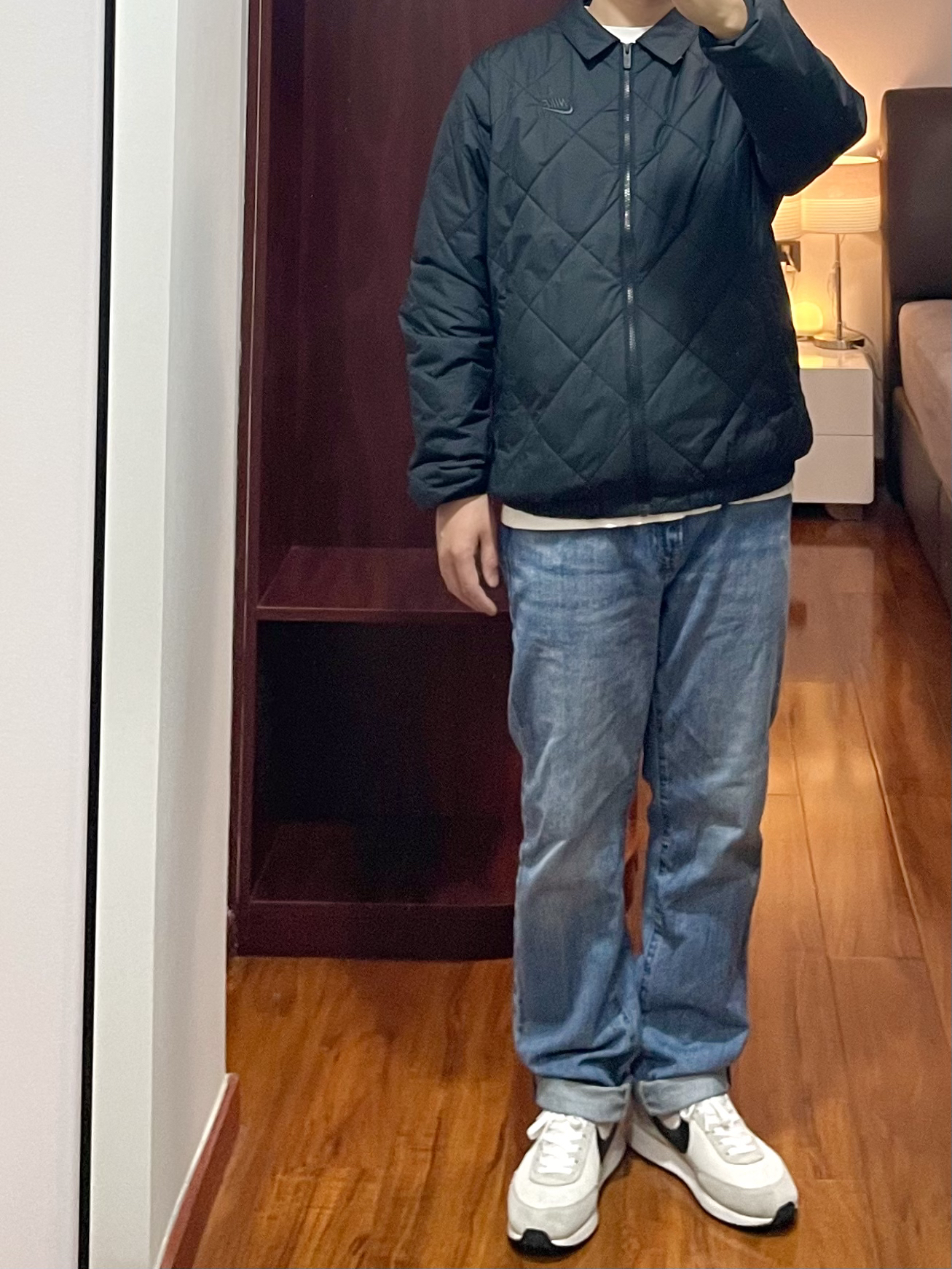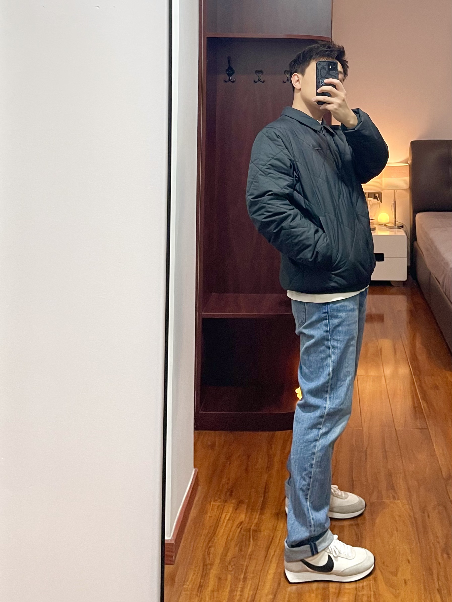 170/135斤 一个普通人的穿搭分享 👔:Nike 黑色夹克 轻盈保暖的运动夹克,定位是Nike滑板系列,远看这衣服有点老气,但是上身效果还是挺精神的。 👖:优衣库 牛仔裤 牛仔裤掉色是必然的,经过长时间的穿着大部分的牛都会掉成浅蓝色,这个颜色上身自然,版型直筒适合多种穿搭。 👟:Nike Tailwind 79 白色鞋身配黑钩子是Nike常规的调色板,白色鞋百搭加黑钩不会太单调,鞋型修长鞋...