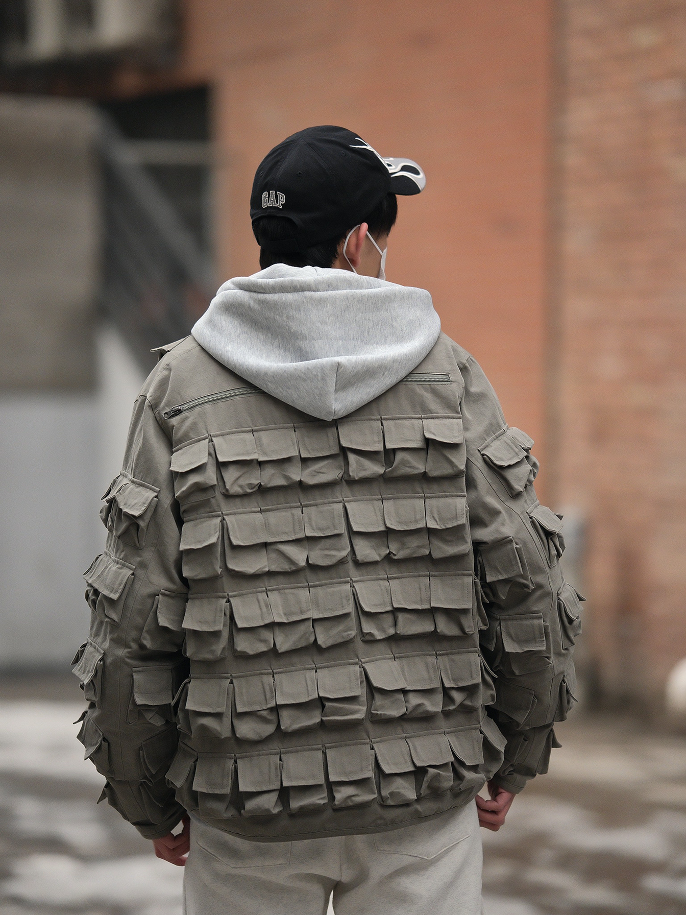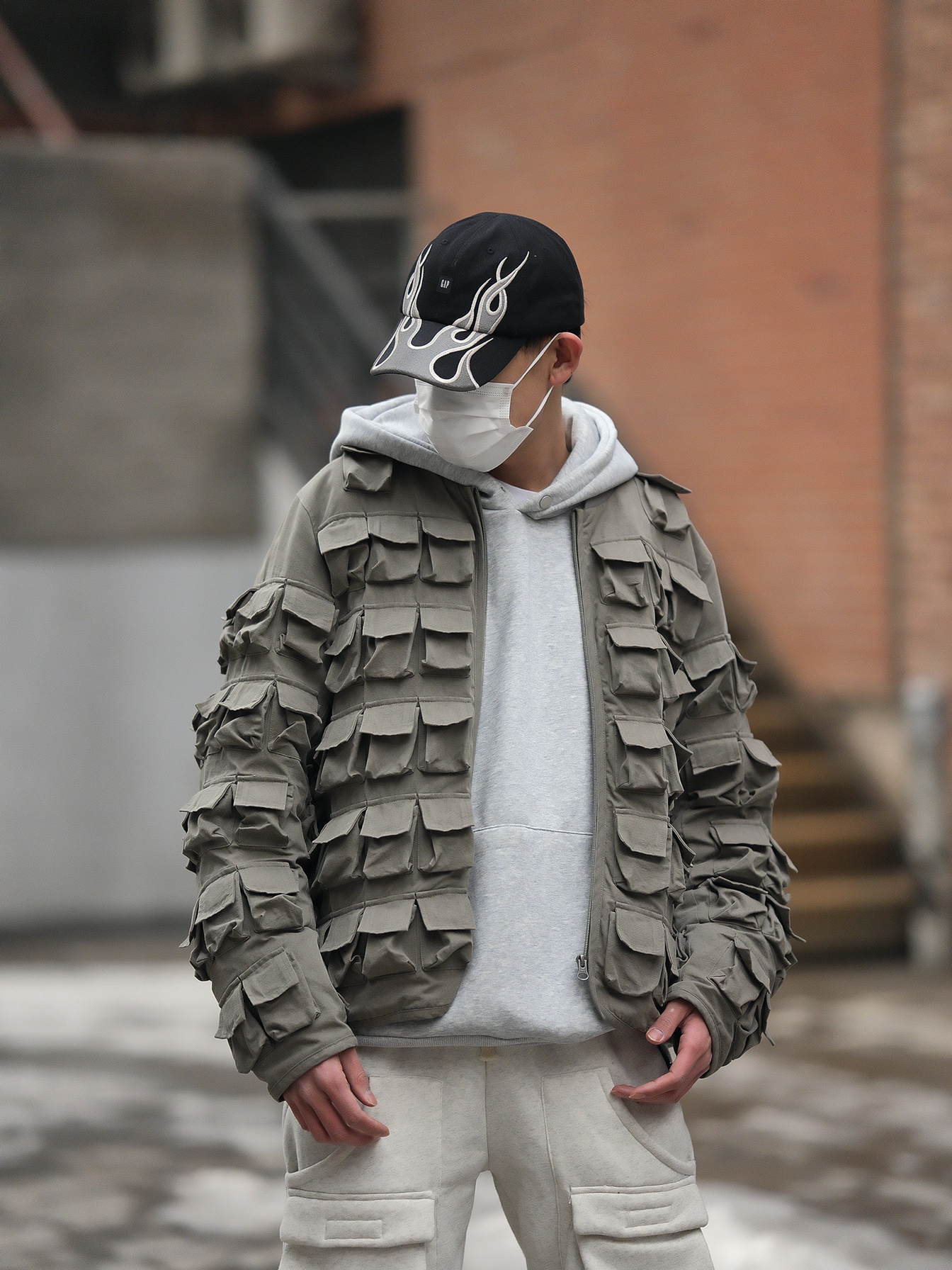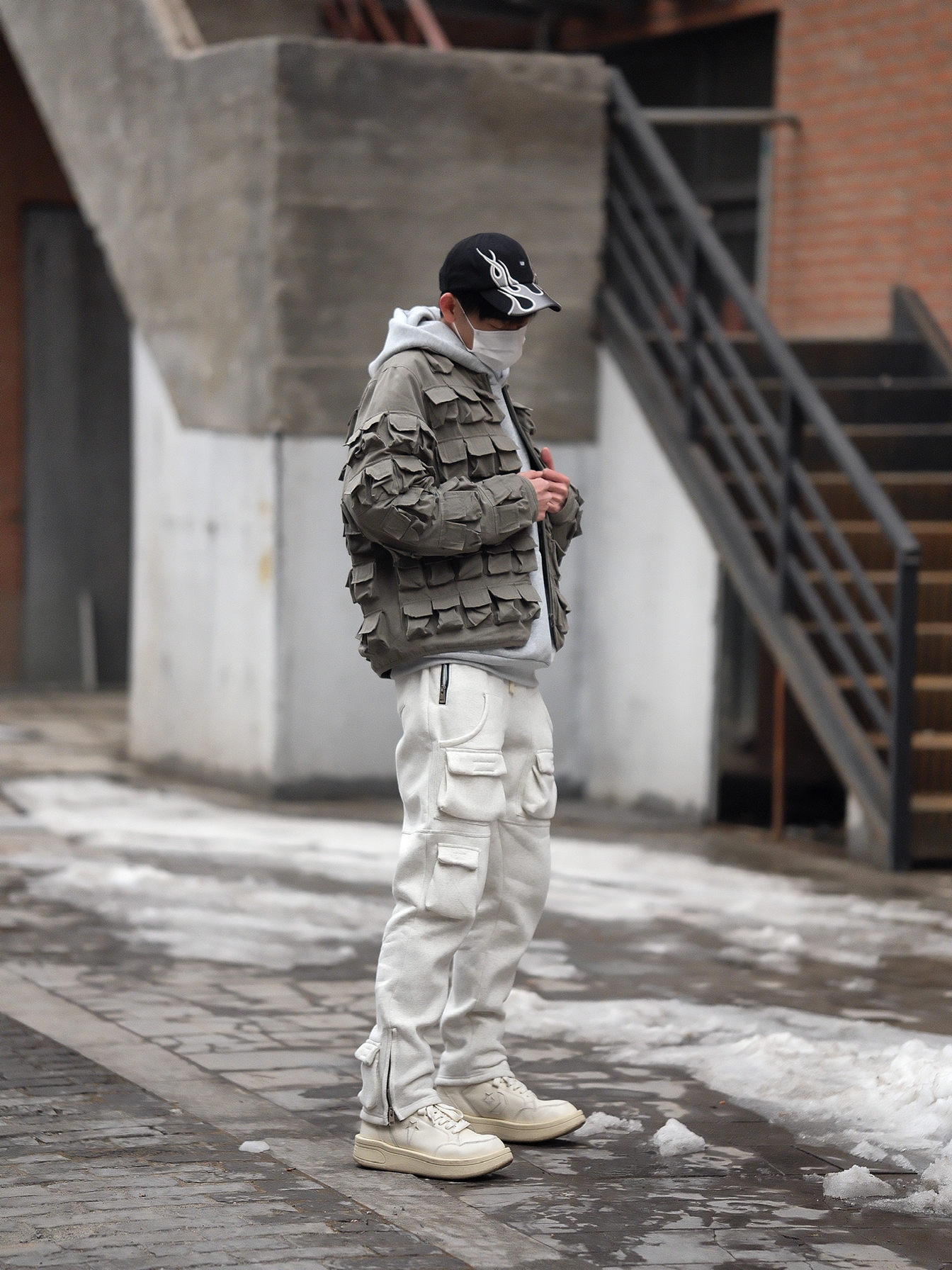 哟!wassup!大家好! 今天分享一套“口袋妖怪”穿搭。 上半身内搭灰色卫衣 外套选择军绿色的 Grailz 139 iacket 一百多个口袋真的完美点题了 下半身选择一条多口袋战术机能裤 重磅面料上身真的很有型 而且同样也是多口袋细节与上半身呼应 搭配同色系球鞋真的超显腿长! 外套嘛:Grailz 裤子们:ALLINCLUB 鞋子食:CONVERSE