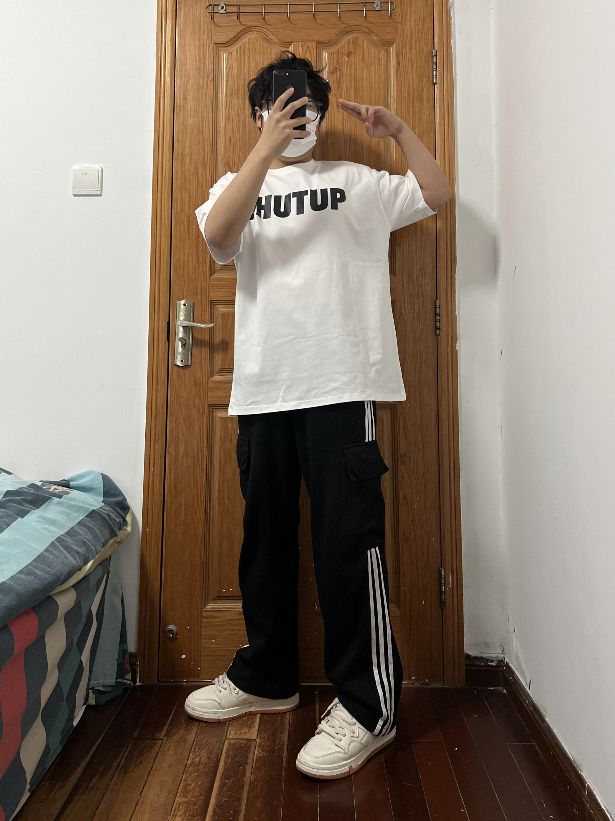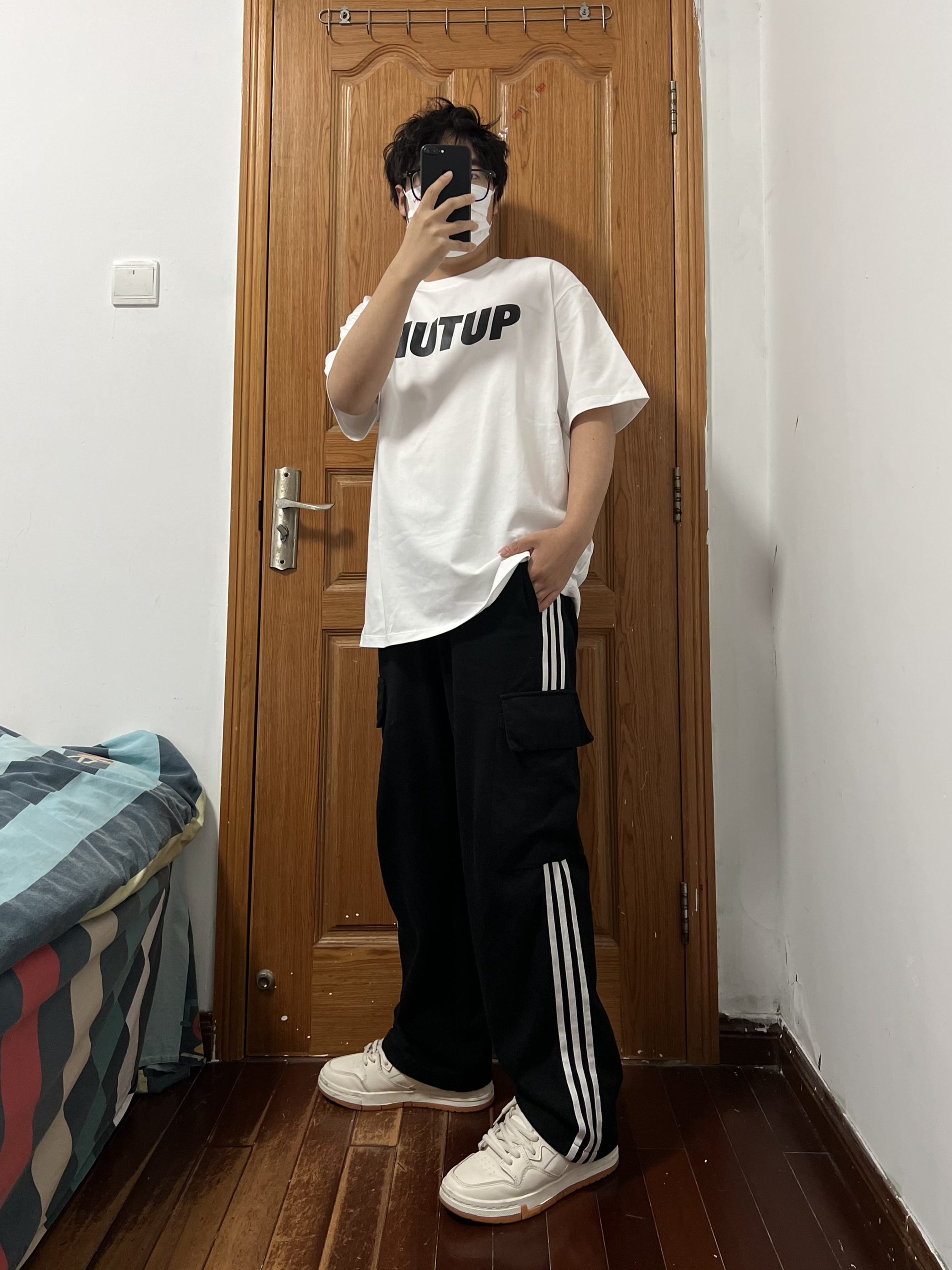 今日份穿搭分享🎉 404MOB GANG 白色T恤 作为夏天必入一件的白色短袖选它准没错啦🉑️ 这宽松版型这简单干净的设计很难不爱哦关键平价 纯棉面料舒服有厚度,不易变形哦夏天必入宝藏单品 前后面的设计颜值超高,白色百搭而且显瘦超帅 其他颜色也都很好看不得不爱哦🤩 搭配一条黑色条纹工装裤,一下子夏天的氛围感来了 再来一双小白鞋,咱只要简单帅气男孩设定就是最帅 整体穿搭作为大学生里也是最炸裂的帅🤯...