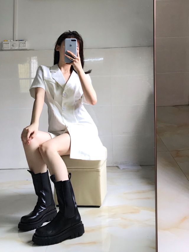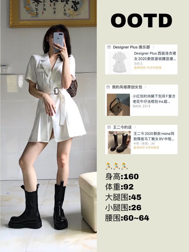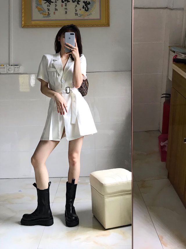 Look1️⃣ 👔白色裙子:Designer Plus 这条裙子敲个性有设计感(经典黑白两个色 白色不会透 是西装连衣裙搭半裙设计 西装领腰部百褶显腰身 🈶弹力 🉑调节束腰 显瘦显气质✔️ 👢马丁靴:王二今的店 小个子一定要入手这款✋ 增高又不会笨重! 整个鞋身非常秀气 上脚不会笨重 秒变大长腿 Look2️⃣ 👔黑格裙子:Designer Plus 这条呢是泡泡袖和包臀裙的设计 🉑遮...